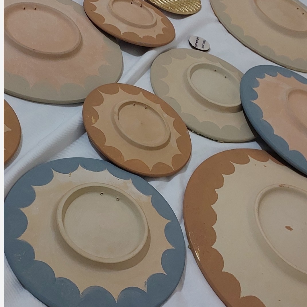 ست دیوارکوب سفالی 5 عددی سایز بزرگ در سایز های 35،30،25،20،15 کاملا براق و ضدآب قابل سفارش رنگ و طرح دلخواه کاملا کار دست امکان تفاوت جزئی به علت دست سازه بودن پشت کار همنقدر تمیز زیبا دارای قلاب آویز