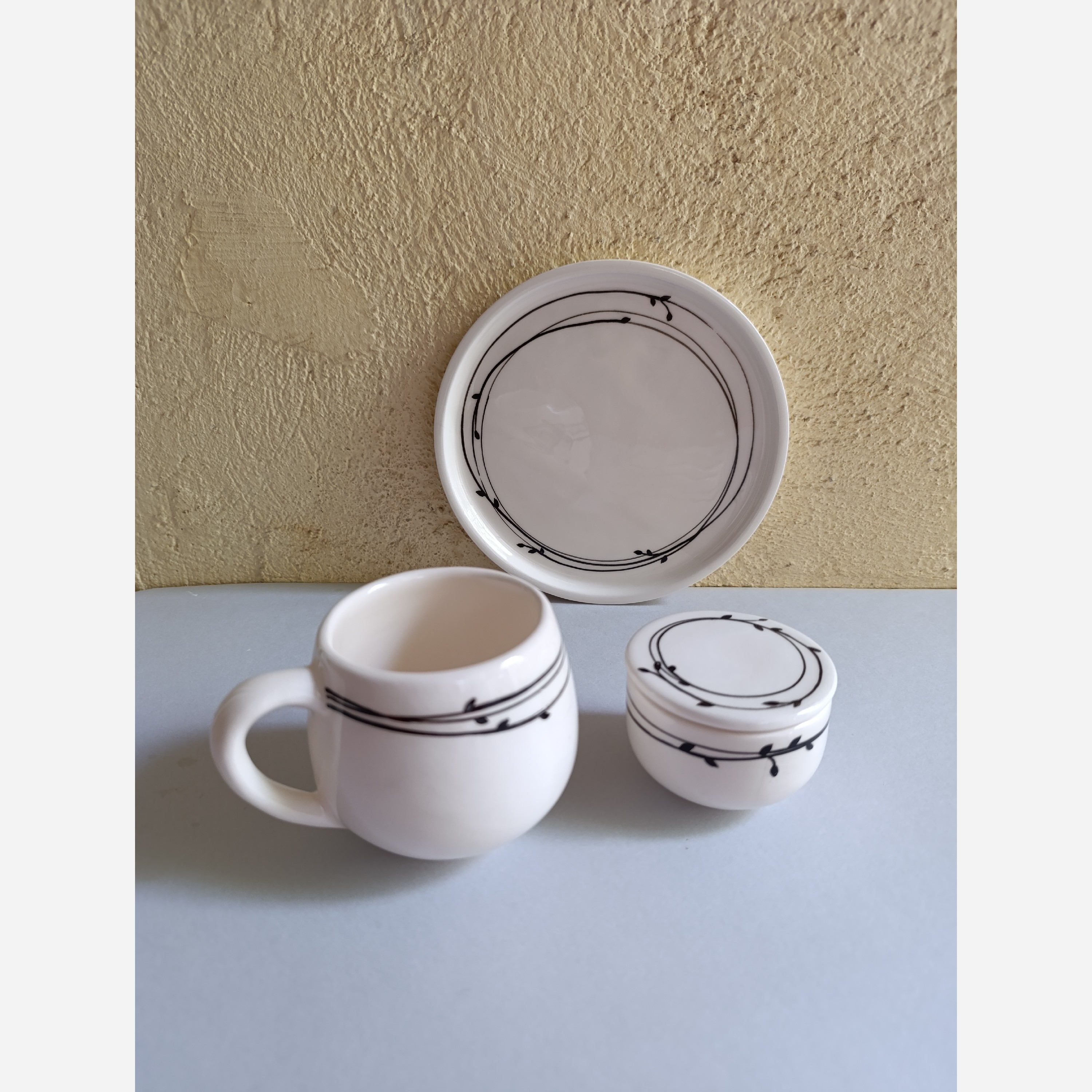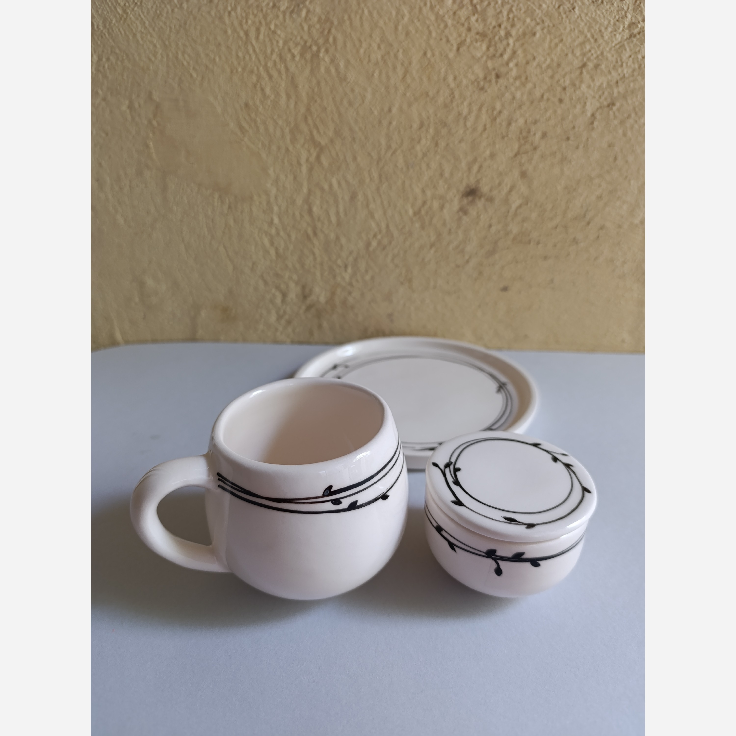 ست یکنفره چایخوری سرامیکی طرح پیچک سیاه مبلمونسرا مدل 276114