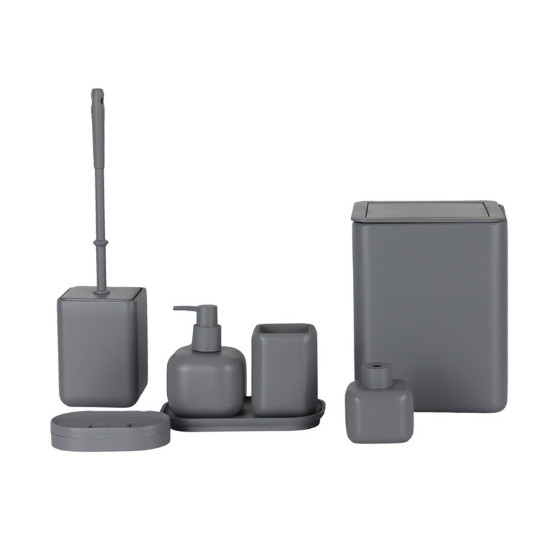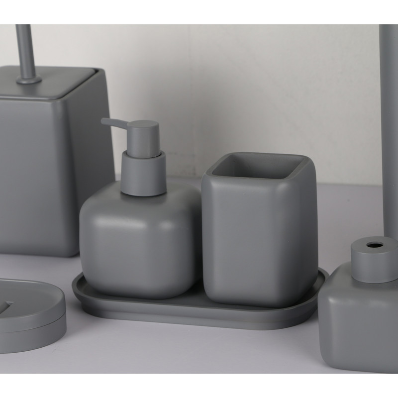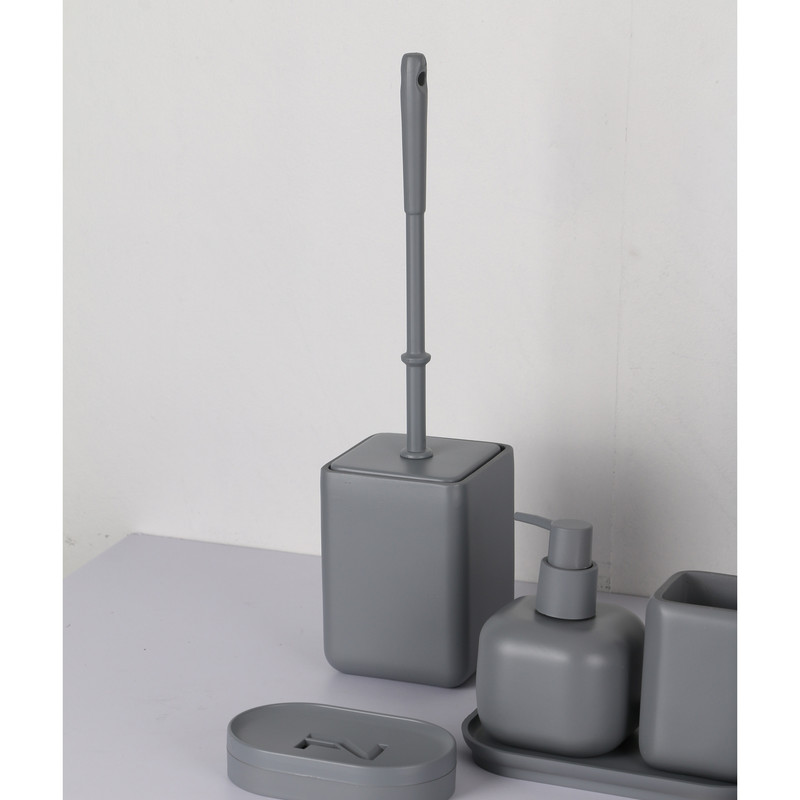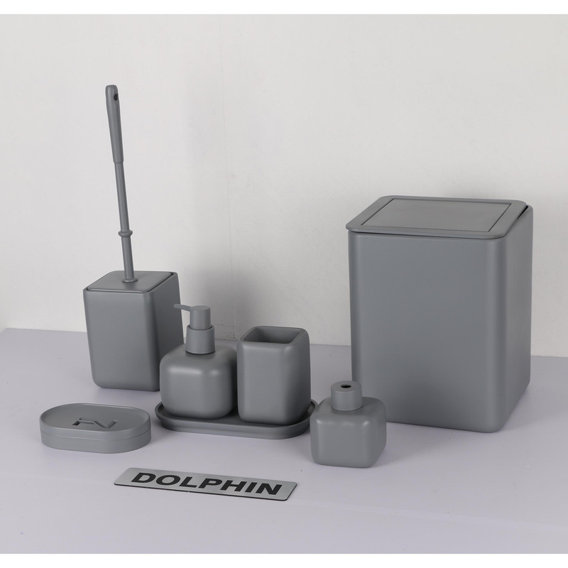 ست سرویس بهداشتی دکوراتیو از پلی رزین درجه یک ساخته شده است. ست تشکیل شده از، جای صابون، جای مسواک، سطل، توالتشور، جای مایع، و ظرف خشبوکننده به همراه سینی میباشد. ست رومیزی ضد زنگ و ضد باکتری است که مزیت بزرگی در سرویس بهداشتی است. طراحی مینیمال این محصول مناسب برای هر دکوری در سرویس بهداشتی میباشد. این محصول مناسب برای هدیه، جهیزیه و ایجاد یک دکور زیبا وایدهآل میباشد.
