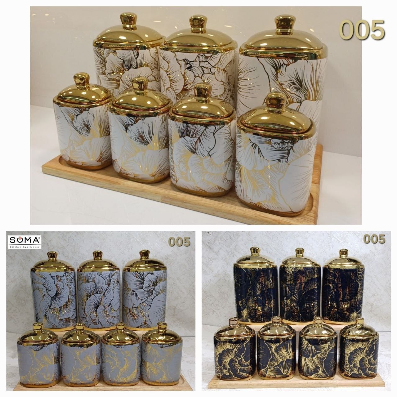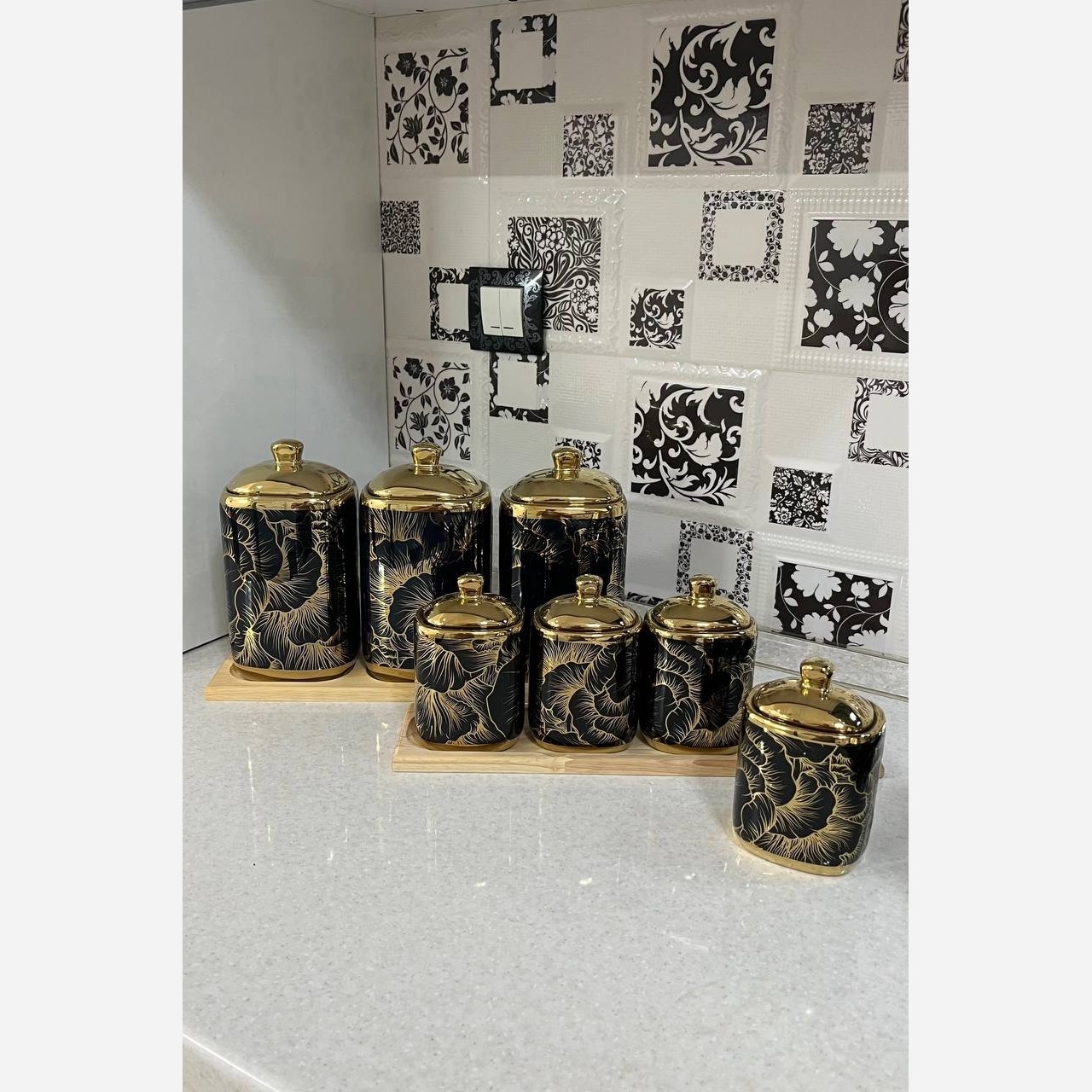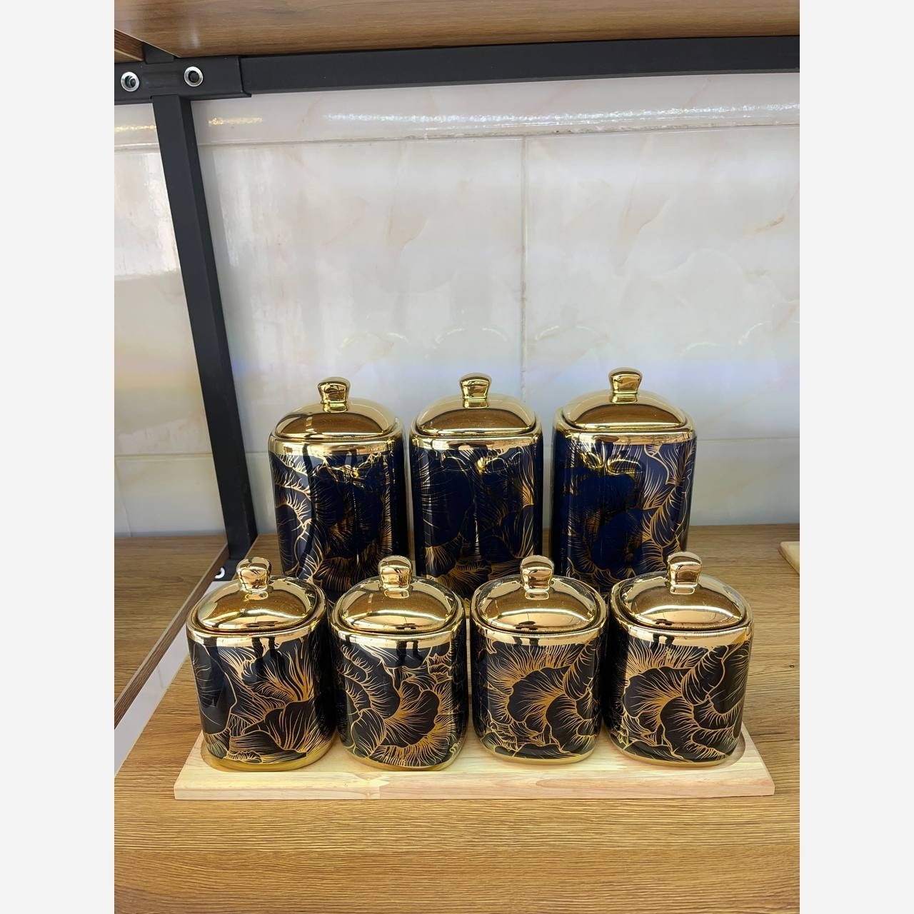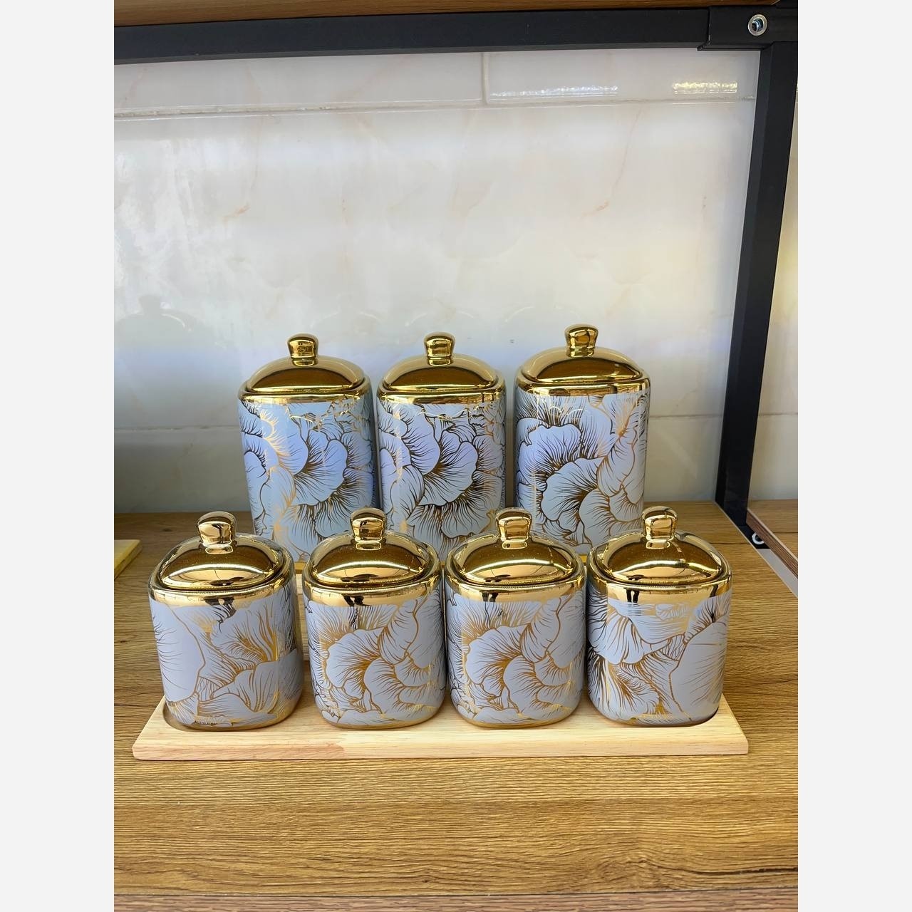 این سرویس هفت پارچه شامل 3 عدد بانکه و چهار عدد جا ادویه به همراه استند چوبی میباشد