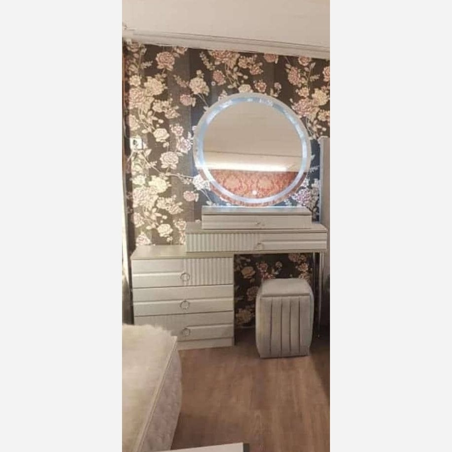زیر قیمت همه جا سرویس کامل شامل تاج و تخت کفی تخت دو عدد پاتختی میز آرایش و آینه و صندلی