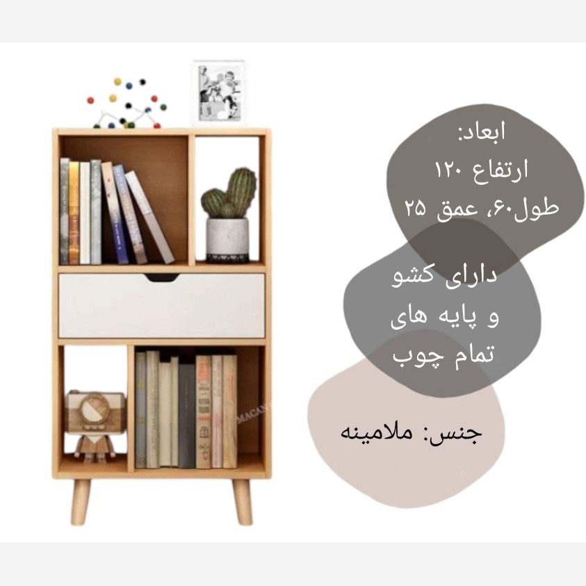 کتابخانه مدل گندم🌾 ابعاد: ارتفاع 120، طول 60، عمق 25📐📏 دارای کشو و پایه های تمام چوب✨️ جنس: ملامینه🪵 بسته بندی مناسب و ایمن🎁🎀 هزینه ارسال به صورت میباشد🚚🛵