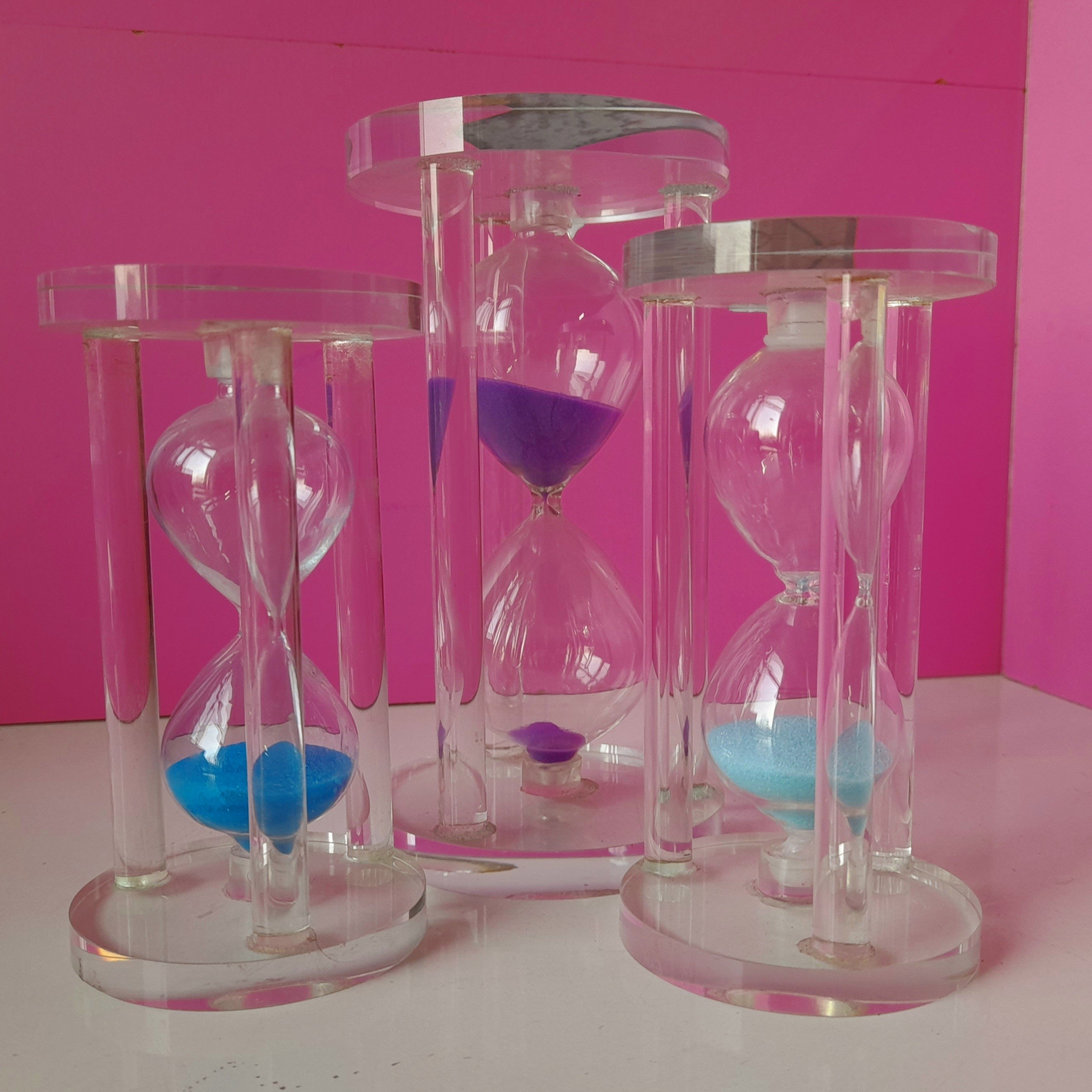 ساعت شنی شیشه ای تمام شیشه با اندازه و زمان متفاوت 10 دقیقه و 1 دقیقه و 30 ثانیه در 3 رنگ ماسه