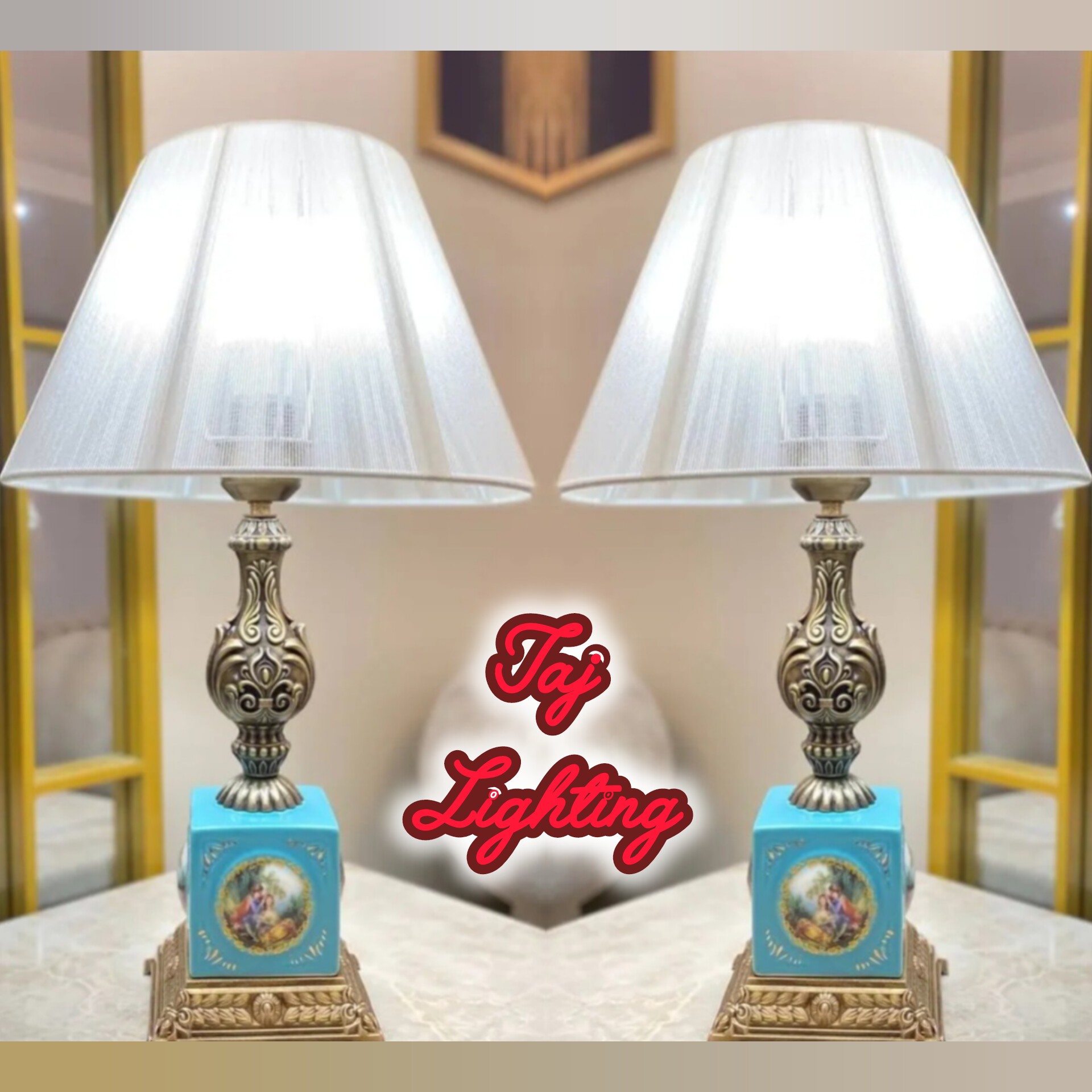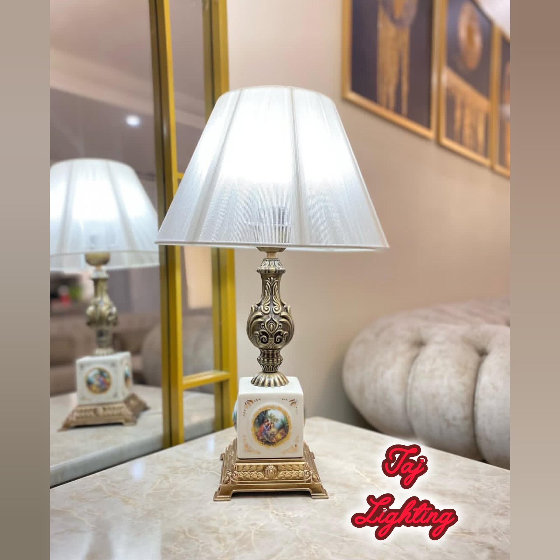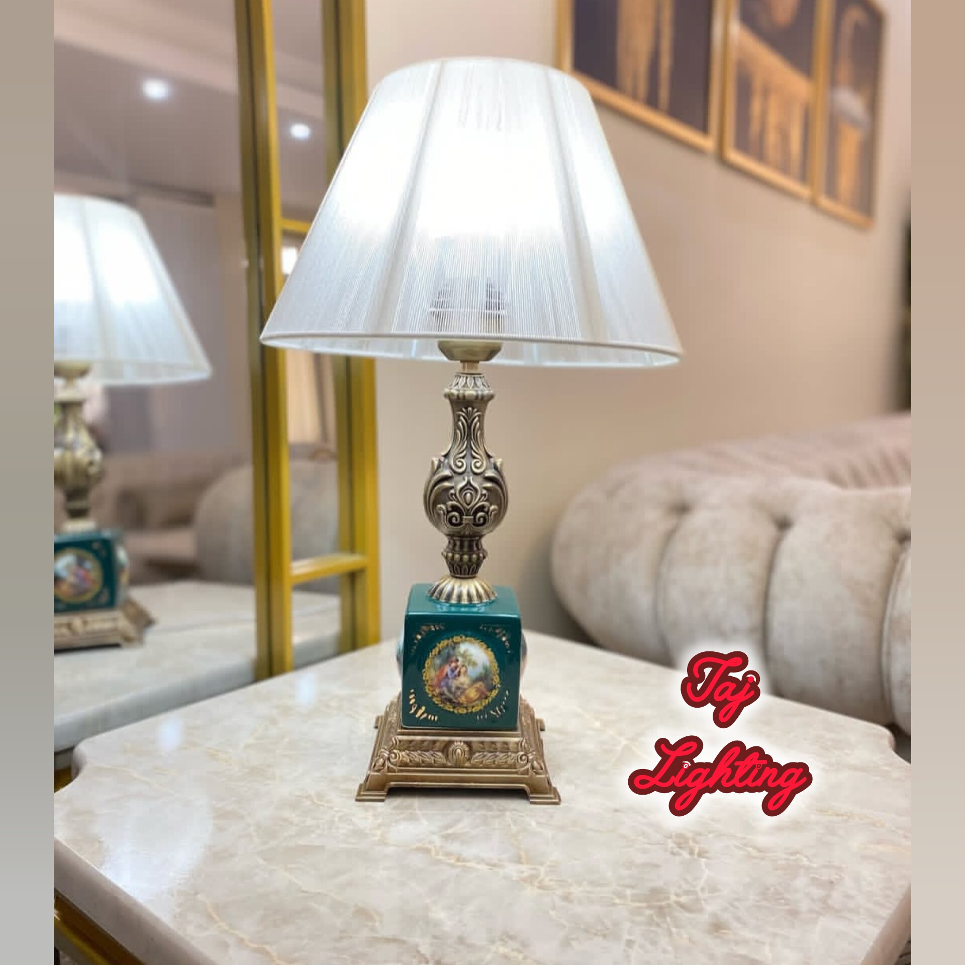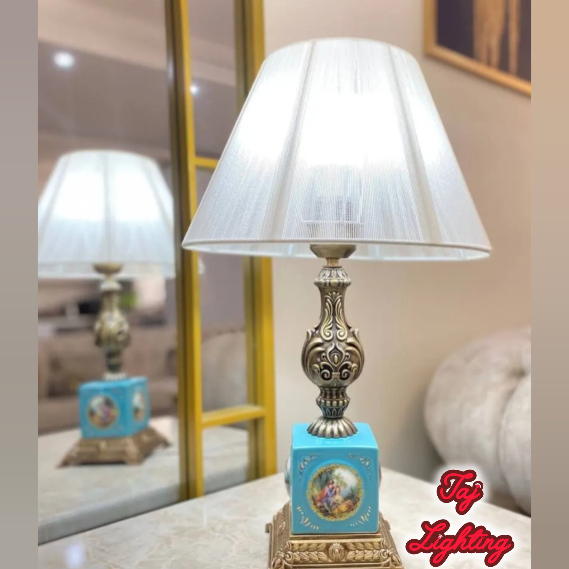 💥قیمت درج شده ، قیمت هر عدد چراغ می باشد جنس شید : نخی رنگ شید : سفید جنس وسط تنه : سرامیک رنگبندی وسط تنه : سفید، زرشکی، سورمه ای ، فیروزه ای ، یشمی جنس پایه و ستون برنز با آبکاری آنتیک