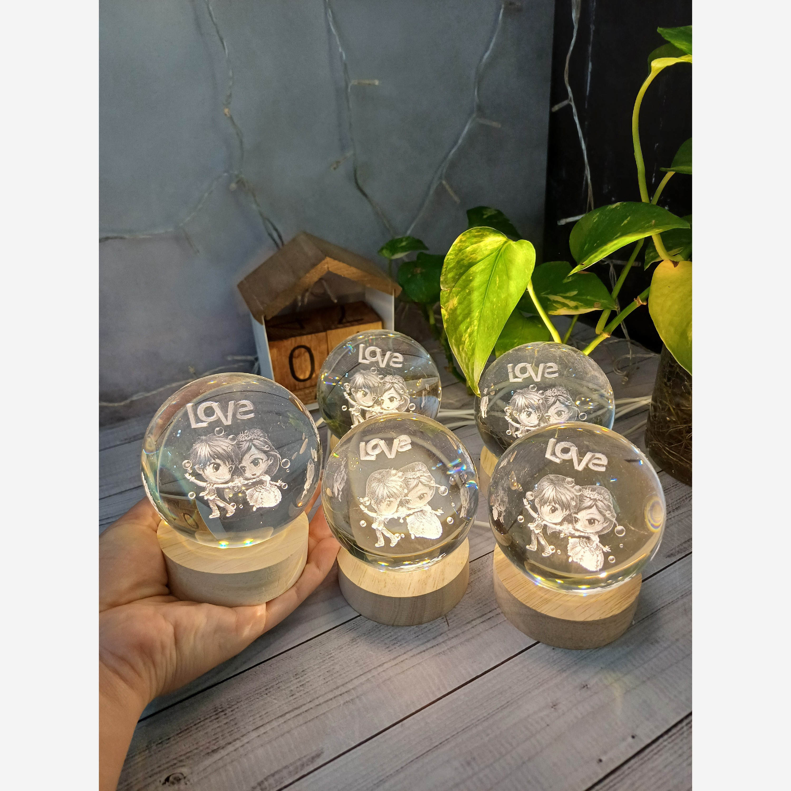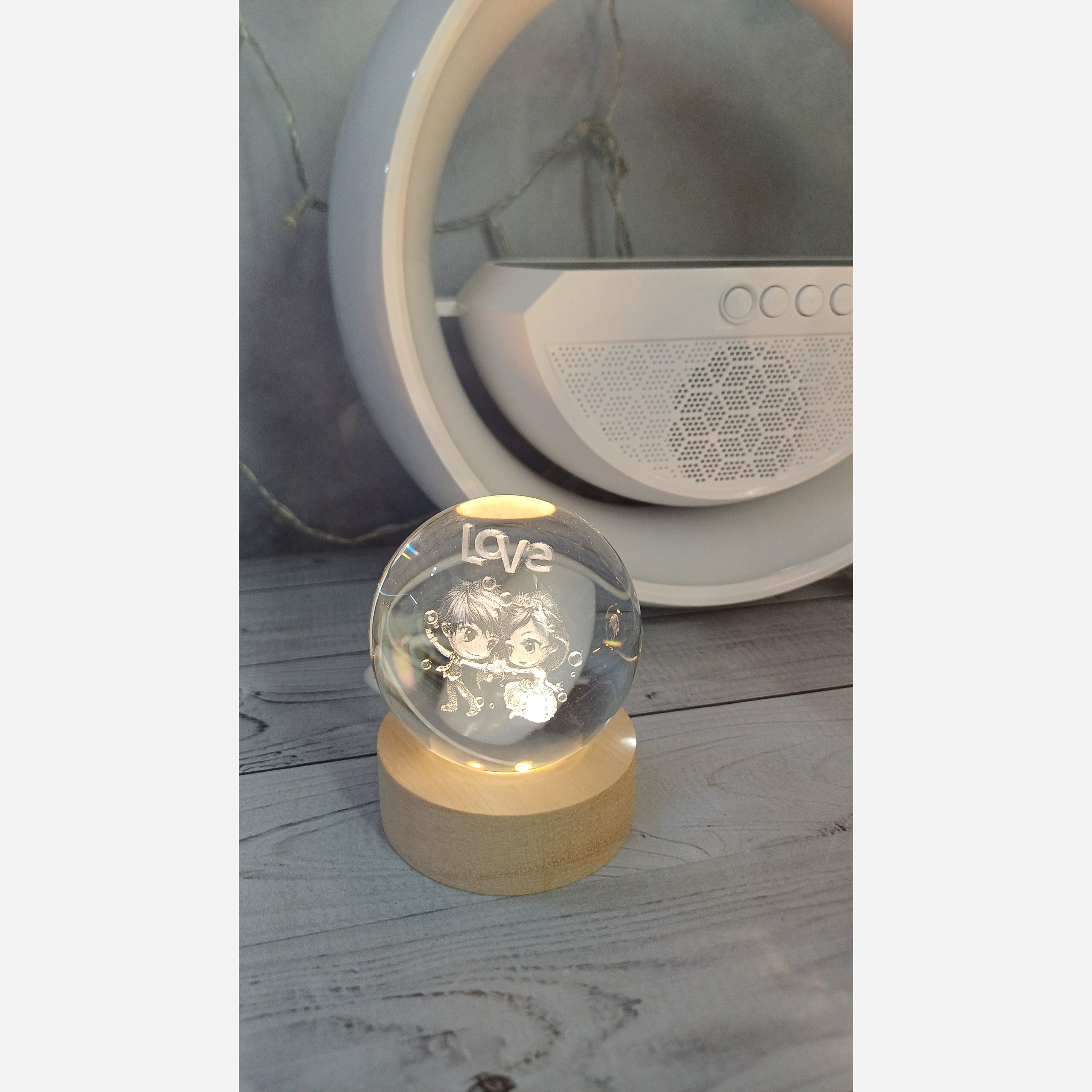 کریستال فشرده بادوام ونشکن با پایه چوبی با 6 ال ای دی قوی