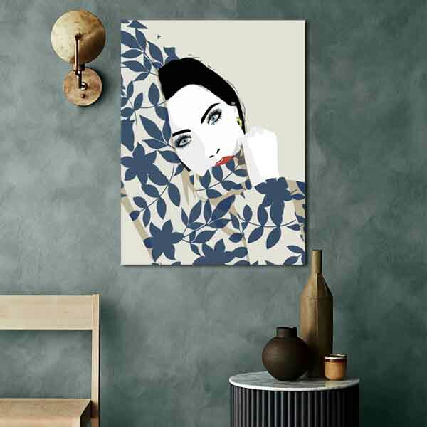 تابلو بوم چاپی لاویا طرح نقاشی زن و برگ کد ART-2694 مبلمونسرا مدل 268143