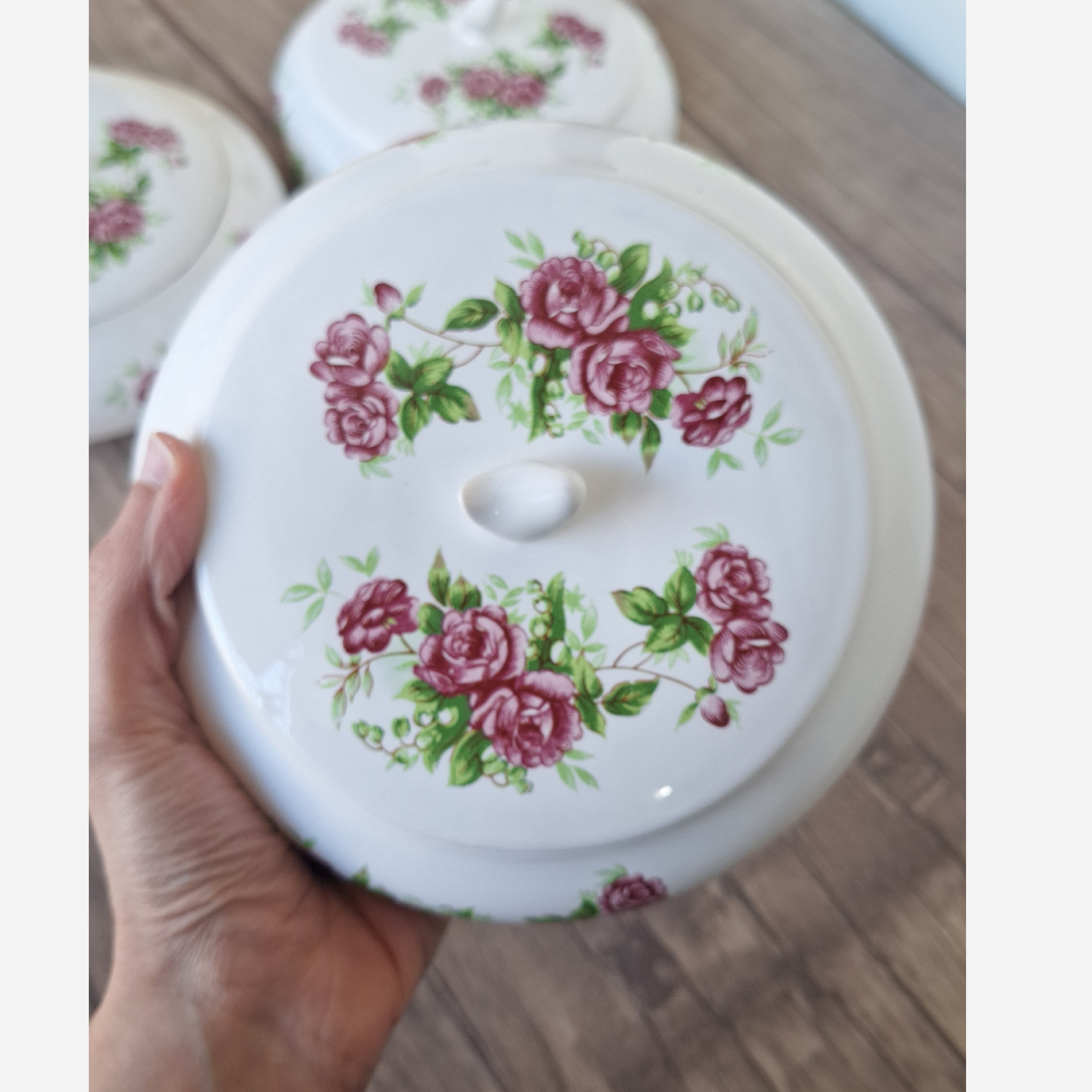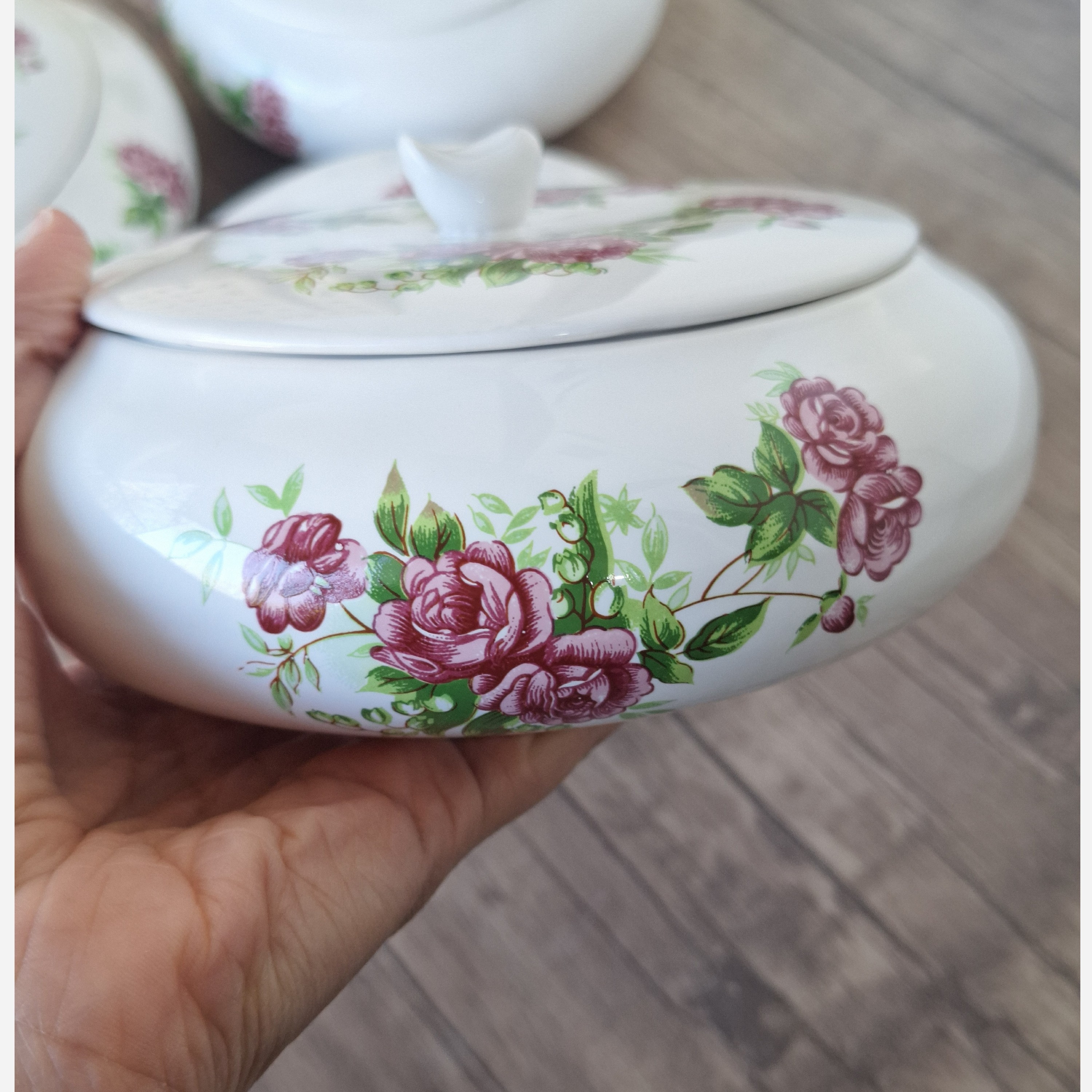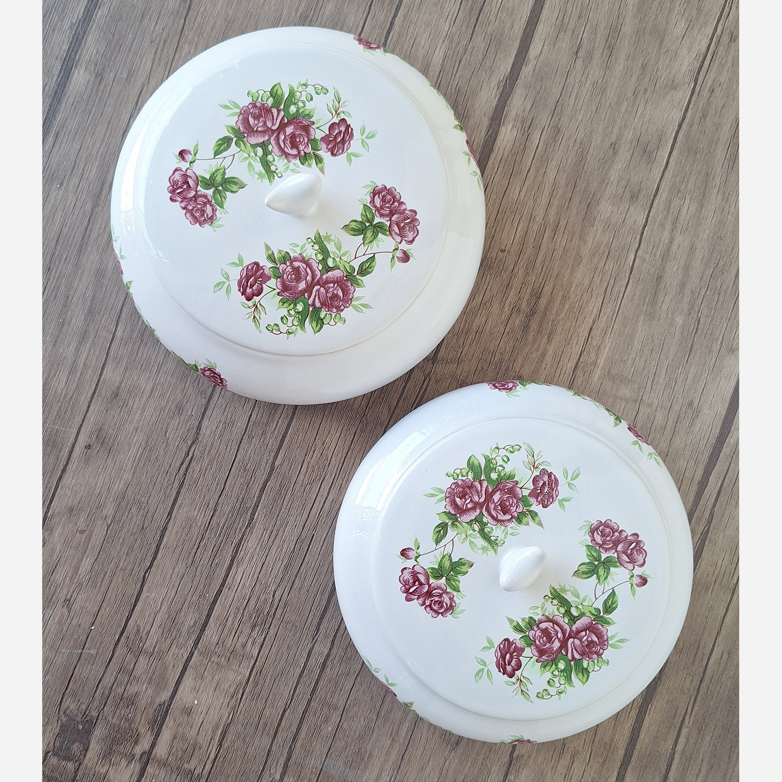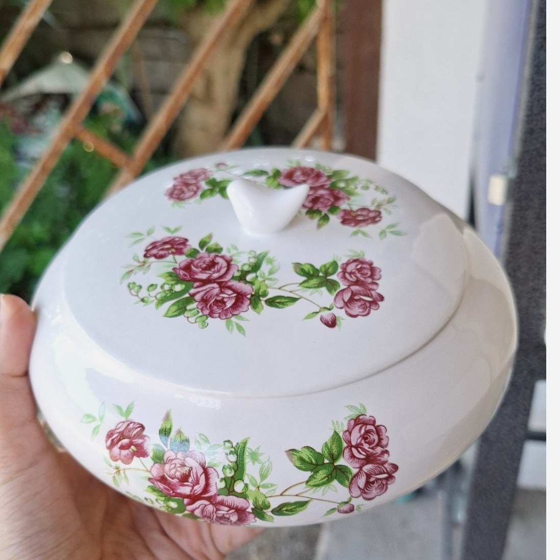 شکلات خوری گل سرخی چینی پرسلان مناسب برای استفاده روزمره و هدیه به دیگران قابل شستشو در ماشین ظرفشویی سرامیک زود لب پر میشه و جذب اب داره که در داز مدت ترک بر میداره اما کار های چینی این مشکلات رو نداره و شما میتونید با خیال راحت ازش استفاده کنید ارتفاع بدون درب 7 و به قطر 18 هست تولیدی تیکا سرام در طرح های مختلف در غرفه موجود هست ..پیام دهید