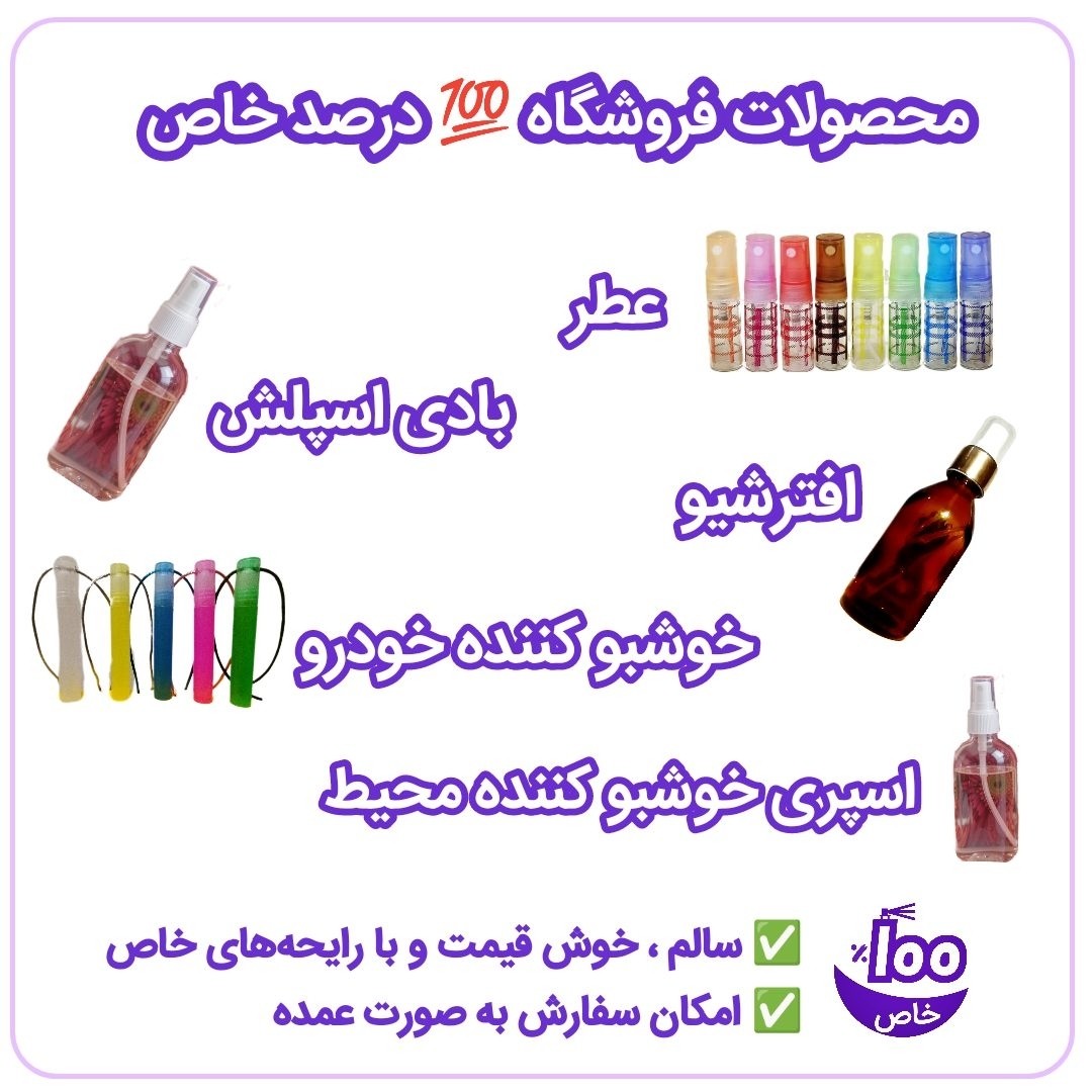 👈 ظروف اسپری عطری از نوع جیبی 5 میلی لیتر قرمز یا آبی رنگ در بستههای 500 عددی ارسال میشود. 👈 همچنین اسانس و عطر عمده جهت سفارش موجود است. 👈 همچنین خوشبو کننده هوا، خوشبو کننده بدن، افترشیو و... به صورت عمده موجود است. 🟣 عطریات 100 درصد خاص ❤️ عطرهایی از دل ایران 🇮🇷