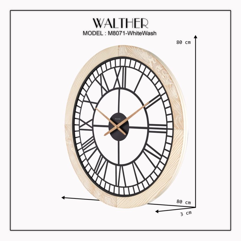 ساعت دیواری قطر 80 ترکیب چوب و فلز M8072-White whash مبلمونسرا مدل 236838