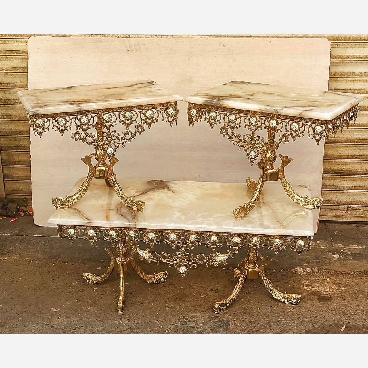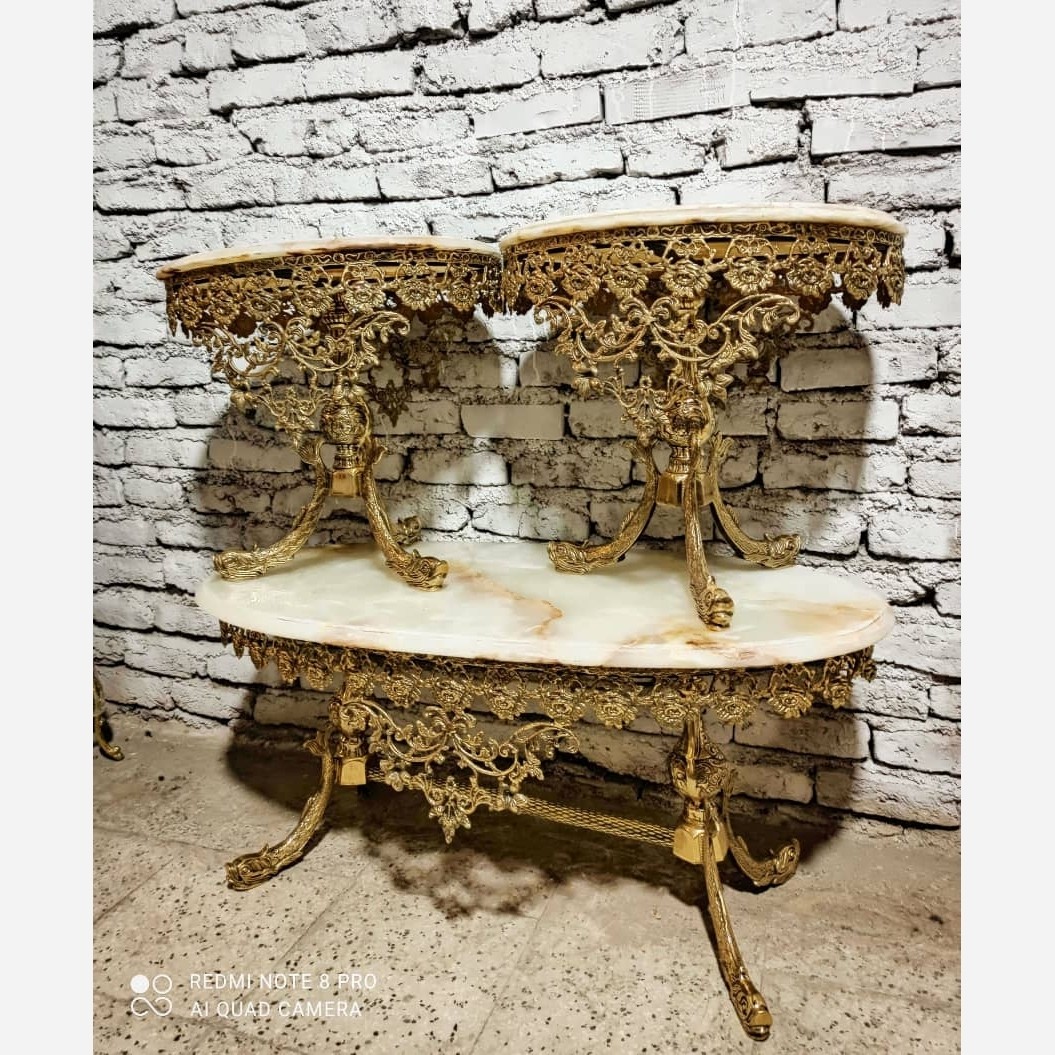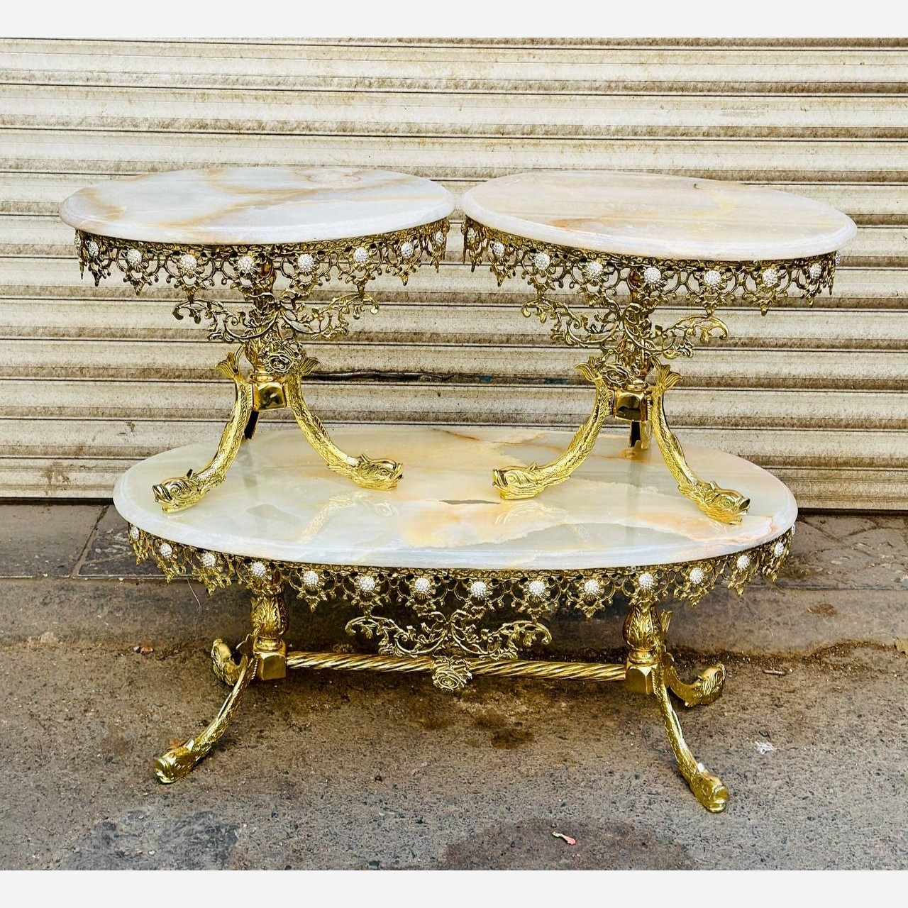میز عسلی جلو مبلی برنز گل میز برنجی رویه سنگ مرمر سه پایه ماهی مبلمونسرا مدل 219819
