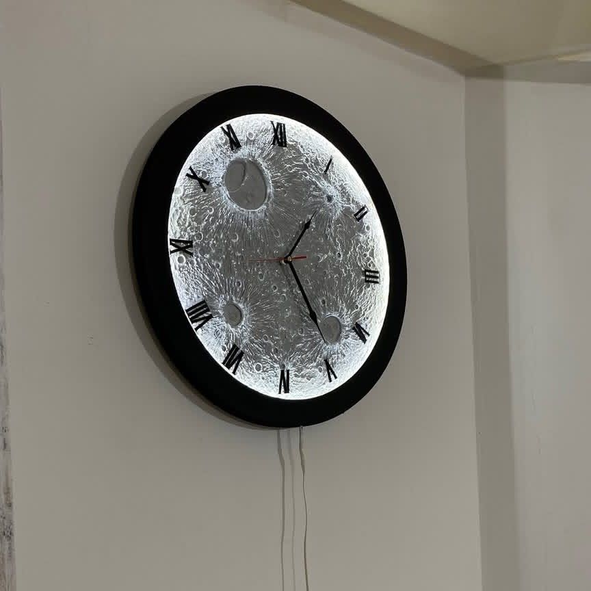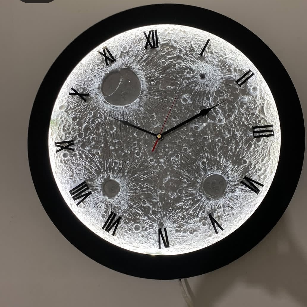 ساعت طرح ماه برجسته دست ساز نورانی جدید مبلمونسرا مدل 236826