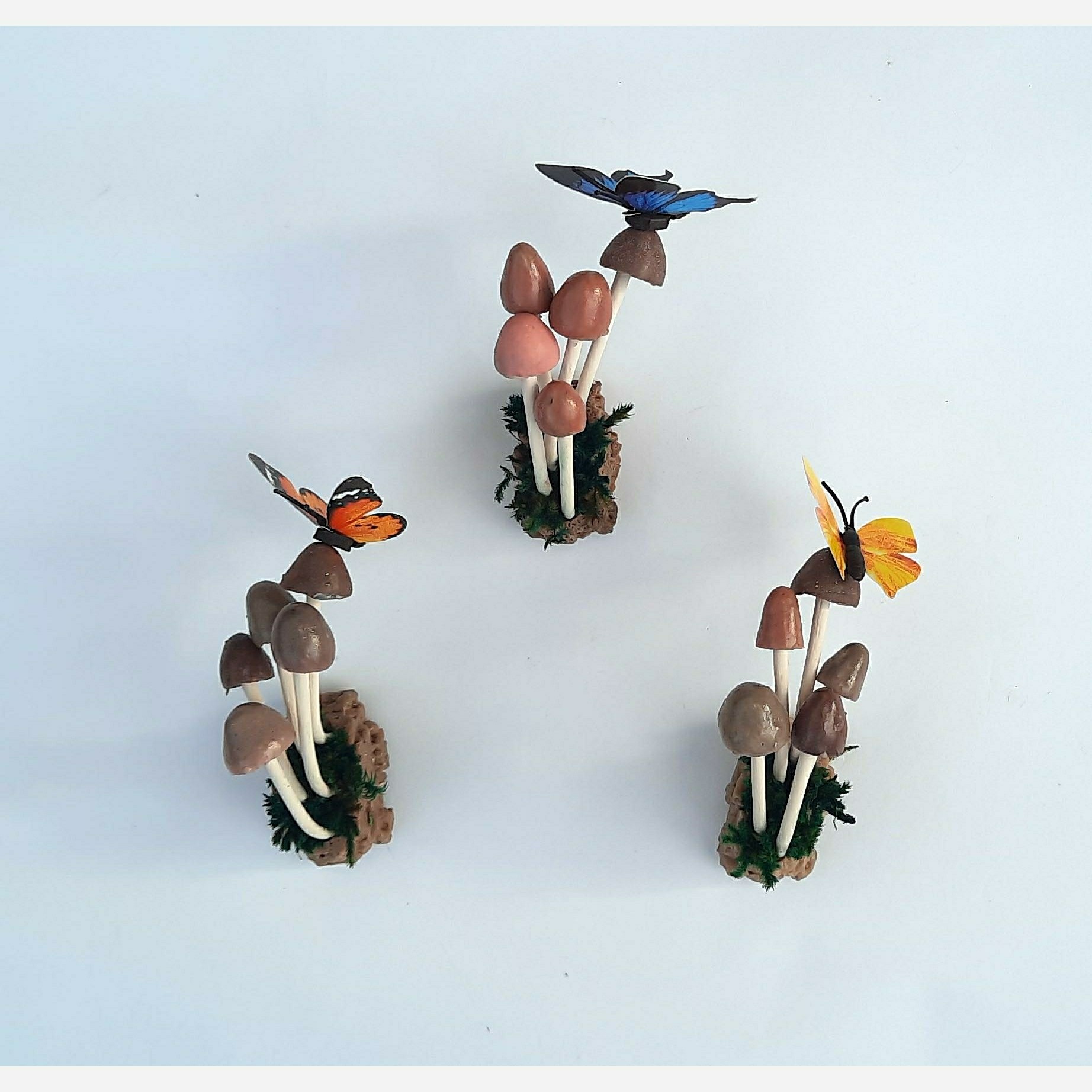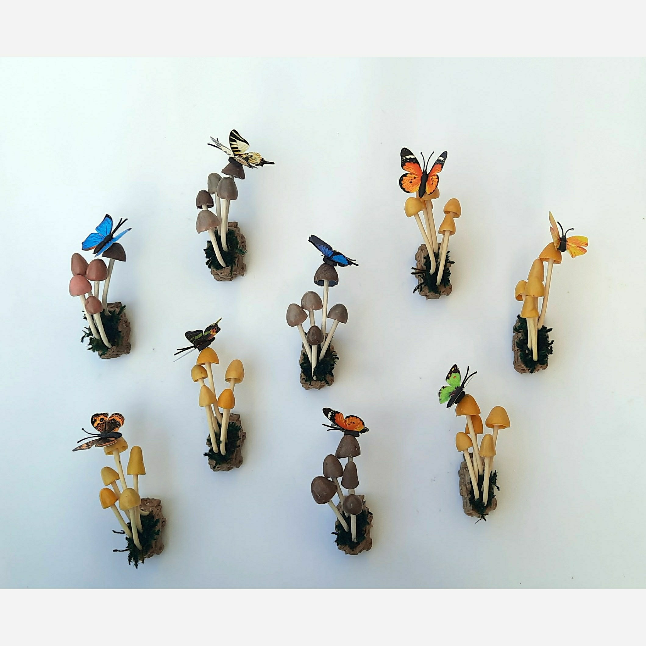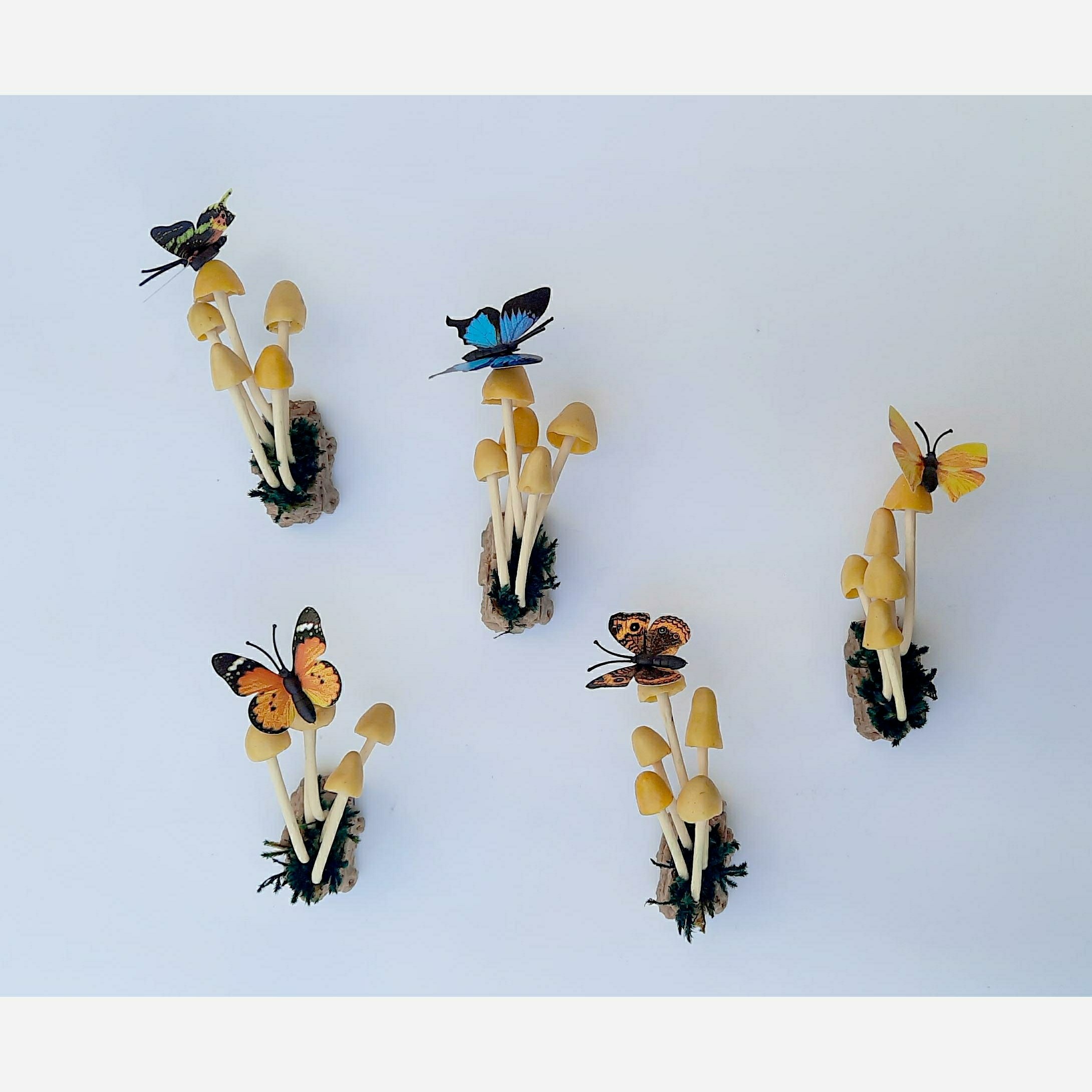 این مگنتهای ظریف و زیبا بر پایه ی رزین پلی استر و با الهام گرفتن از طبیعت طراحی شدند. ترکیب رنگهای ملایم به همراه خزه ی تثبیت شده و پروانه ی روی قارچها زیبایی خاصی به محیط خانه و آشپزخانه می بخشد. پشت هر محصول دو عدد آهن ربای سرامیکی قرار دارد که بتواند وزن محصول را تحمل کند و آن را به خوبی نگهدارد. این محصول در دو رنگ زرد و قهوه ای موحود است. با توجه به زحمت زیادی که این محصول می بره با این حال سعی کردم قیمت منایب بگذارم.