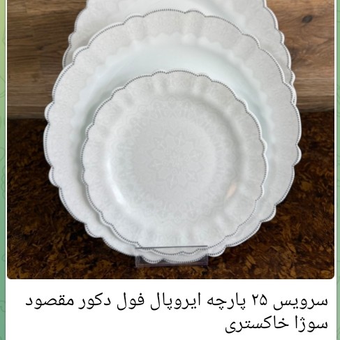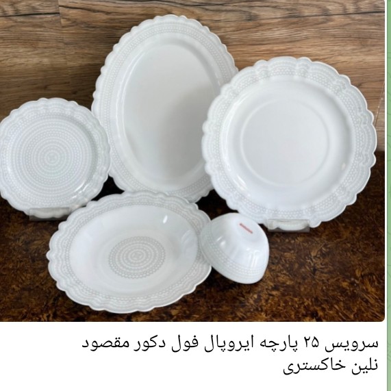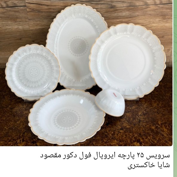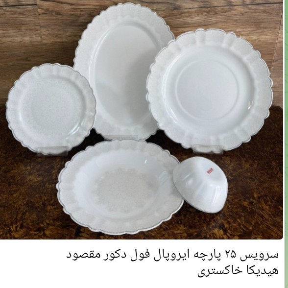 سلام. سرویس ۲۵ پارچه ایروپال درجه یک مقصود طرح های مختلف داره که اسمشون زیر عکس نوشتم شامل ۶ تا برنج خوری ۶ تا خورشت ۶ تامسون خوری ۶ تا کاسه یک دیس ..هزینه ارسال اس.
