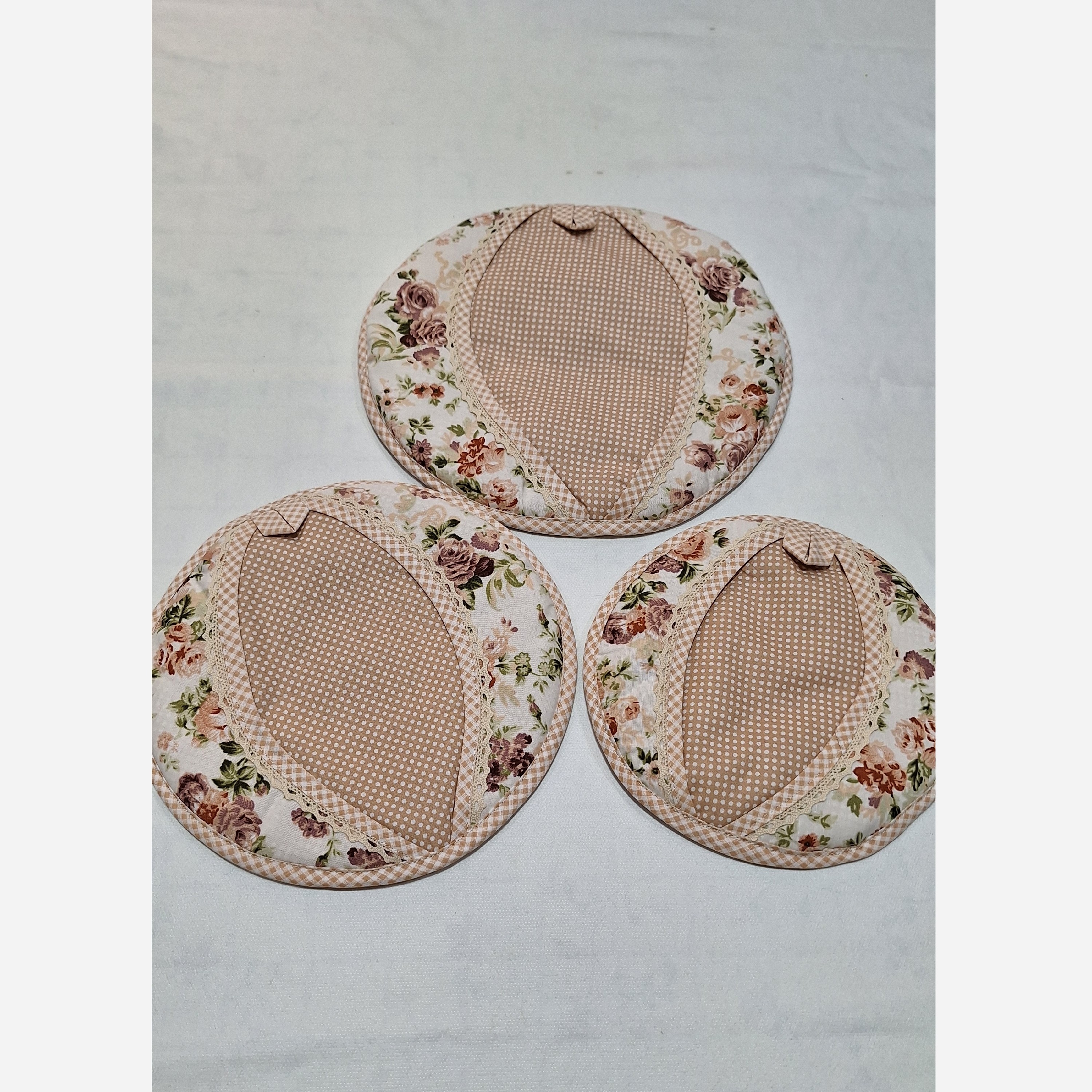 ست دمکن مدل چشمی 3 عددی داخل پشمه شیشه و با آستر از خود پارچه دور نوار دوزی از خود پارچه باز اگر سایزی میخواید میتونید سفارش دهید
