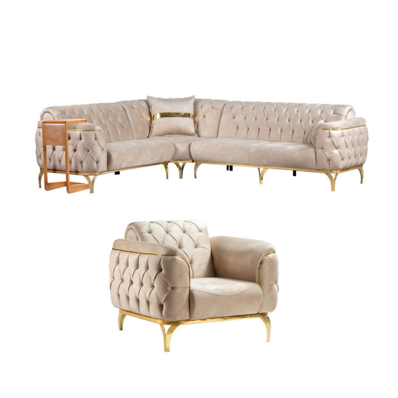 توجه!!!(قبل از ثبت سفارش لازم است بدانید که رنگ کاناپه های سه نفره و مبل تکنفره را میتوانید شما عزیزان با انتخاب رنگ و ثبت سفارش انتخاب کرده تا باهم ست شود.) مدل ال یک مبل راحتی 7 نفره . این کالا شامل یک عدد کاناپه 3 نفره و یک عدد کاناپه 2 نفره و یک عدد مبل 1 نفره و یک عدد کنج میباشد و دارای یک عدد میز لپتاپ دارد . استیل استفاده شده از جنس آهن با کیفیت در پایه ها و دیزاین ظاهری مبل، کلاف چوب روس خشک شده، اسفنج های 35 کیلویی ویژه برای نشیمن، اسفنج 30 کیلویی برای تکیه گاه و اسفنج 30 کیلویی برای دسته های مبلمان، باعث شده تا مدل ال عمر طولانی و راحتی فوق العاده ای را به شما هدیه دهد.لمس پارچه و دوخت در کنار دسته های کاناپه ها احساس بسیار خوبی به شما می بخشد. پایه های مبل از جنس آهن برای دیزاین به کار برده شده، زیبایی خیره کننده و دو چندانی به مبل راحتی ال بخشیده است. کاناپه ال ، دارای فضای بسیار مناسب و کافی برای استراحت میباشد و مهمانی ها و دورهمی های شما میباشد.دوخت بسیار با کیفیت و زیبا در کنار مغزی دوزی هایی که با ظرافت خاصی در همه جای این مدل به چشم میخورد. لمسه دوزی های این مدل همراه با دکمه های میخدار ترک زیبایی خیره کننده ای به ای مدل بخشیده است حاصل طراحی مدرن و خلاقانه ی طراحان مجموعه میباشد.یکی از مهمترین نکات در طراحی و تولید مدل صدف، طبی بودن تکیه گاه و نشیمن آن است به طوریکه برای کسانی که مشکلات ستون فقرات دارند بسیار راحت و مناسب است. مبل ماهور یک محصول شیک و کلاسیک با طراحی زیبا و جذاب است که به آسانی میتواند جزو مبلمان مورد علاقه شما باشد. این مبل 8 نفره است و شامل دو کاناپه، کلاف داخلی از چوب روس ساخته شده است. دو پایه در وسط کاناپه این محصول مجهز شده است تا ثبات بیشتری برای کاناپه ایجاد کنند. در کل، مبل ال یک محصول بسیار راحت و شیک است مناسب دورهمی و تی وی روم شما که میتواند تزئینی عالی برای منازل و اتاقهای مختلف باشد این ست مبلمان یک سرویس کامل بوده و برای خرید جهیزیه و زیبایی بیشتر دکوراسیون منزل شما پیشنهاد می شود