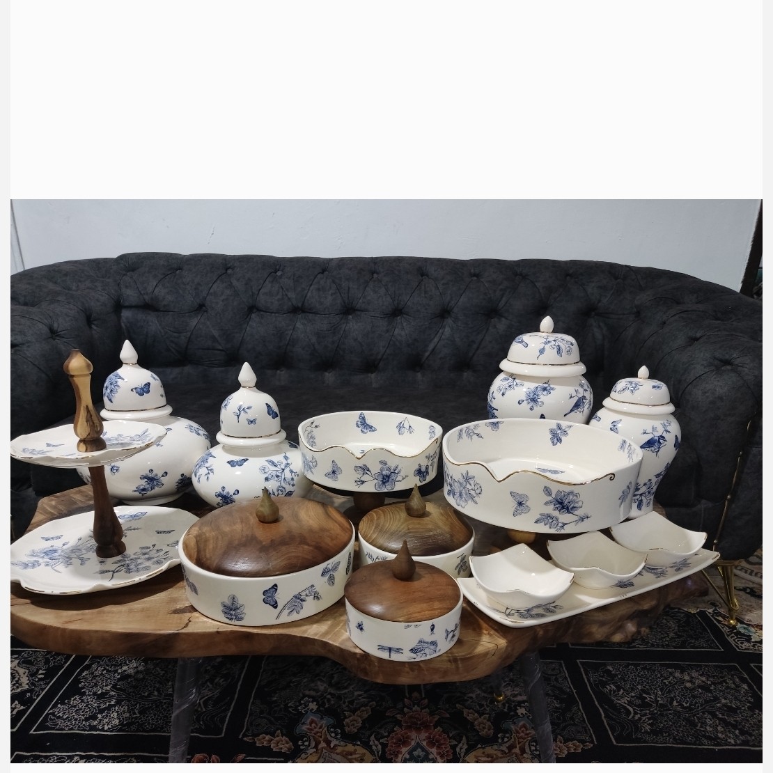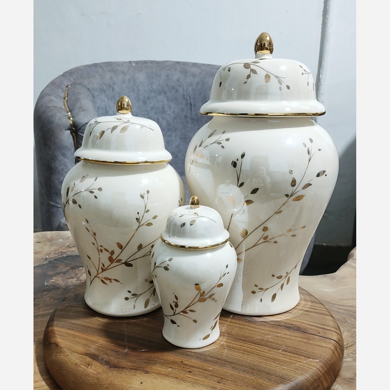 جینجرجار طلا کاری شده جینجرجارسه سایزی قابلیت ساخت اباژور از ست و ست کامل ظروف عکس اول قیمت داخل اگهی میباشد ک با لعاب عادی پوشیده شده عکس دوم لاستر صدفی خورده ک براقیت ان بیشتر شده و قیمت با عکس اول متفاوت میباشد