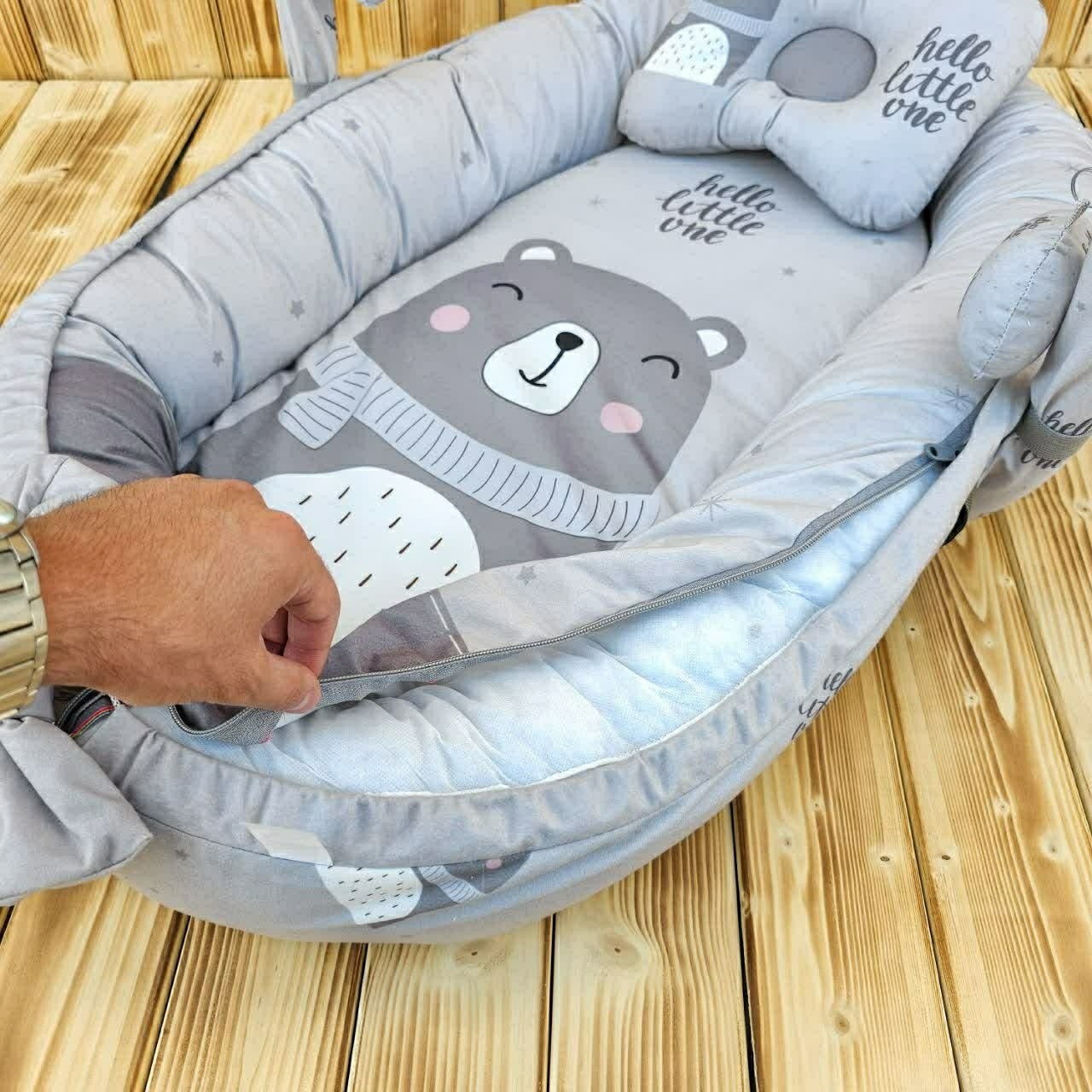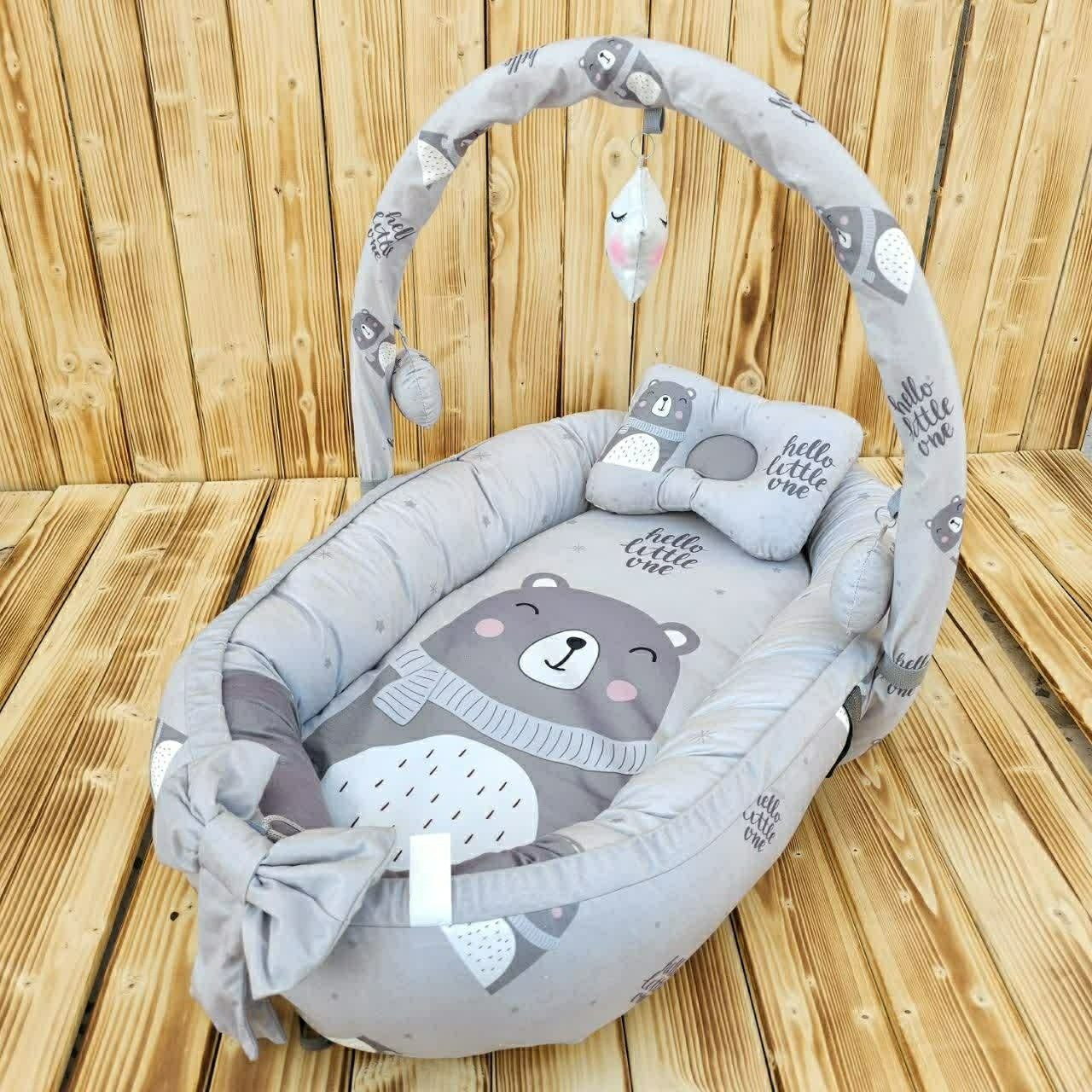 سرویس خواب نوزادی 7 تیکه گارد دار طرح خرس طوسی. مبلمونسرا مدل 227387