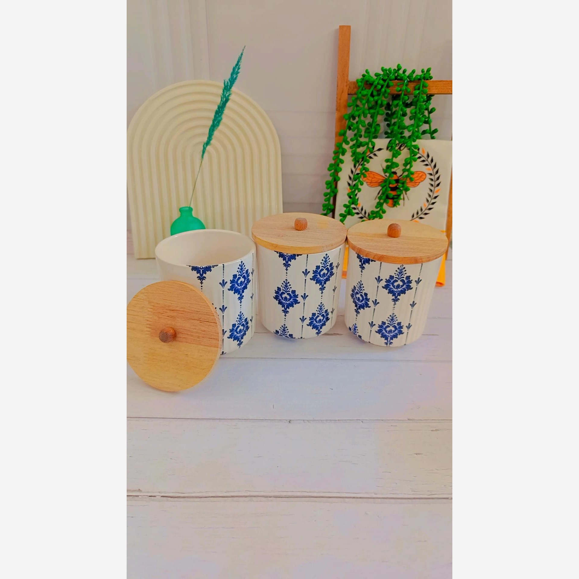بانکه شیار دار با گلهای زیبای آبی در چوب کیفیت عالی سرامیک
