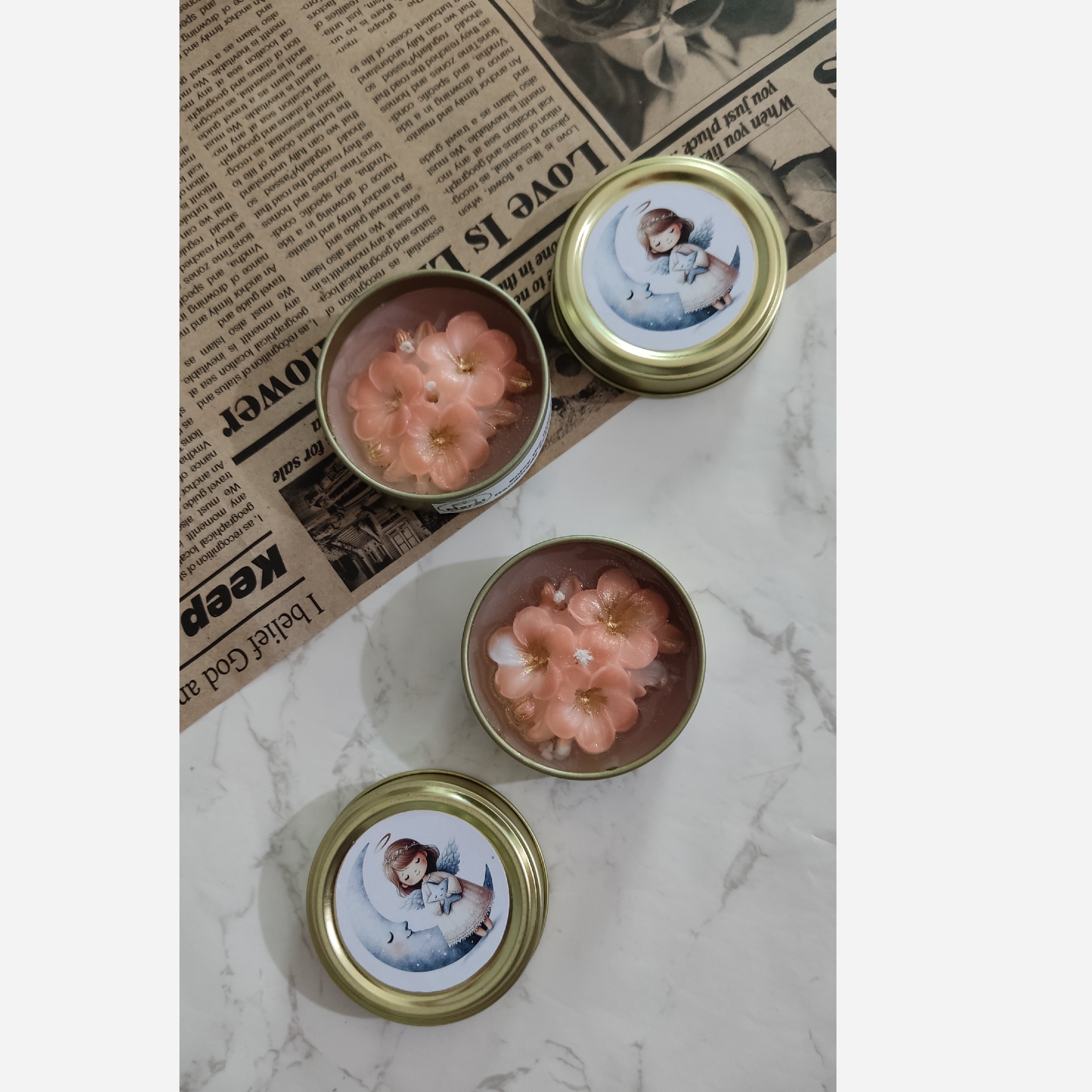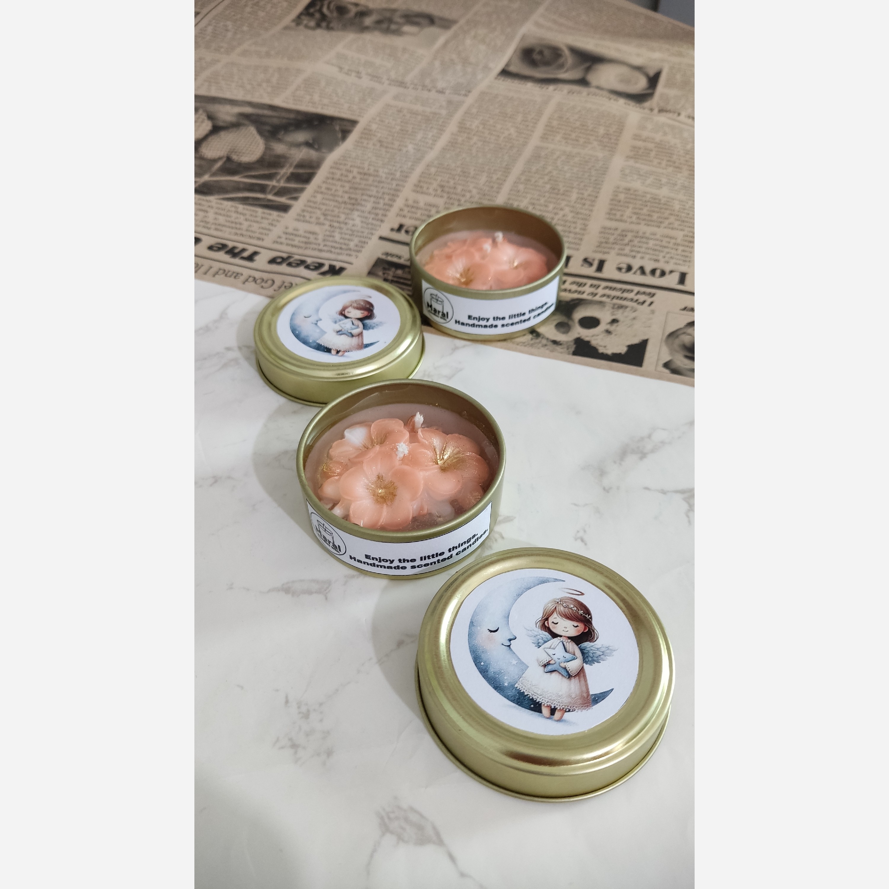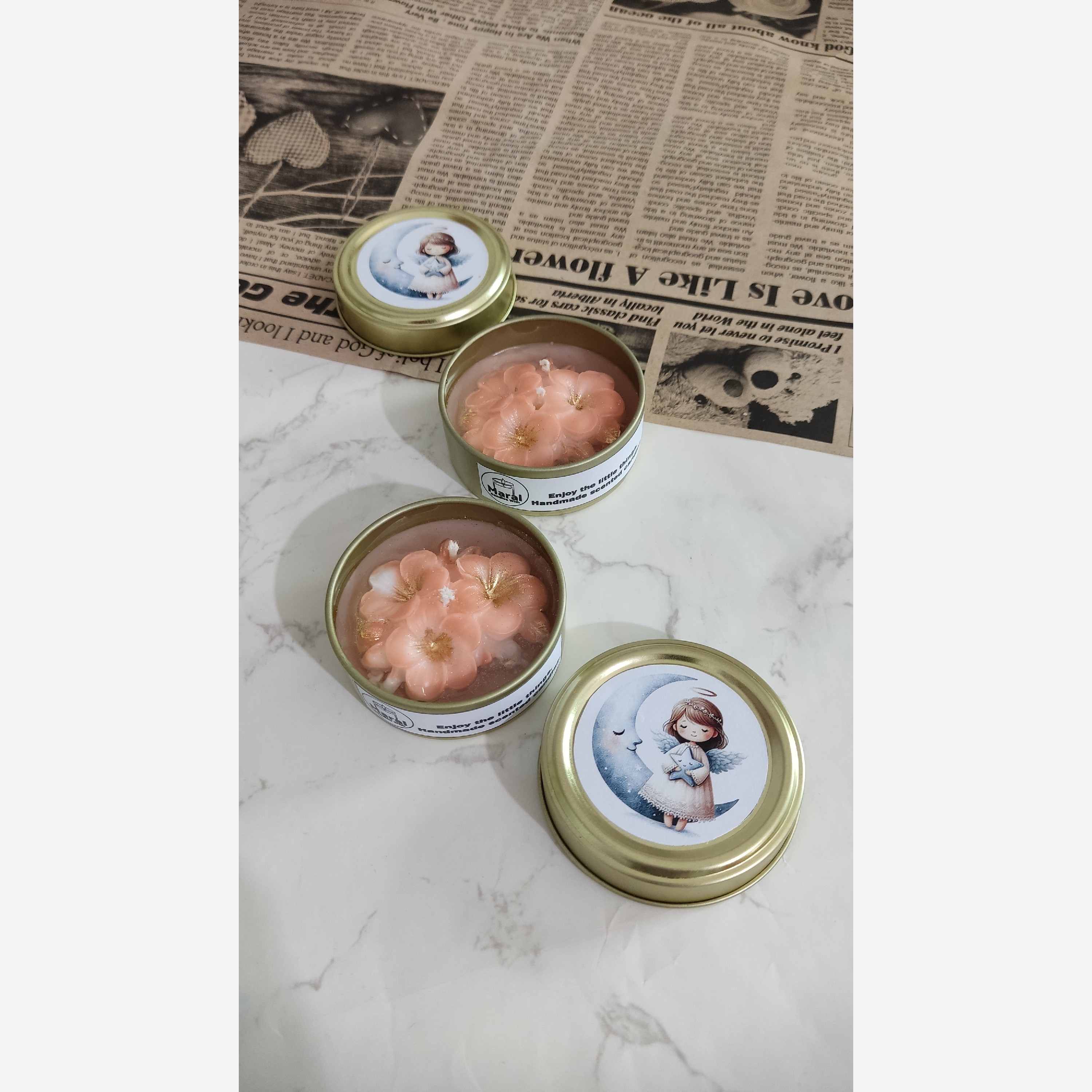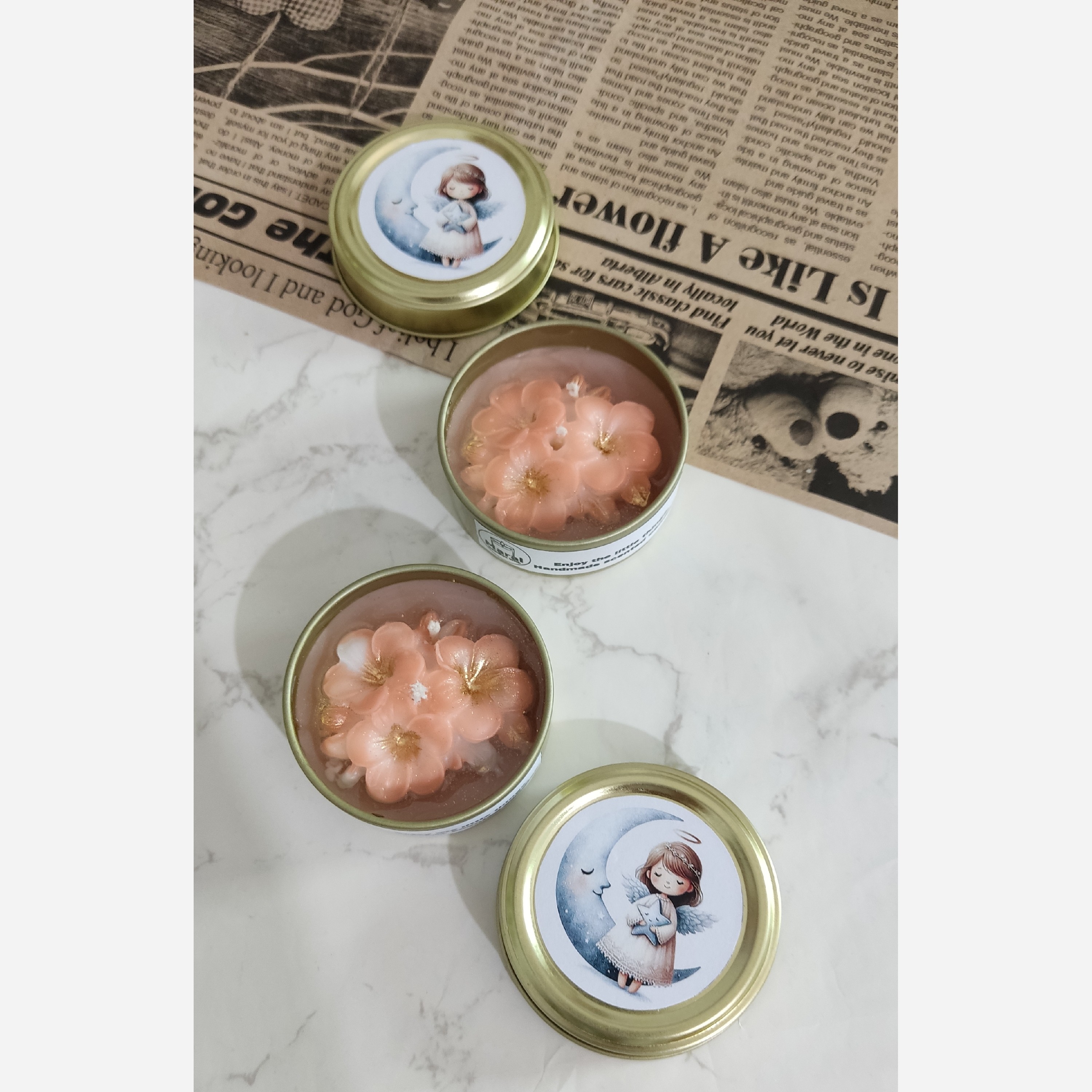 قطر قوطی 6 سانتیمتر در ارتفاع 2/5 سانتیمتر با دیزاین جذاب گل شب بو و رایحه نارگیل مناسب هدیه دکوری سلیقه ای گیفت نامزدی عقدعروسی