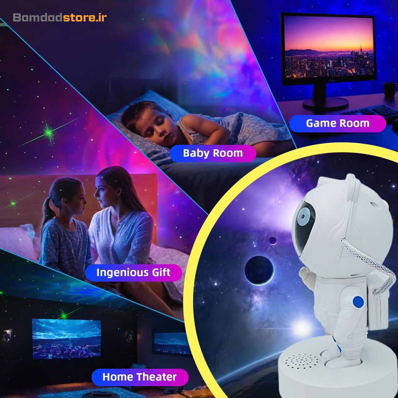 چراغ خواب کهکشانی فضانورد ایستاده اسپیکر پروژکتور شب خواب مبلمونسرا مدل 233670
