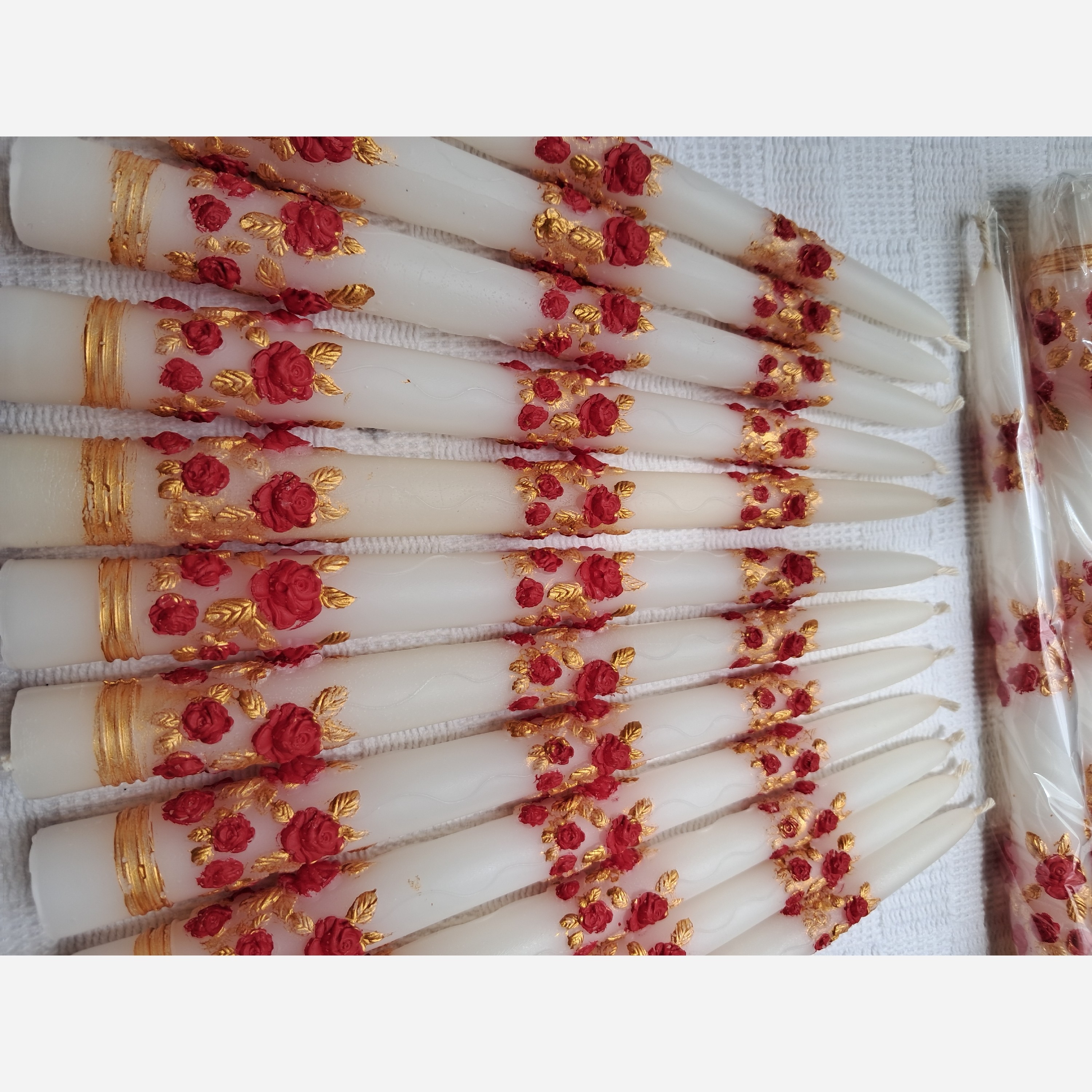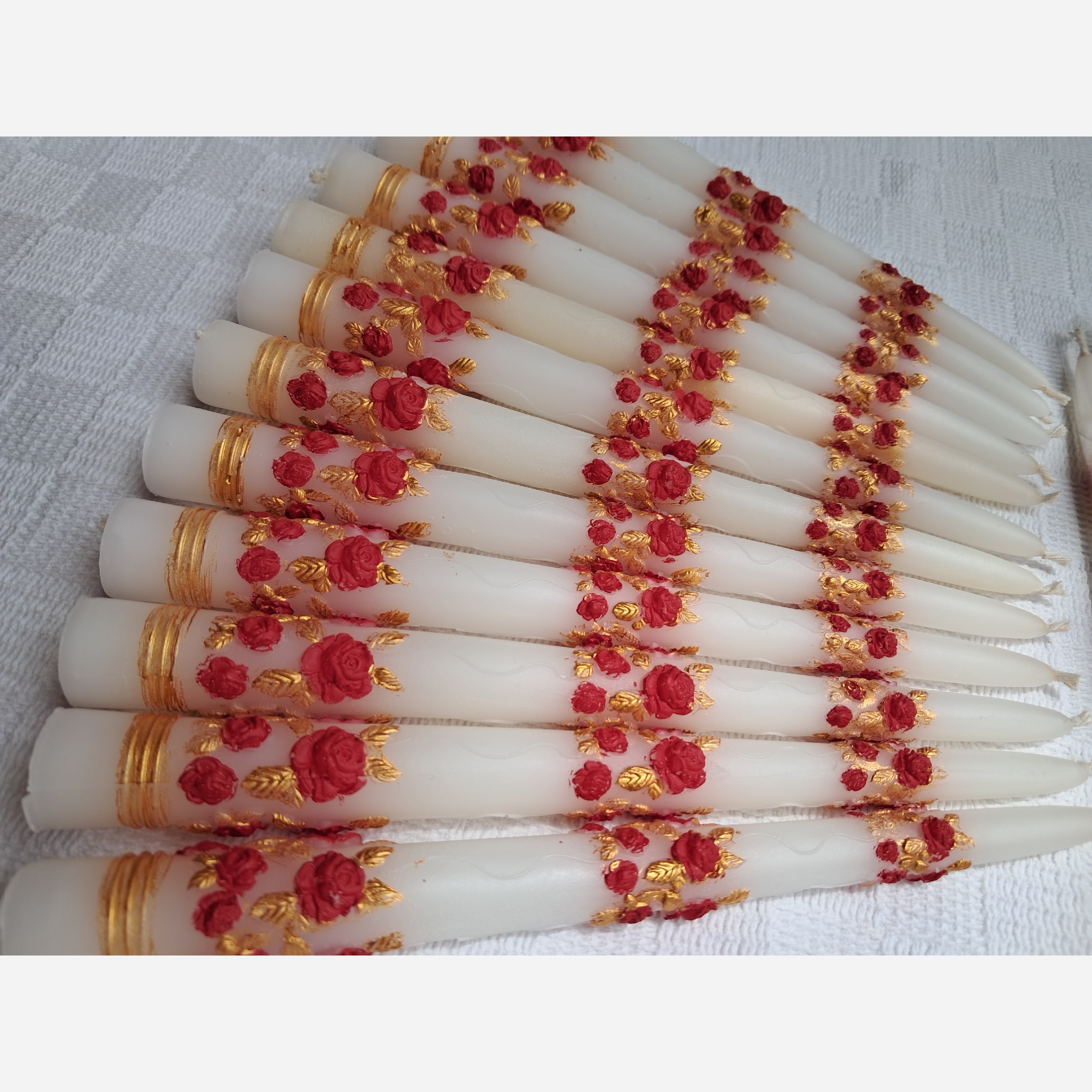 شمع قلمی گل رز ارتفاع:20 سانت قطر:2 سانت ساعت سوخت: 5ونیم ساعت بسته 20 عددی