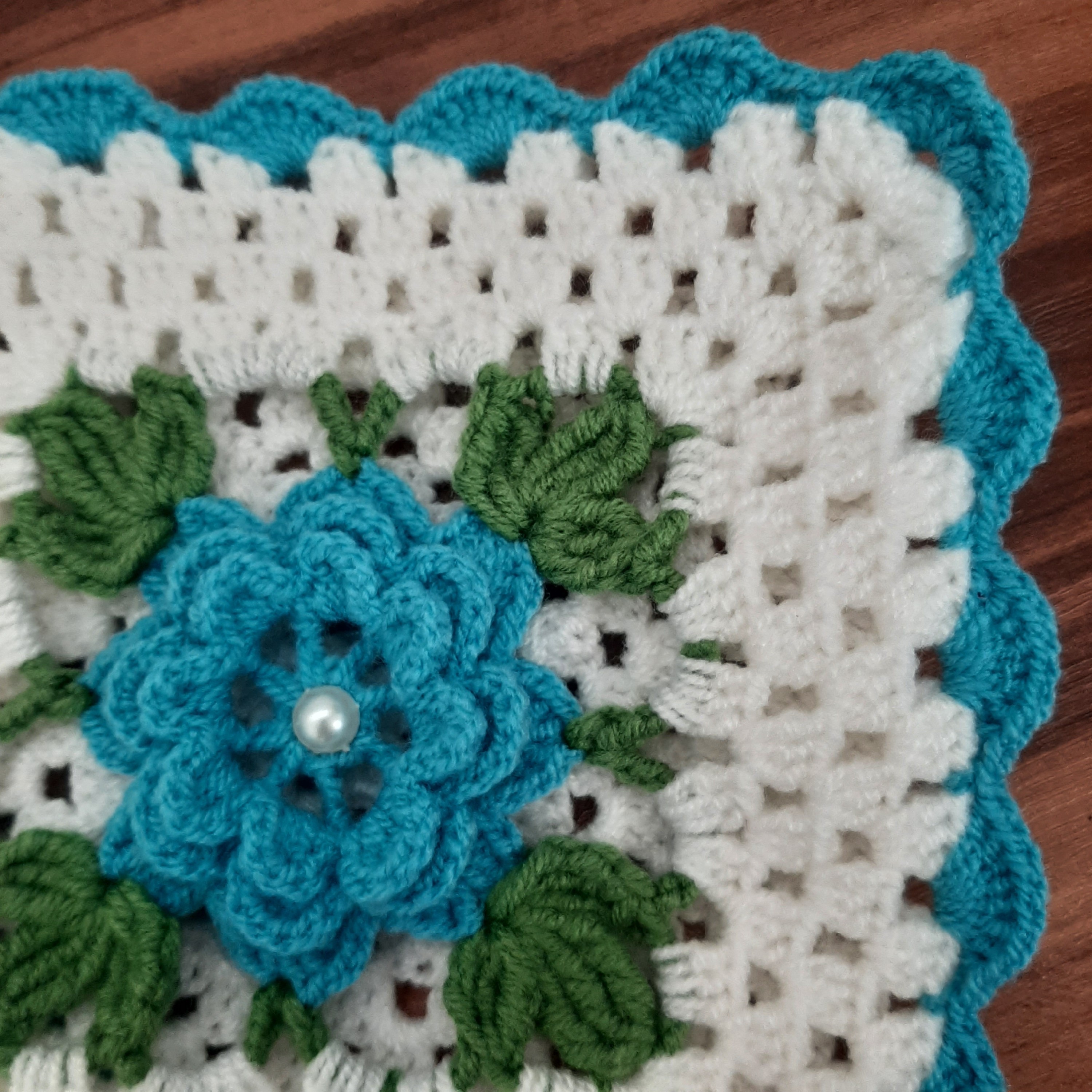 دستگیره کاموایی طرح گل برجسته آبی مبلمونسرا مدل 298827