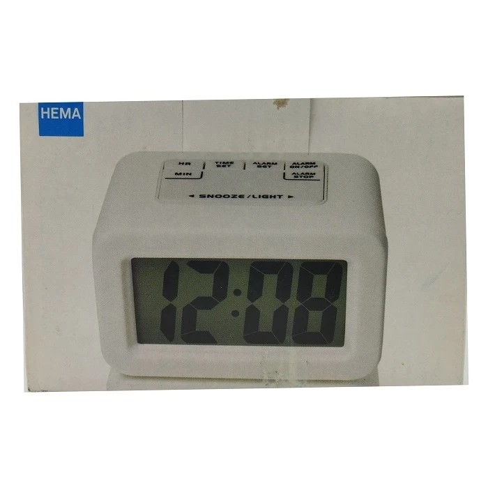 ساعت رومیزی HEMA برای بیدار شدن در ساعتی مشخص یا تکمیل لوازم میز کار یا اتاقخواب گزینهای ایده آل است. اعداد در این ساعت بهصورت دیجیتالی نمایش داده میشوند که در مقایسه با ساعتهای عقربهای و بدون نشانگر، بتوان راحتتر زمان را تشخیص داد. مدل به فناوری اسنوز مجهز شده است تا بعد از تنظیم زمان دلخواهتان، بعد از فشار دادن دکمه اسنوز، هر پنج دقیقه یکبار زنگ هشدار دوباره به صدا درآید. صفحهی اصلی ساعت دارای نور است تا در تاریکی شب و بدون نیاز به روشن کردن لامپ اتاق نیز اعداد را مشاهده کنید . برای تنظیم ساعت کلید TIME SET را انتخاب کرده و به کمک دو کلید HR و MIN زمان مورد نظر را انتخاب میکنید. برای تنظیم آلارم ساعت کلیدALARM SET را انتخاب و به کمک دو کلید HR وMIN تایم مورد نظر را انتخاب میکنید.