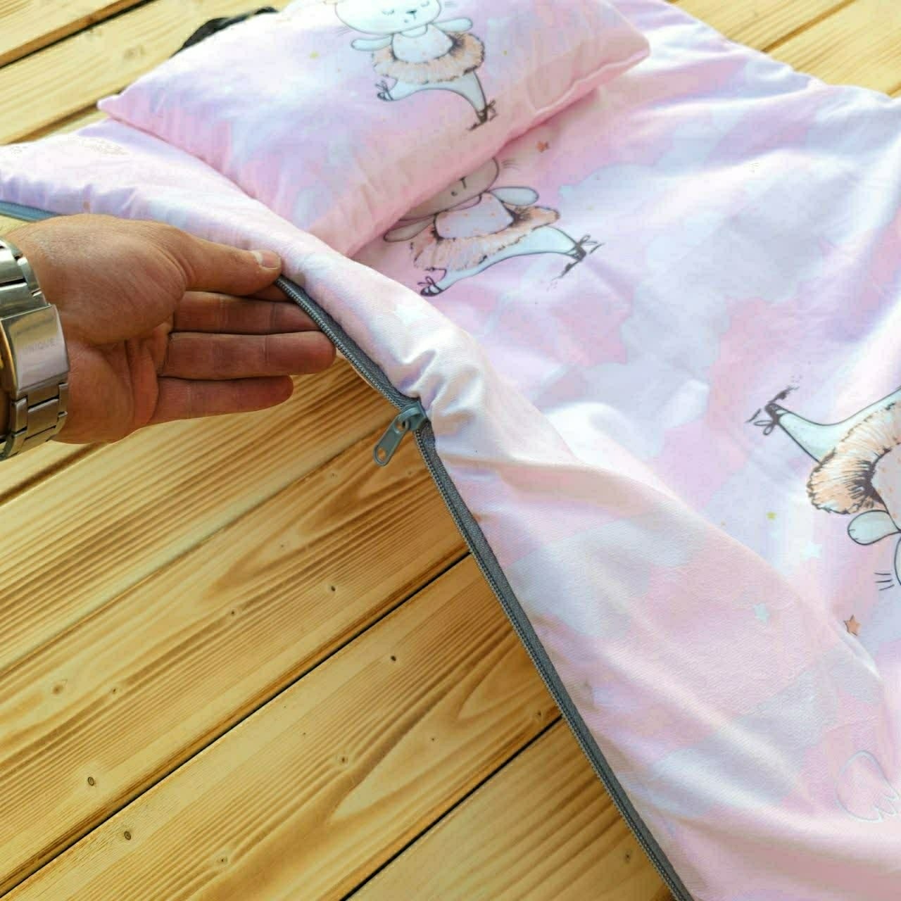 سرویس خواب نوزادی 3 تیکه مسافرتی. طرح خرگوش صورتی. جنس مخمل درجه یک مبلمونسرا مدل 227900