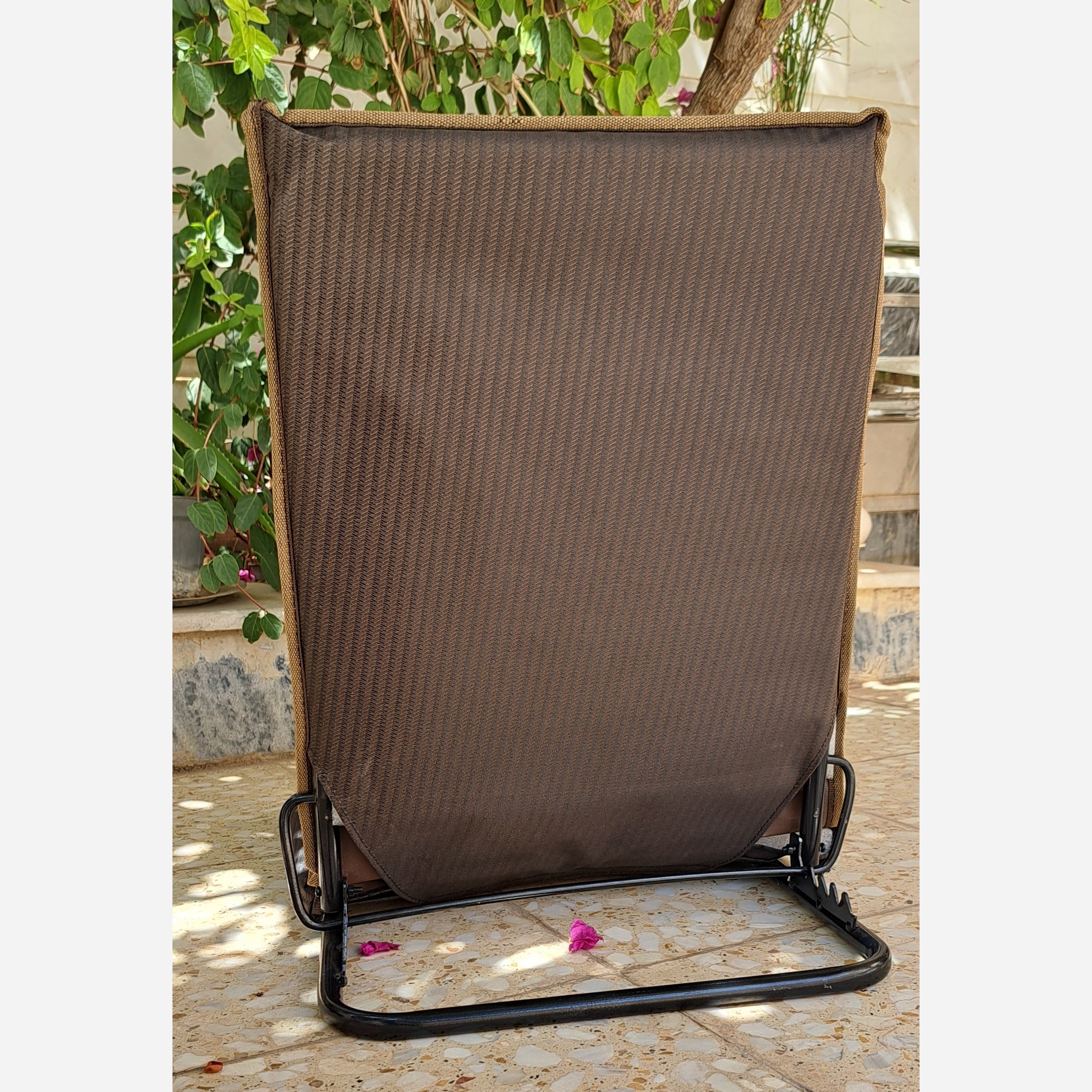 صندلی راحت نشین- صندلی مسافرتی بدون پایه با چهارچوب فلزی و تکیه گاه و نشیمنگاه برزنت- تکیه گاه مسافرتی مبلمونسرا مدل 235206