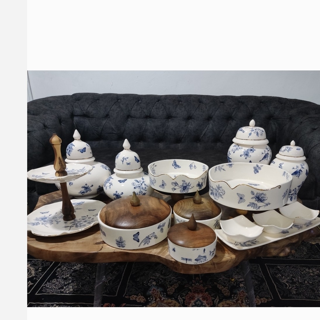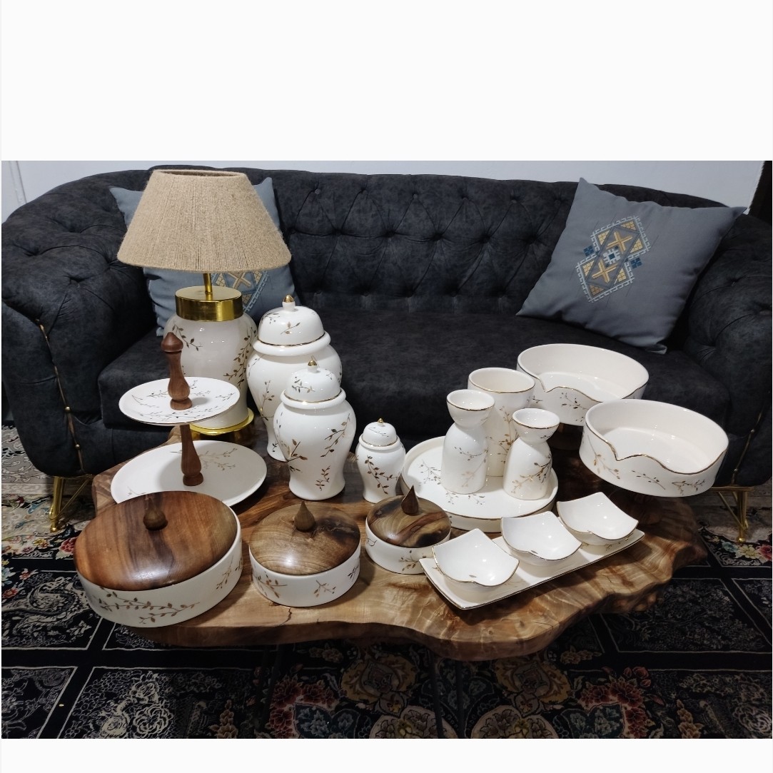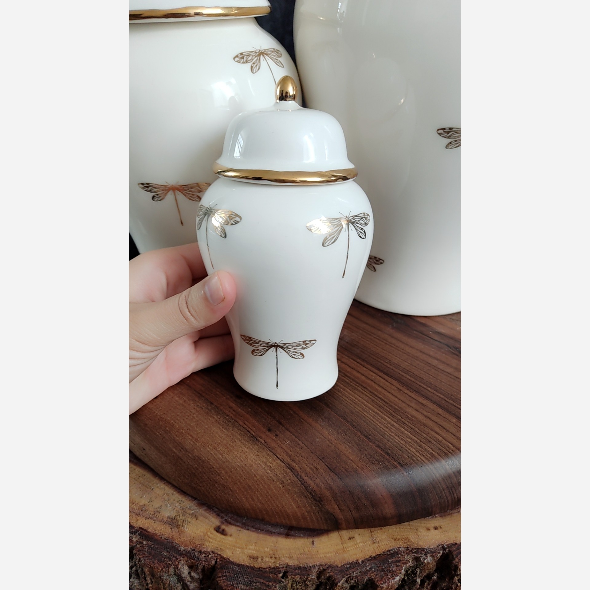 اباژور سرامیکی سفید طرح پاپیون،ست جینجرجار لاستر طلا طرح سنجاقک طلایی مبلمونسرا مدل 234031