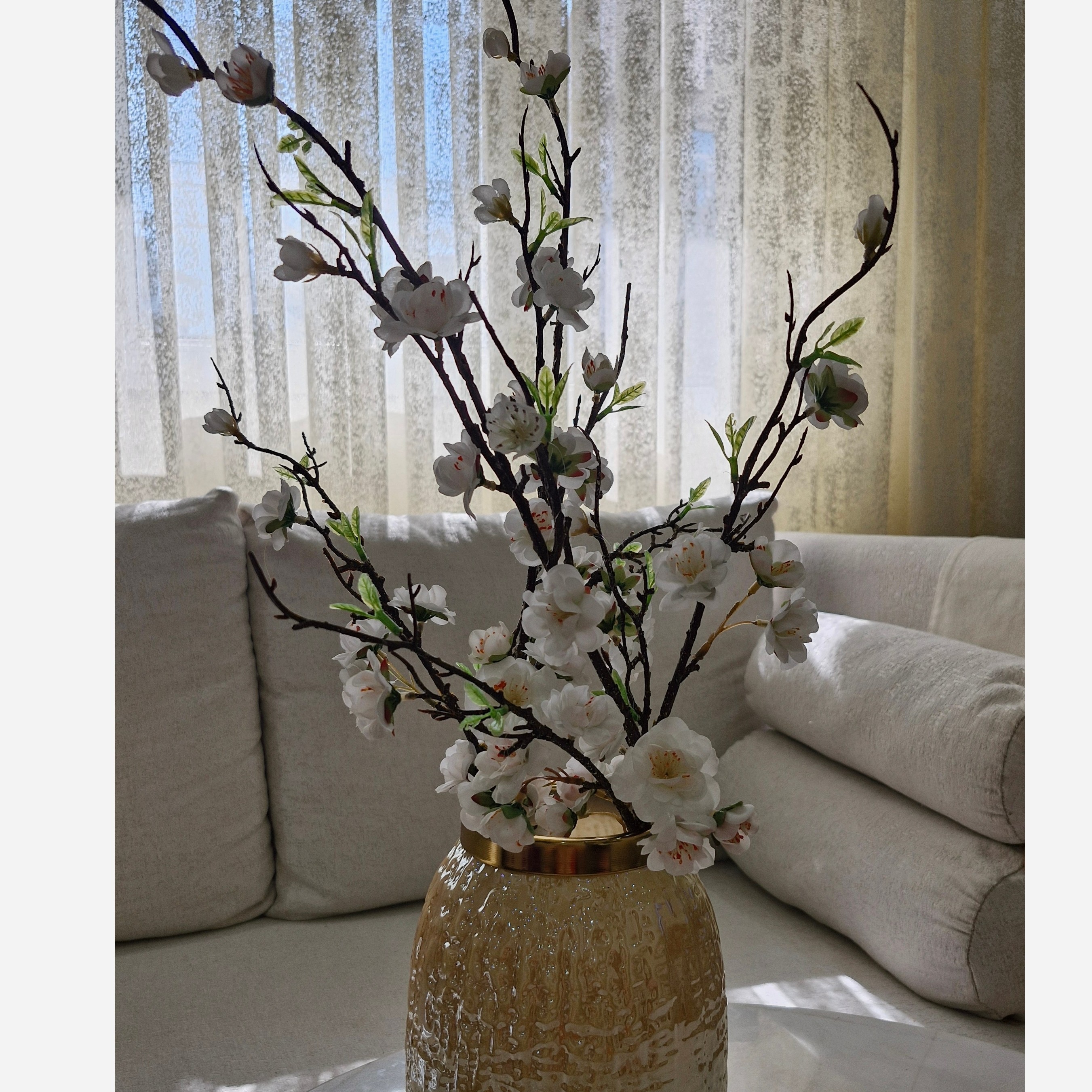 گل مصنوعی شاخه شکوفه ژاپنی یکی از زیباترین و خیلی طبیعی ترین گل مصنوعی بین گل های مصنوعی هستش. بدته چرمی داره و خیلی طبیعی دیده میشه شکوفه های ریز و درشت مثل شکوفه بهاری میمونه کاملا باکیفیت و وارداتی هستش 4بازو داره و قابل شستشو
