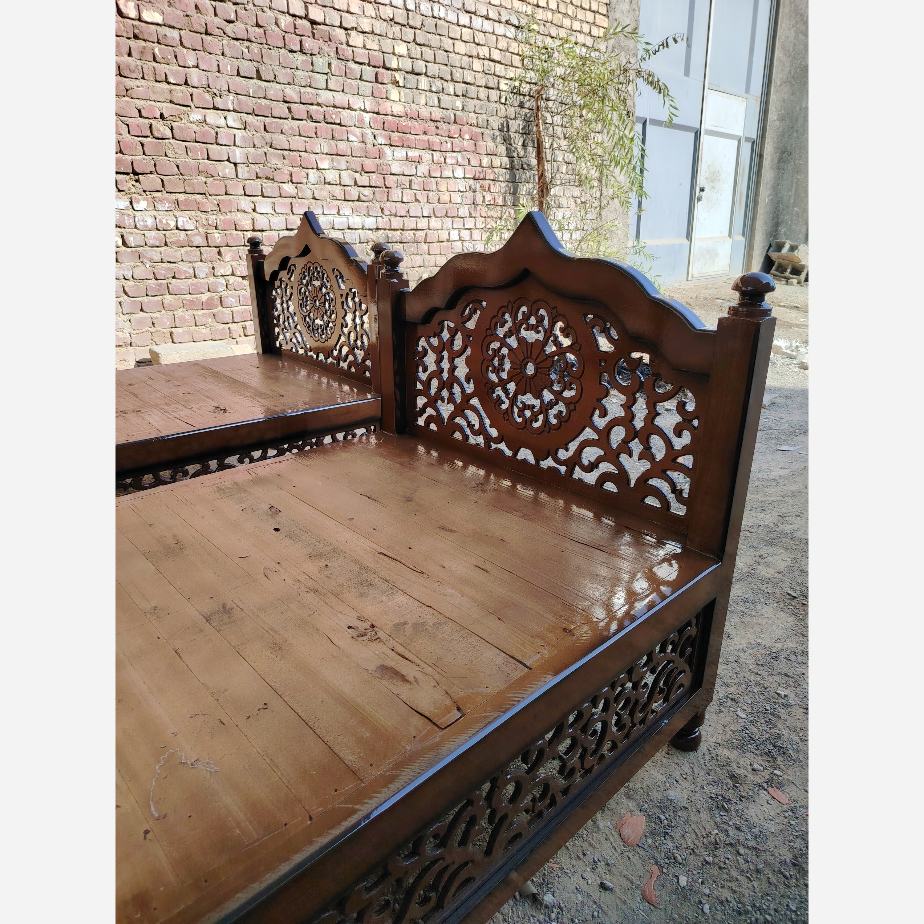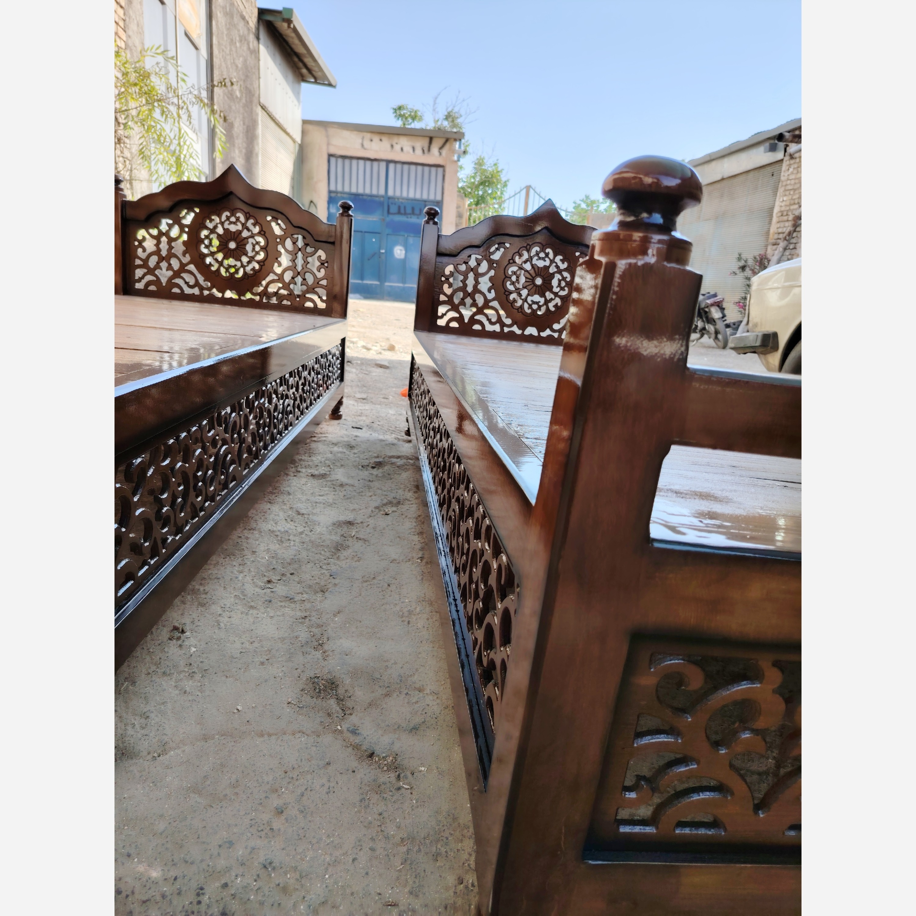 باسلام خدمت تمام عزیزان تخت خواب سنتی تمام چوب تاج عربی جنس چوب چنار قسمت cncروکش راش گرجستان کارشده رنگ پنج مرحله ای وپلی استر دوجزئی بسیار درخشنده بسیارماندگار ومحکم تر تخت خوابهای ملامین وام دی اف دارای پنج سال ضمانت صنایع چوب رضایی ابعادمعمول: 2*90 ابعاد ورنگ با انتخاب شما قابل تغییراست ارسال به تمام نقاط کشور باکمترین هزینه وبدون ریسک خط وخش یاحق