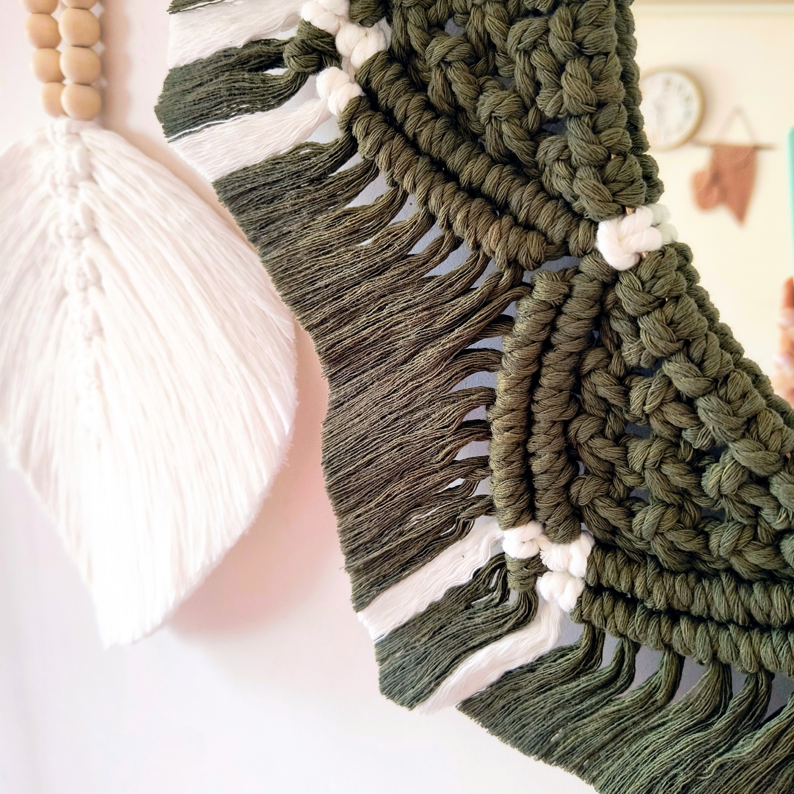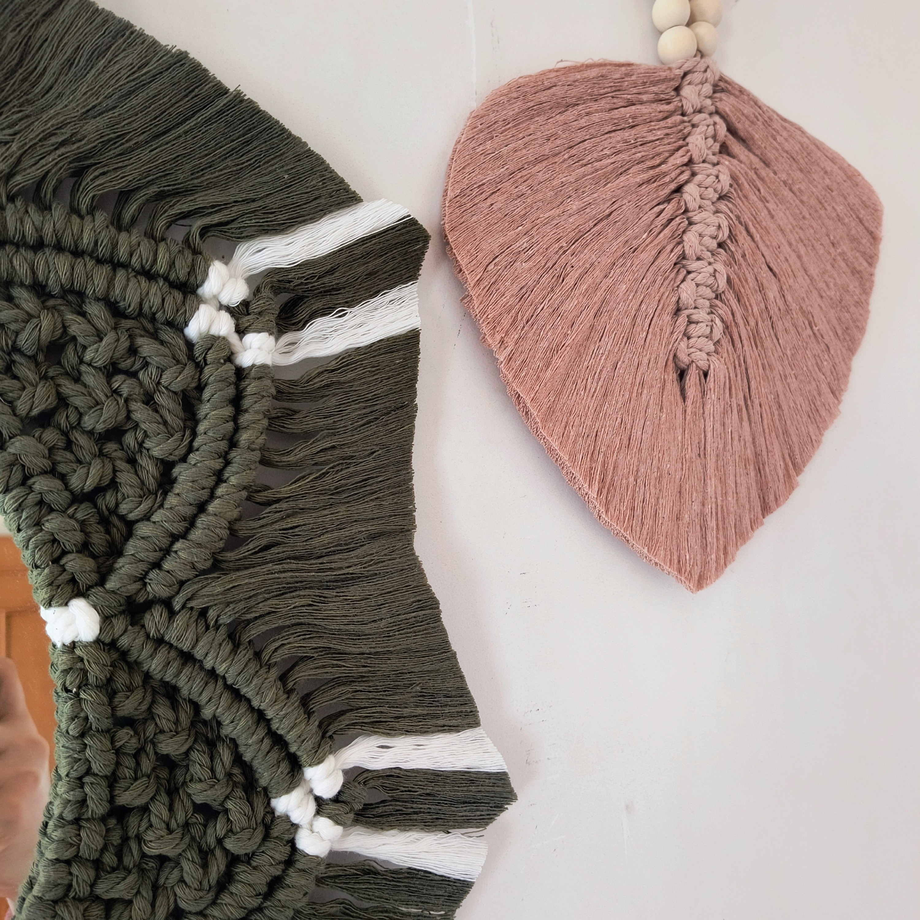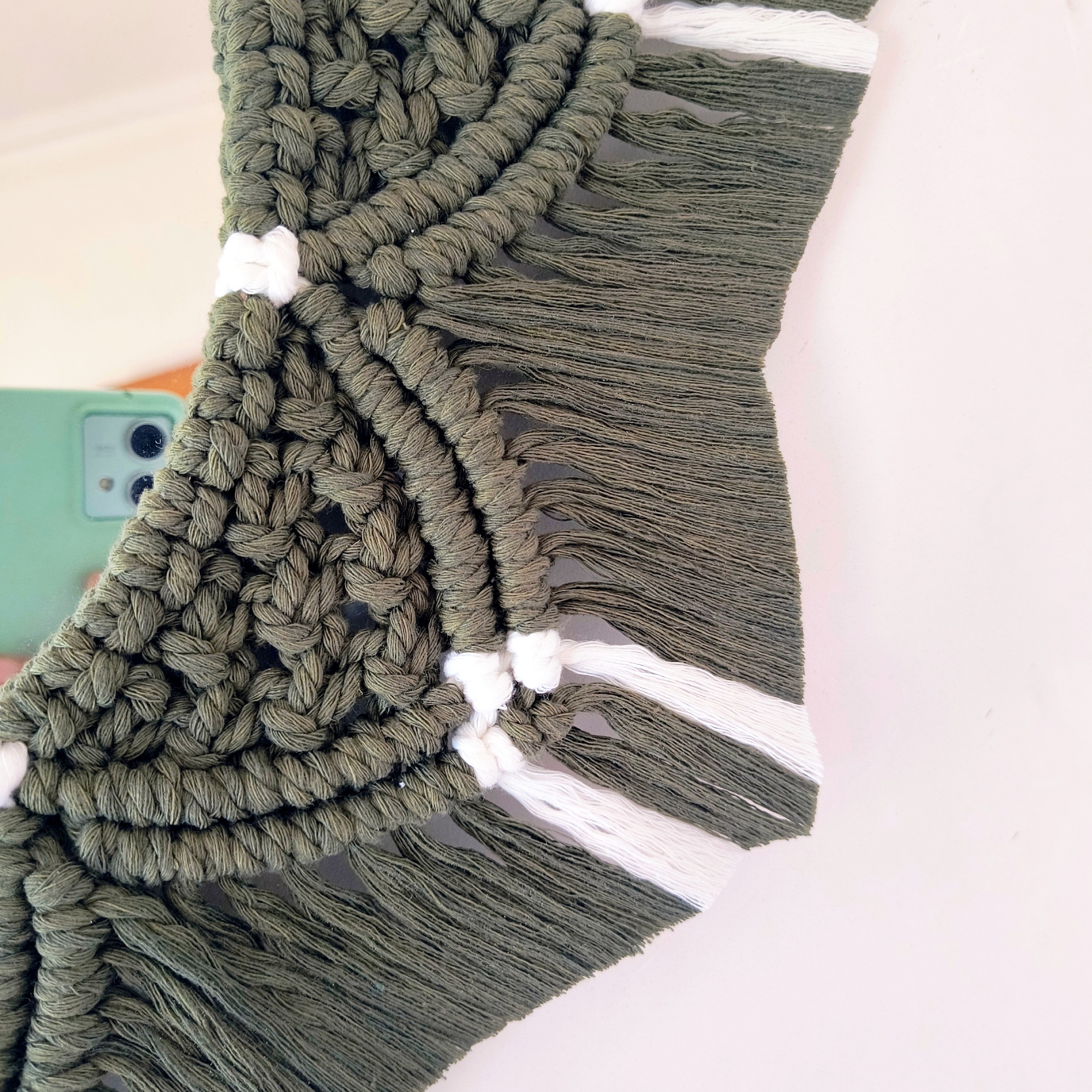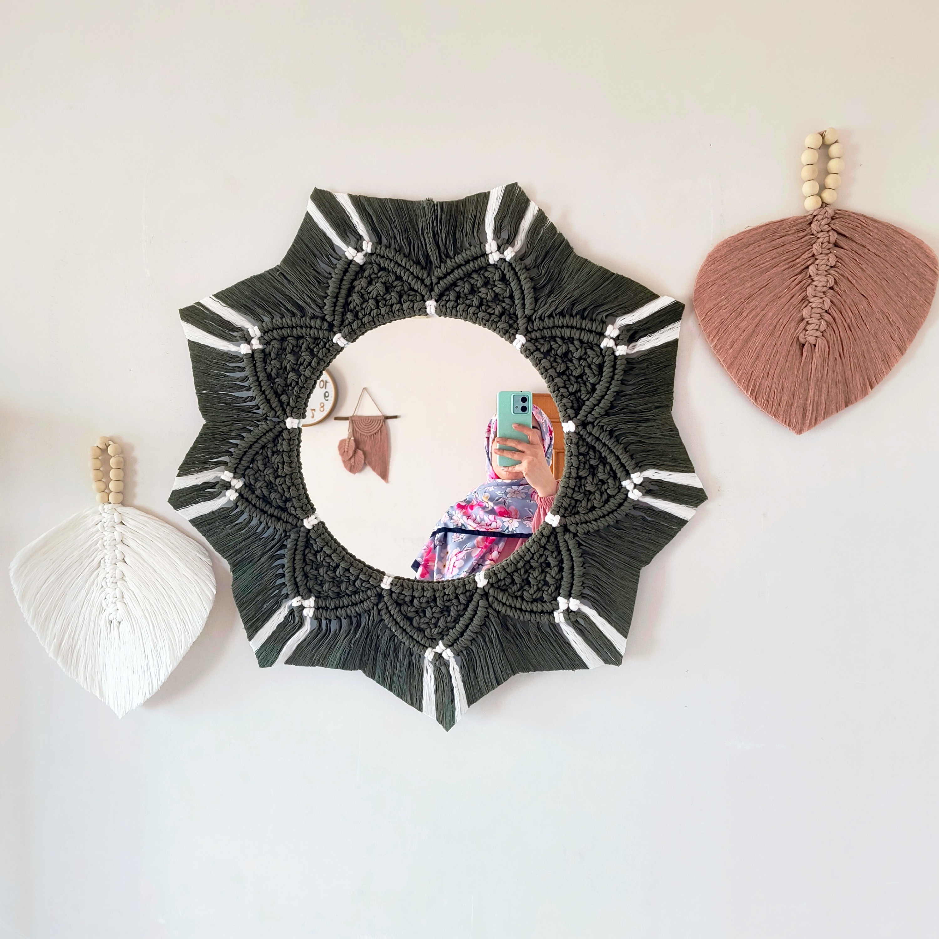 آینه مکرومه 55 سانت سبز تیره مبلمونسرا مدل 261072