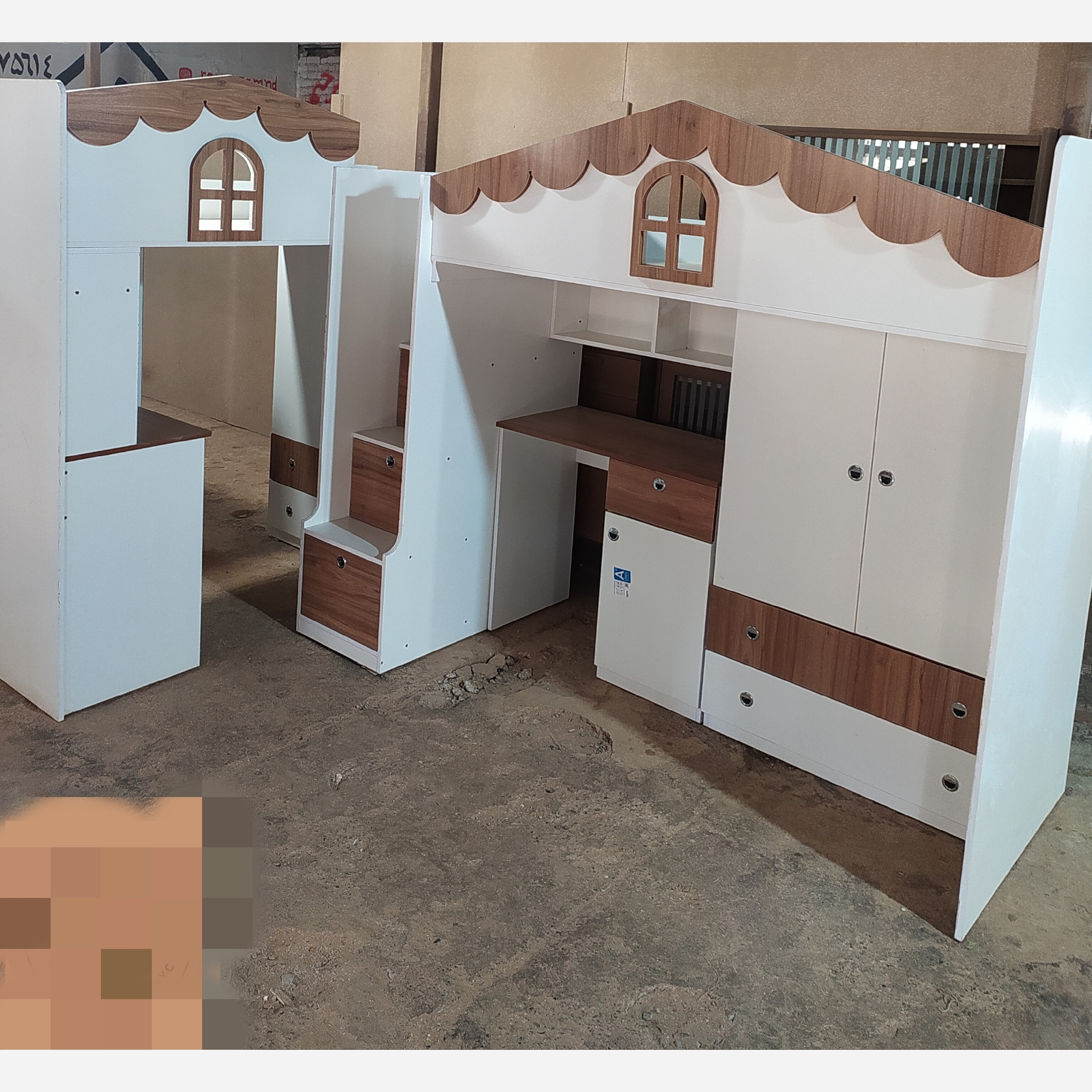 مناسب برای اتاقهای کوچک جادار و محکم به خاطر قیمت پایین ما،هزینه حمل و بسته بندی به عهده مشتری عزیز می باشد کامل ملامینه پویا فضای تشک90*200 کمد و میزتحریر زیر هر تخت پله منبری به صورت باکس بزرگ و جادار