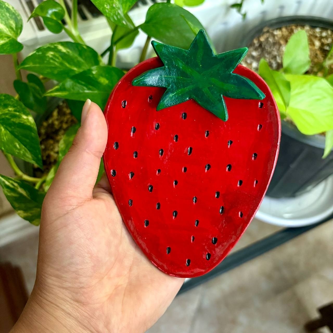 جا جواهری یا ظرف دکوری دست ساز سرامیکی توت فرنگی مبلمونسرا مدل 276122