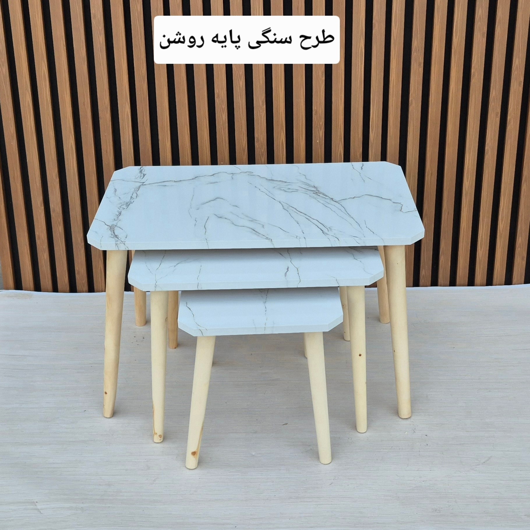 میز عسلی مستطیل 3 تیکه طرح سنگی مبلمونسرا مدل 218925
