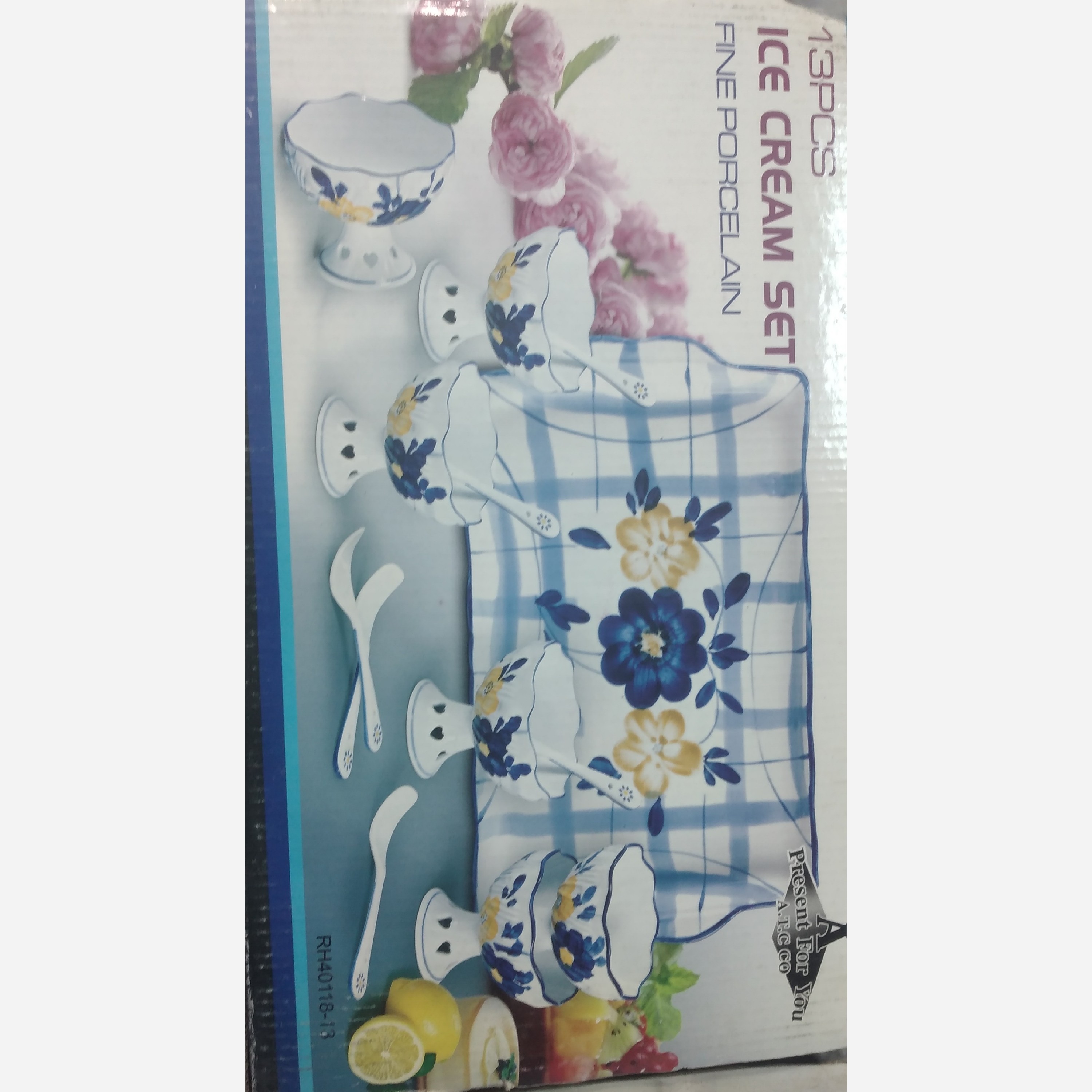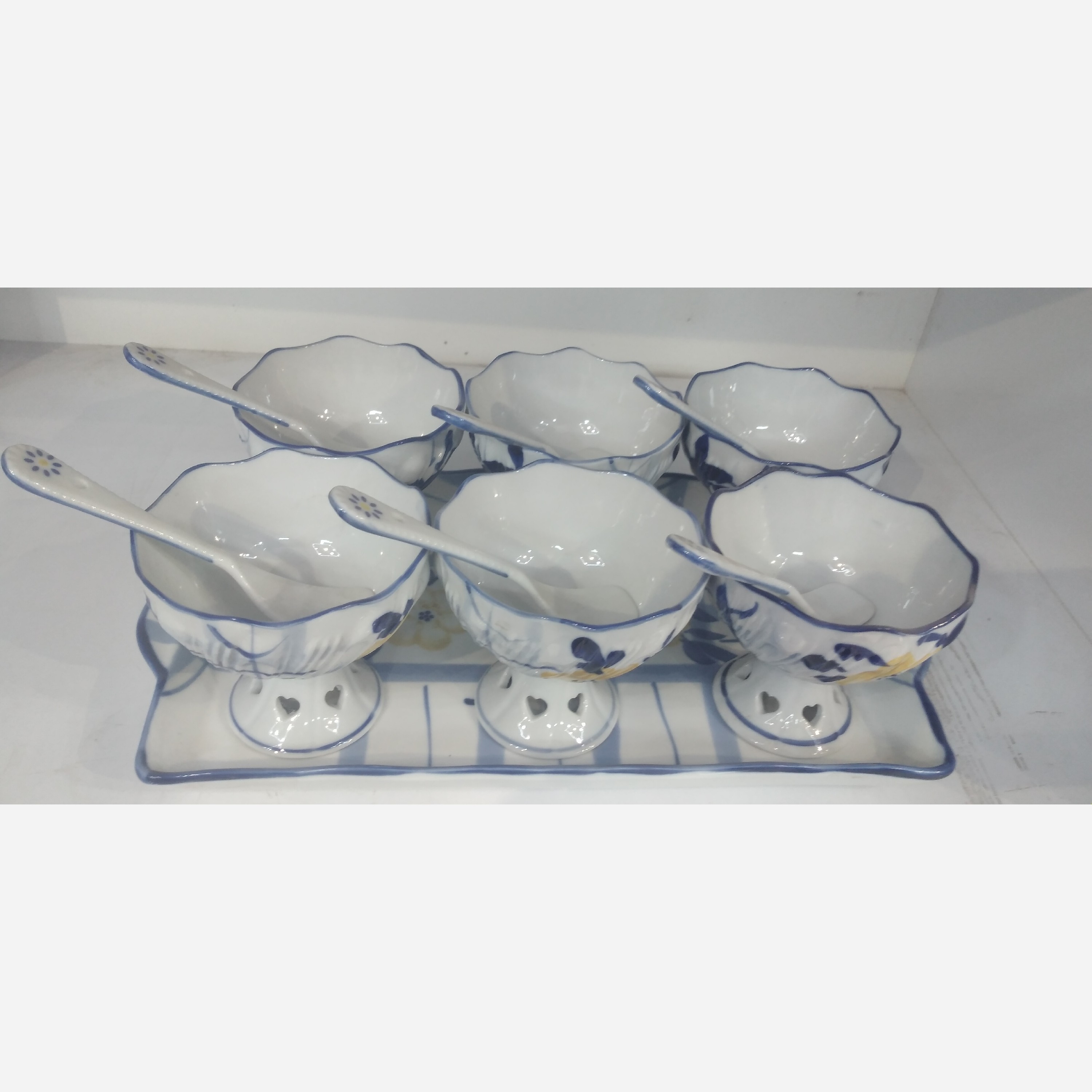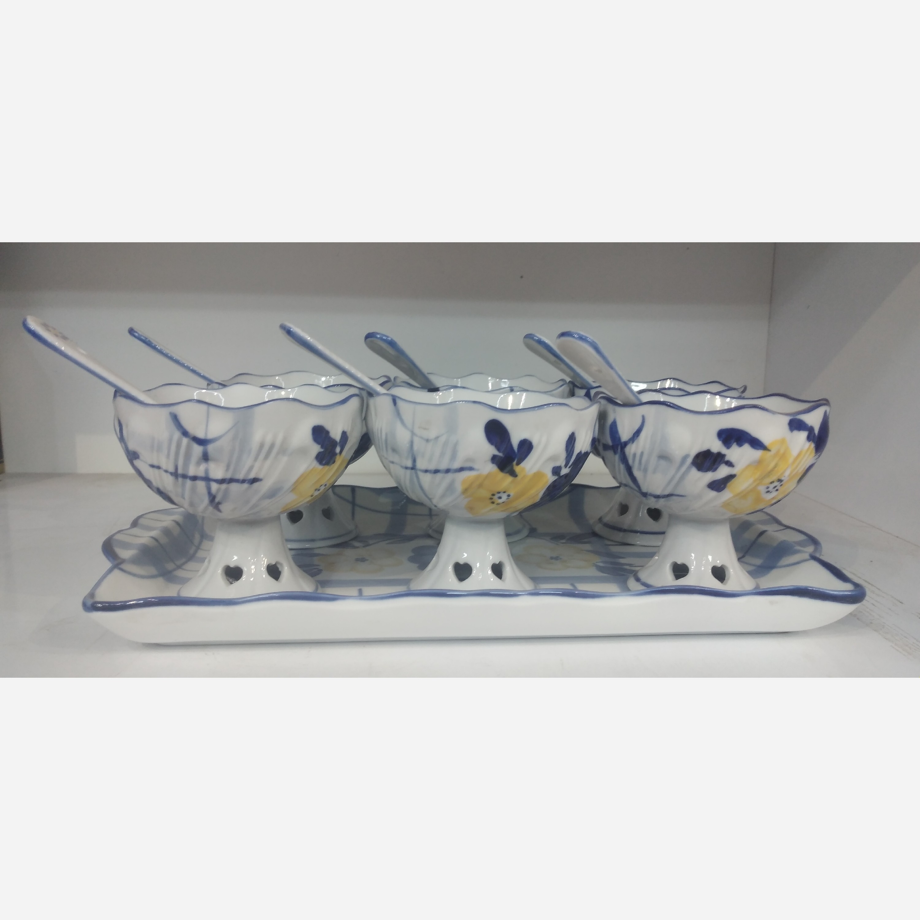 سرویس بستنی خودی طرح گل 13پارچه دارای 6 ظرف بستنی و 6 قاشق و 1سینی با طرح گل دارای جعبه ونو بسیار زیبا و قیمت مناسب
