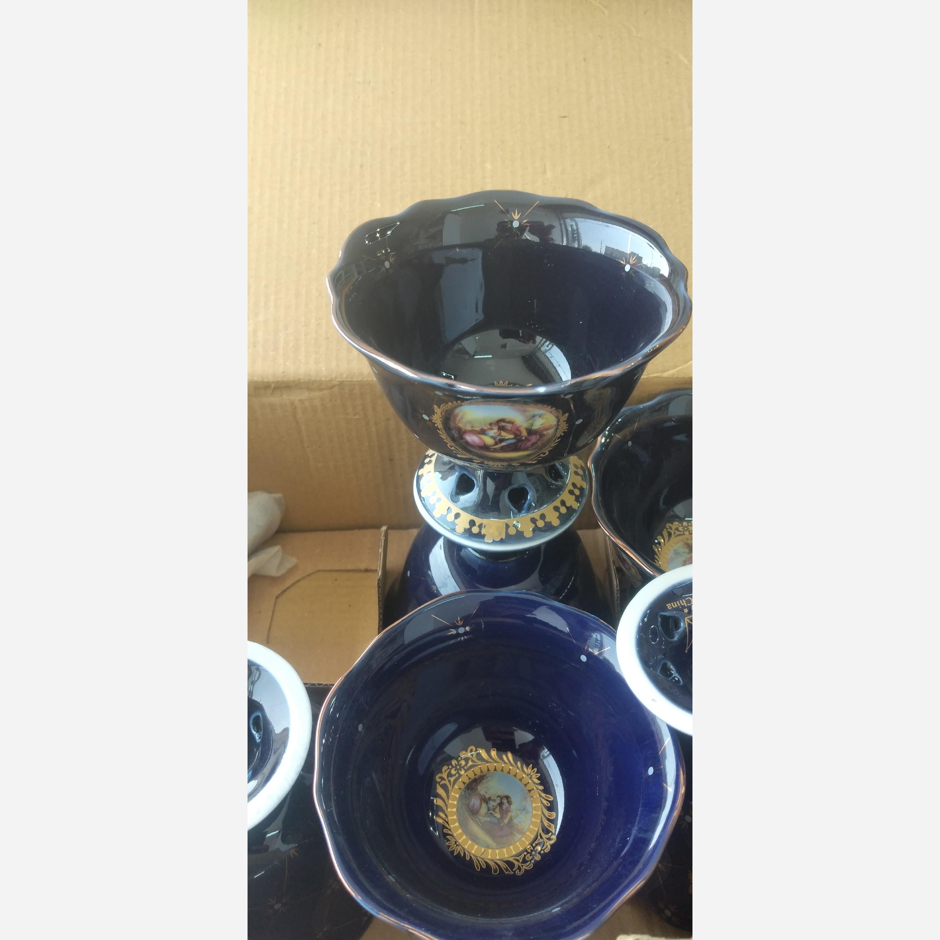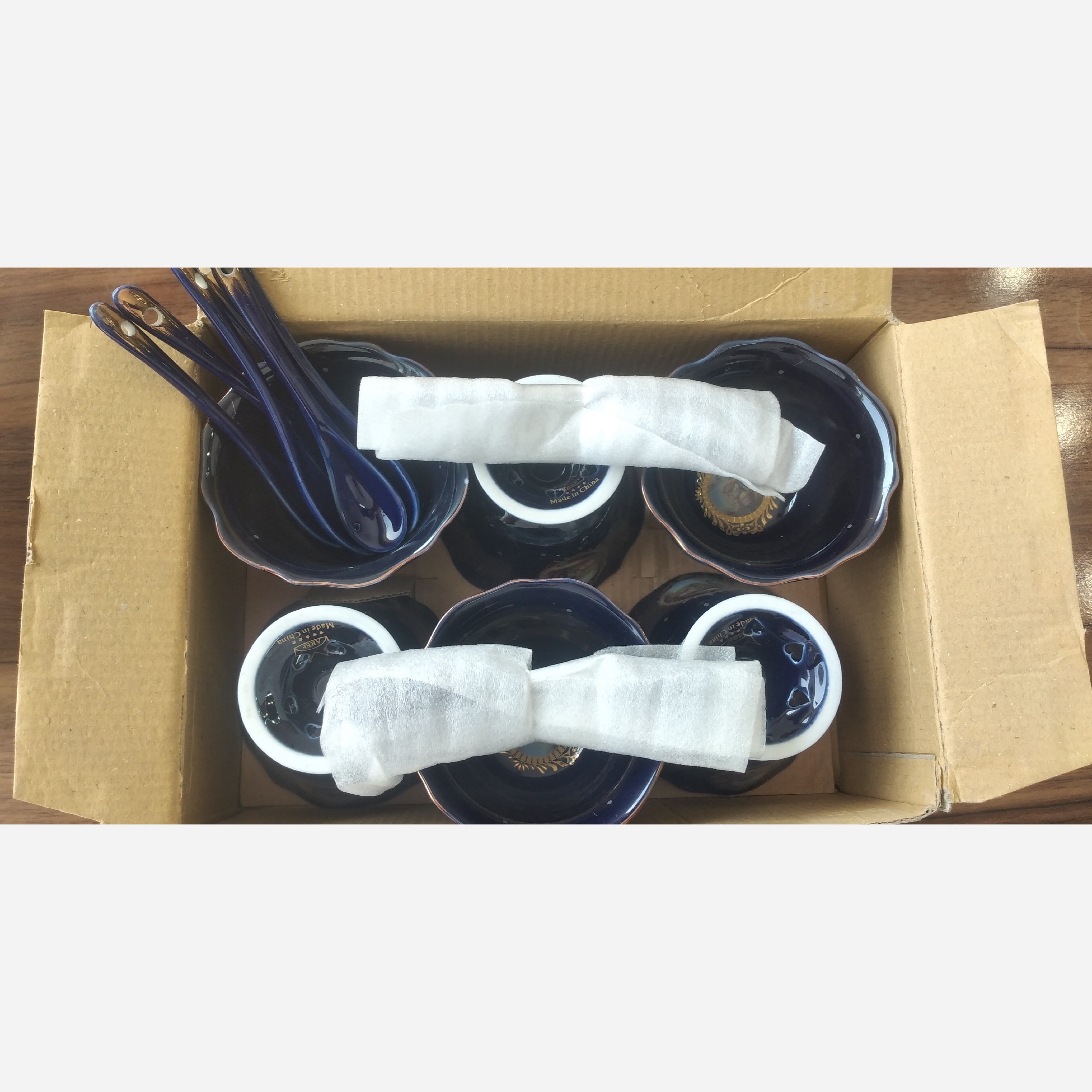 بستنی خوری سورمه ای طرح لیلی ومجنون 12 پارچه دارای 6 بستنی خوری سورمه و6 قاشق سورمه دارای جعبه ونو