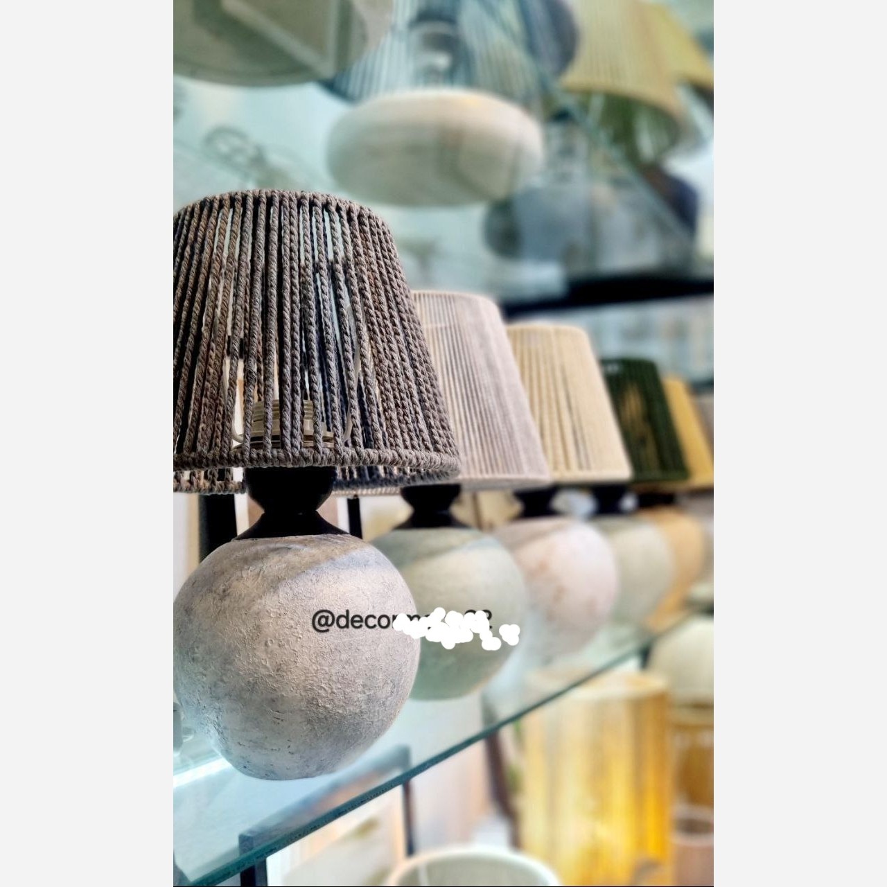▫️نام کالا:آباژور سفال پتینه مینی توپی🌝🌝 ▫️جنس پایه: سفال پتینه جنس شید: مکرومه و کنف ▪️رنگبندی پایه: سفید، سبز، طوسی، کرم ▫️رنگ بندی شید: نسکافه ای، مشکی، کرم،شیری، طوسی، سبز