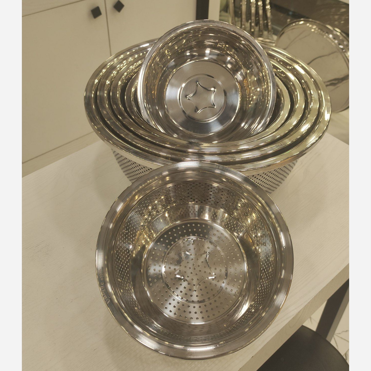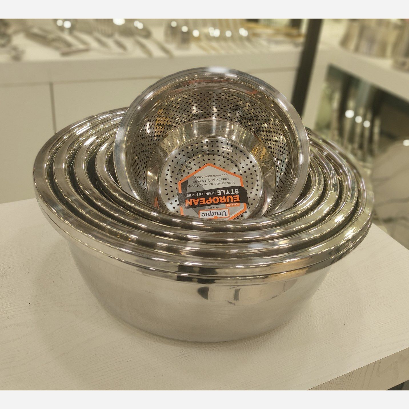 آبکش و لگن یونیک ستاره استیل ضخیم آهنربا نگیر و ضدزنگ دو پولیشه 5سایز آبکش و 5سایز لگن شامل: 22 سانت ، 26سانت ، 30سانت ، 34سانت ، 38سانت 5سایز آبکش و 5سایز لگن شامل: 24سانت ، 28سانت ، 32سانت ، 36سانت ، 40سانت