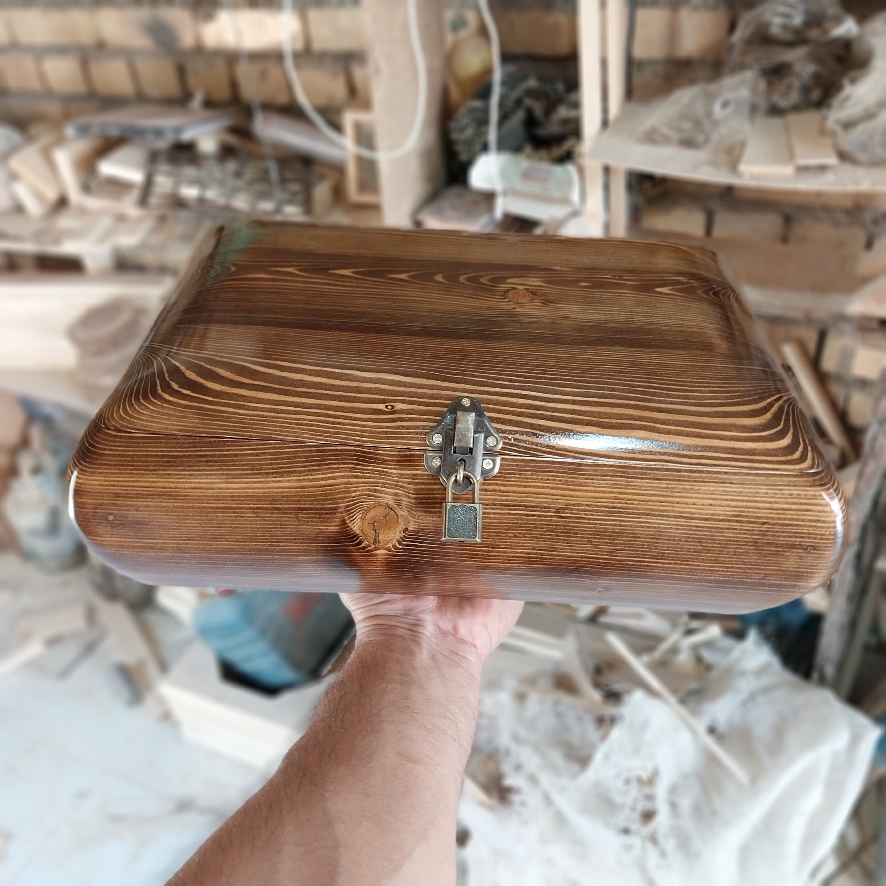 صندوقچه زیبای طرح هلالی مناسب صندوقچه خاطرات و جواهرات. قفل چفتی و لولا پروانه ای