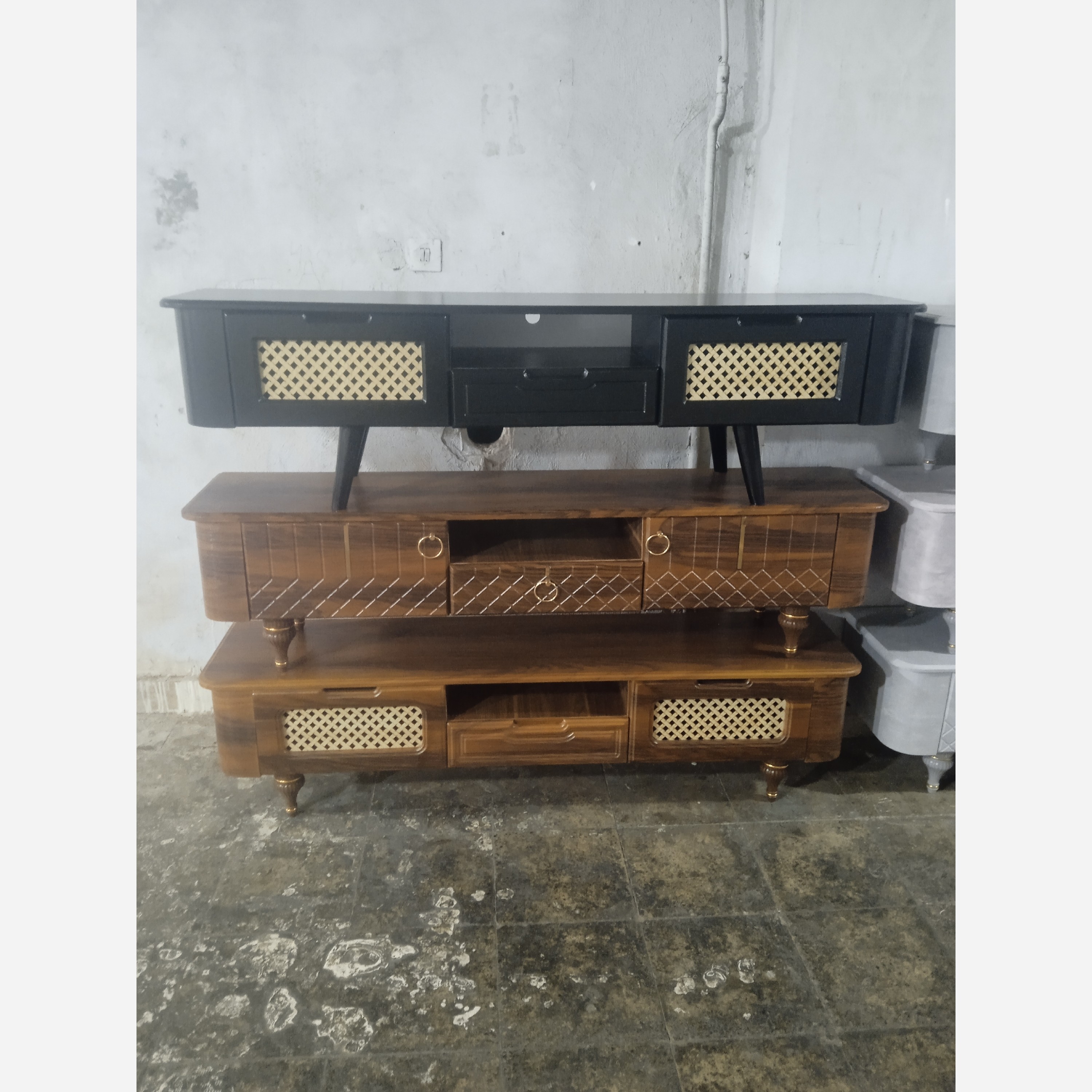 ✅ با سلام لطفا با دقت بخوانید و تا انتها عکسها را مشاهده کنید فروش زیر قیمت بازار چون ✅ میزال سی دی ✅ کنسول وقاب اینه ✅ جاکفشی ✅میزجلومبلی وسه عدد عسلی ✅ تولید متریال درجه یک تضمینی تمام ام دی اف همراه باگارانتی میزهاضد خش میباشد و بدون ایراد ✅ دارای ضمانت یکساله کتبی از فروشگاه ما ✅ موقع ارسال تمامی کارهامون سلفون پیچی میشه به خاطر سلامت رسیدن محصول به دست شما ✅ ارسال به تهران کمترین هزینه درب منزل تسویه بعد از تحویل و رویت میباشد ✅ ارسال به تمامی شهرستانها با بیمه ارسال محصول برای خریدار محترم ✅ در قسمت انتهای آگهی گزینه مشاهده همه آگهی رابزنید و وارد فروشگاه ما بشوید و از مابقی محصولات ما دیدن فرمایید ✅ دارای رنگبندی: سفید : مشکی : ابرباد : سفیدطرح سنگ : طوسی تیره طرح سنگ :طلایی: کلیاف میباشد ✅ تولید انواع: میز تلویزیون : جاکفشی : جلومبلی : اینه کنسول:میز آرایش:دراور