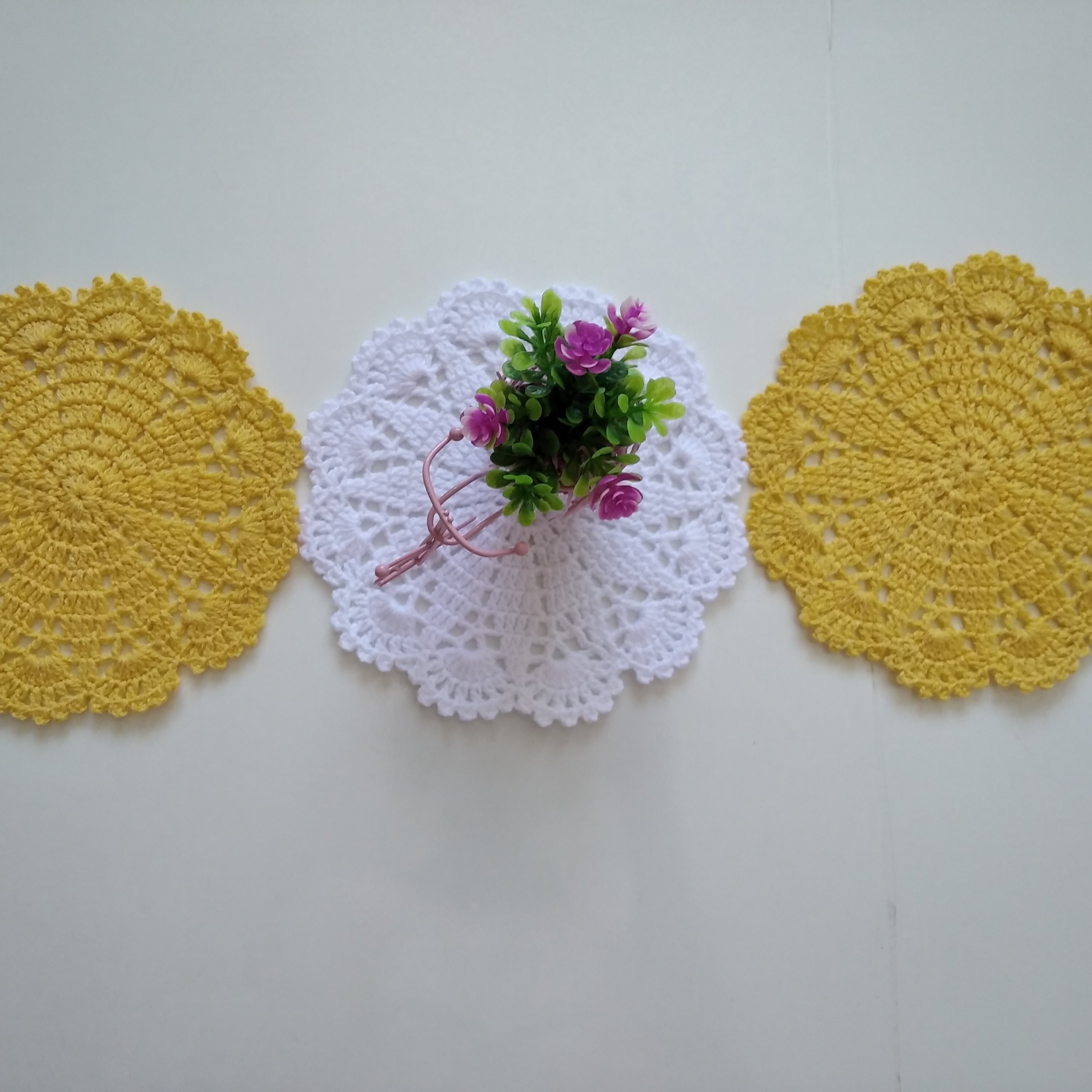 پک سه عددی زیر بشقابی بافتنی زیبا و خاص مناسب برای جهیزیه مبلمونسرا مدل 299927