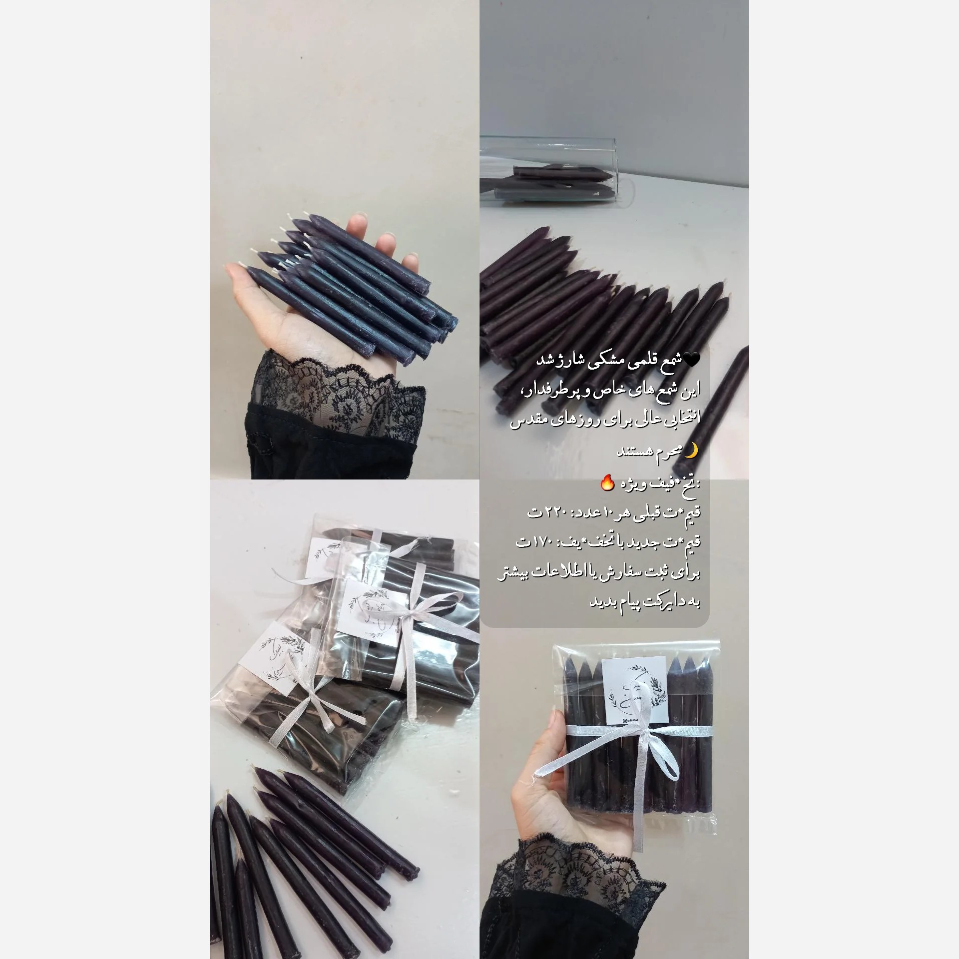 شمع قلمی مشکی شارژ شد🖤 این شمعهای خاص و پرطرفدار، انتخابی عالی برای روزهای مقدس محرم هستند. 🌙 پک 10 عددی 110 تومن✨️ برای ثبت سفارش یا اطلاعات بیشتر پیام بدید