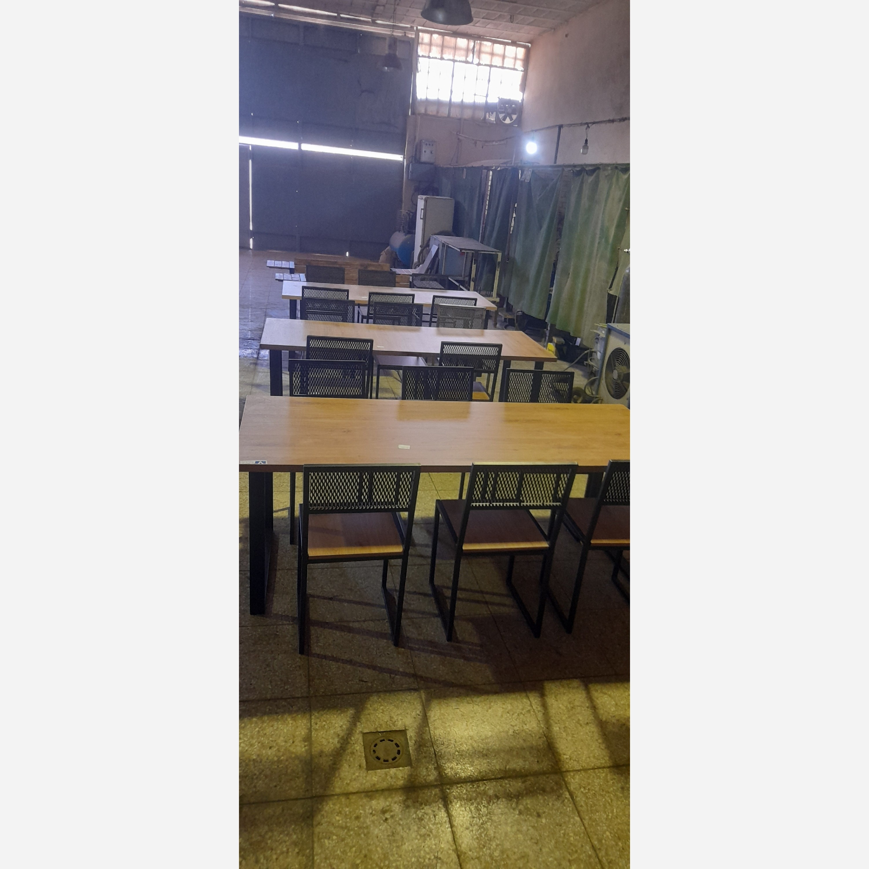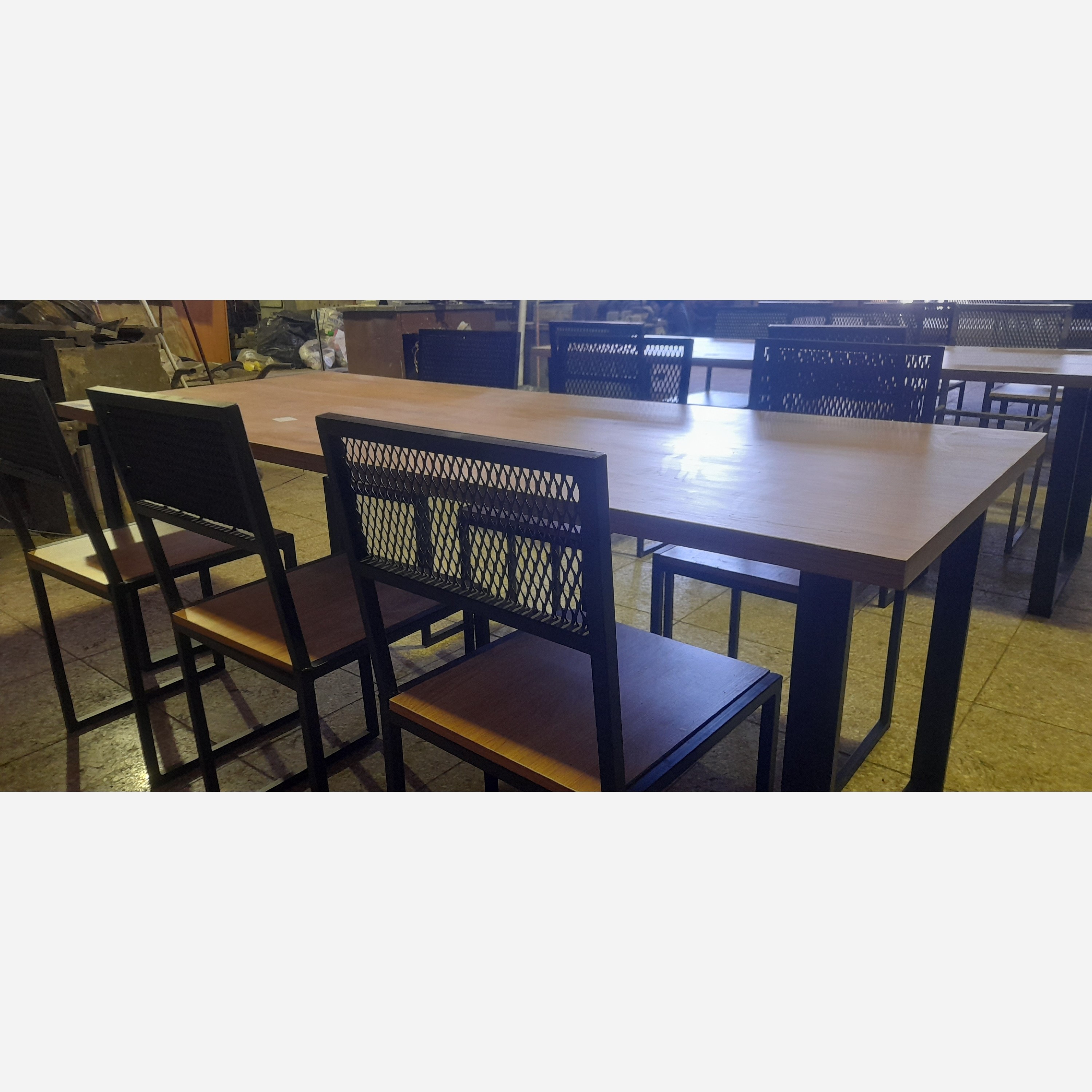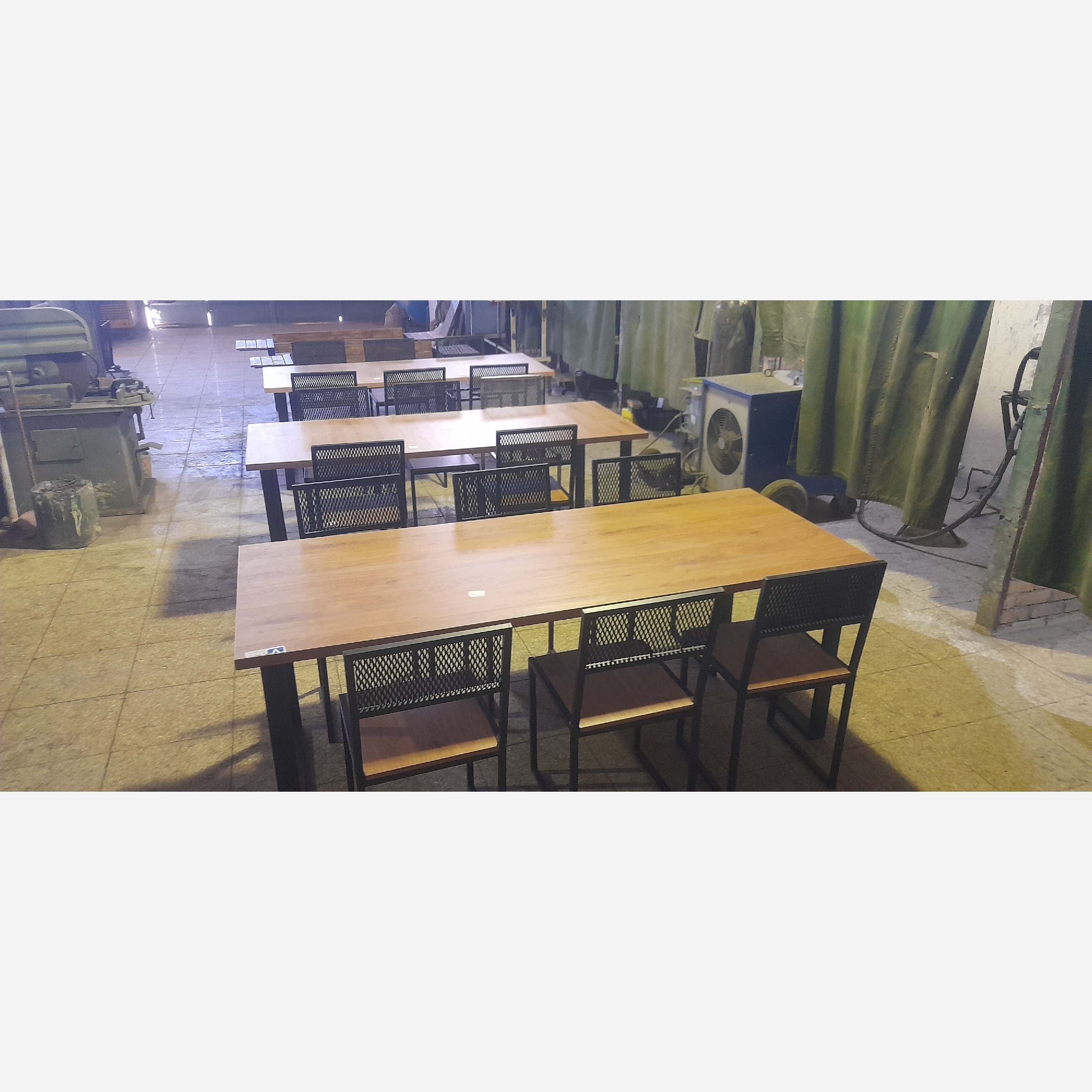 میز و صندلی ناهار خوری طرح چوب گردو پایه و بدنه فلزی و مقاوم پشت صندلی توری ویژه خاص پسندان قابلیت انتخاب ابعاد و رنگ و طرح
