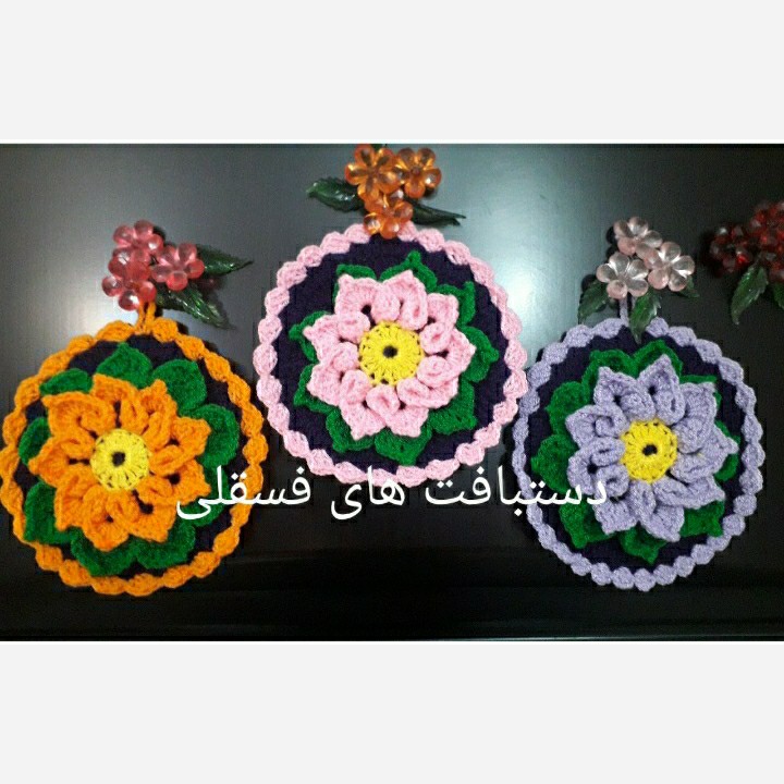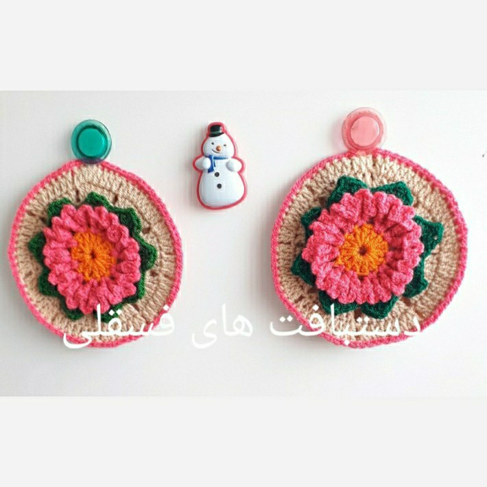 دستگیره های بافتنی زیبا با طرح گل مناسب تزیین آشپزخانه و جهیزیه و هدیه طرح و رنگ به دلخواه مشتری رنگ و طرح را در گفتگو اعلام کنید قیمت اعلام شده برای دو عدد یک جفت دستگیره میباشد.