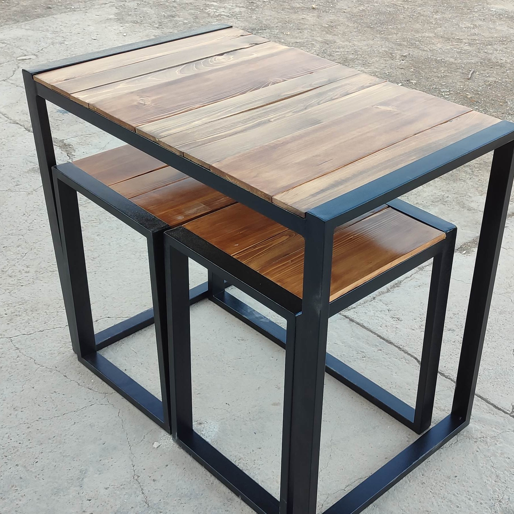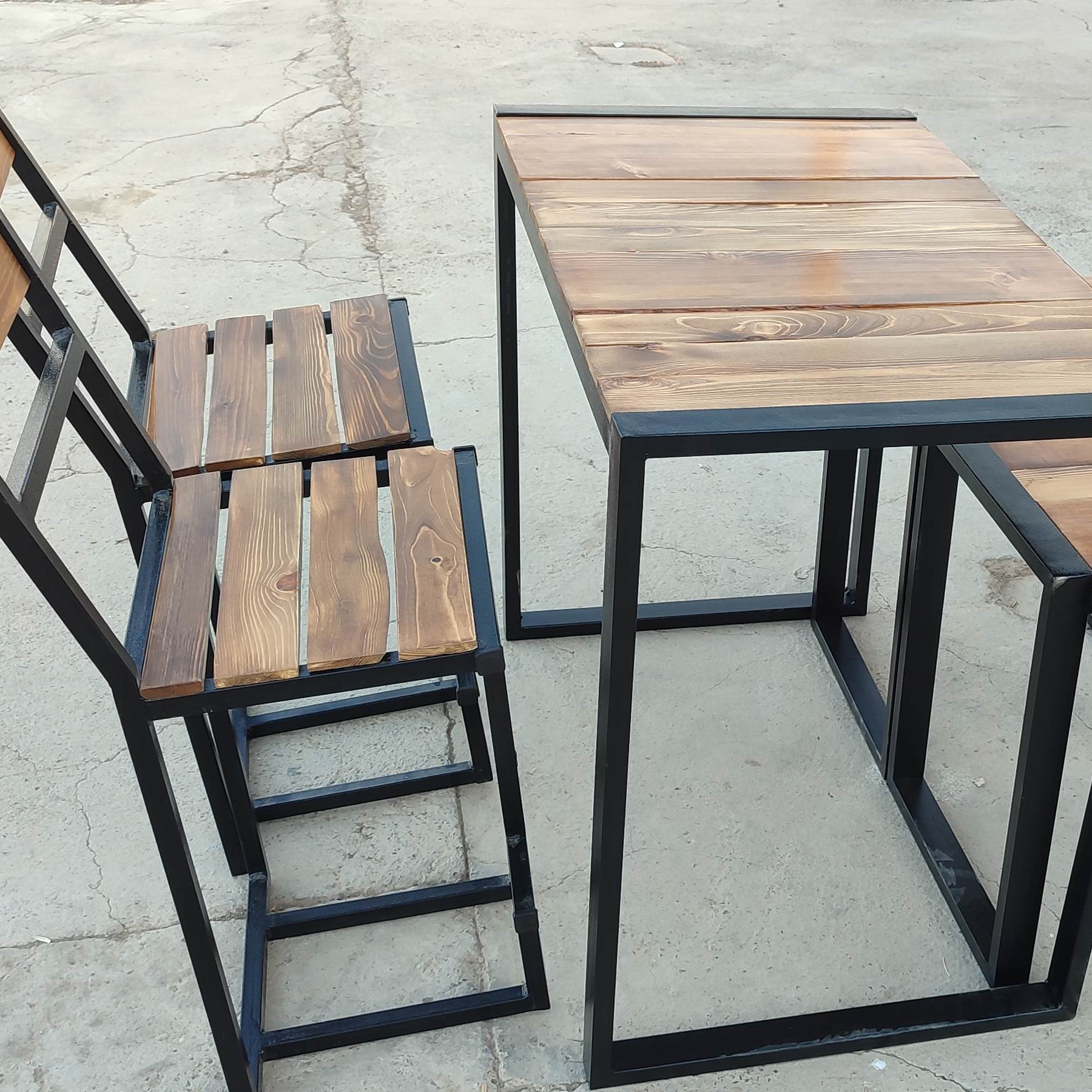 یک میز مشابه عکس دو عدد صندلی بدون پشتع دو عدد صندلی پشته دار