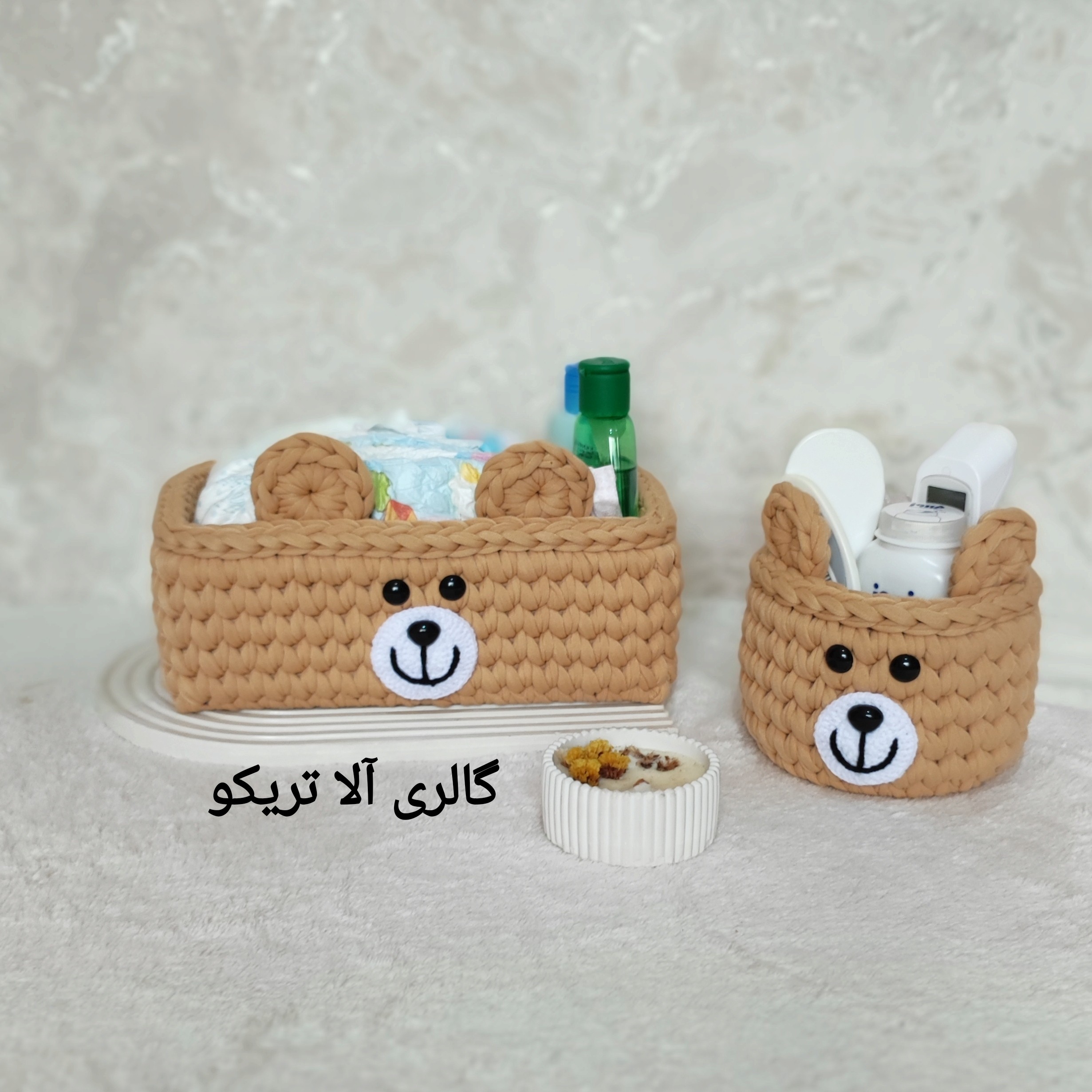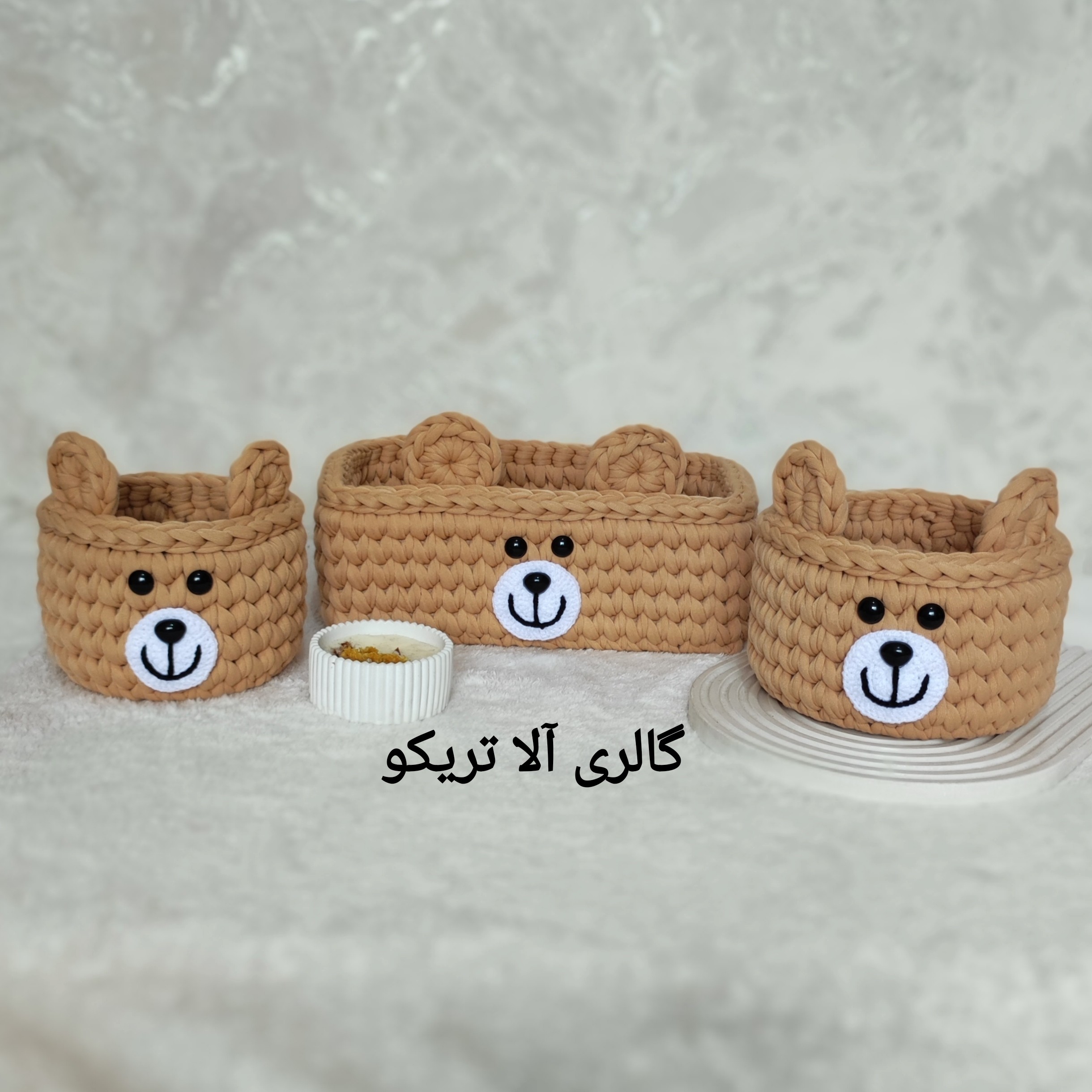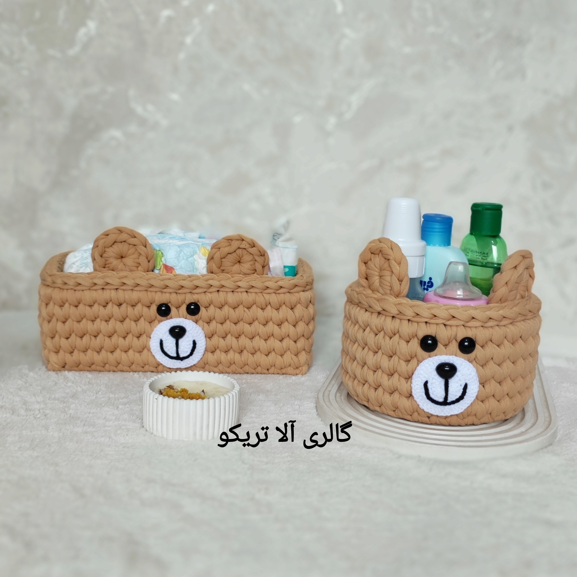 سبد تریکو 3 عددی باکس نظم دهنده سیسمونی نوزاد و کودک جای پوشک و لوسیون برس طرح خرس تدی خندان کرمی نود گالری آلا تریکو مبلمونسرا مدل 289404