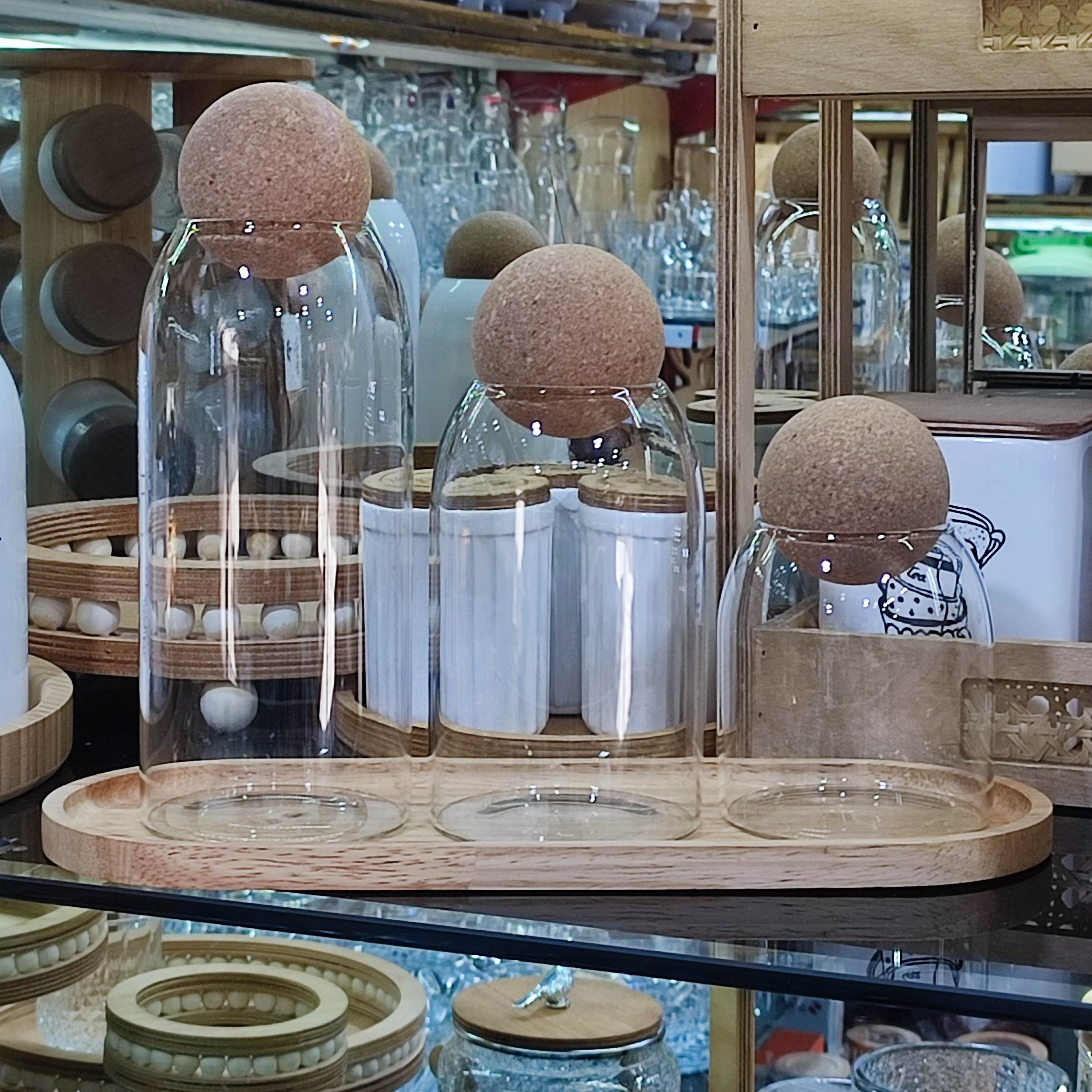 باسلام🖐️ به دنبال یک ست خیلی قشنگ و البته با کیفیت برای پاسماوری میگردی؟ انتخاب هوشمندانه همین ستِ👌 این ست در ظاهری بسیار شیک ساده و مینیمال و بروز تقدیمتون میشه ✅ساخته شده از بهترین شیشه شفاف و مقاوم پیرکس وارداتی ✅درب چوبی کیپ👍 استاندارد نگهداری چای و موادی که با هواخوری سازگار نیستند ✅استندی مقاوم و خوش اندازه ساخته شده از چوب رابرِ تایوان هم رنگِ درب بانکه ها ابعاد بانکه ها بسیار مناسب با این مشخصات: قطر 9.5 سانت ارتفاع 23 قطر 9.5 سانت ارتفاع 17 قطر 9.5 سانت ارتفاع 13 بدون استند هم میشه تهیه کرد.