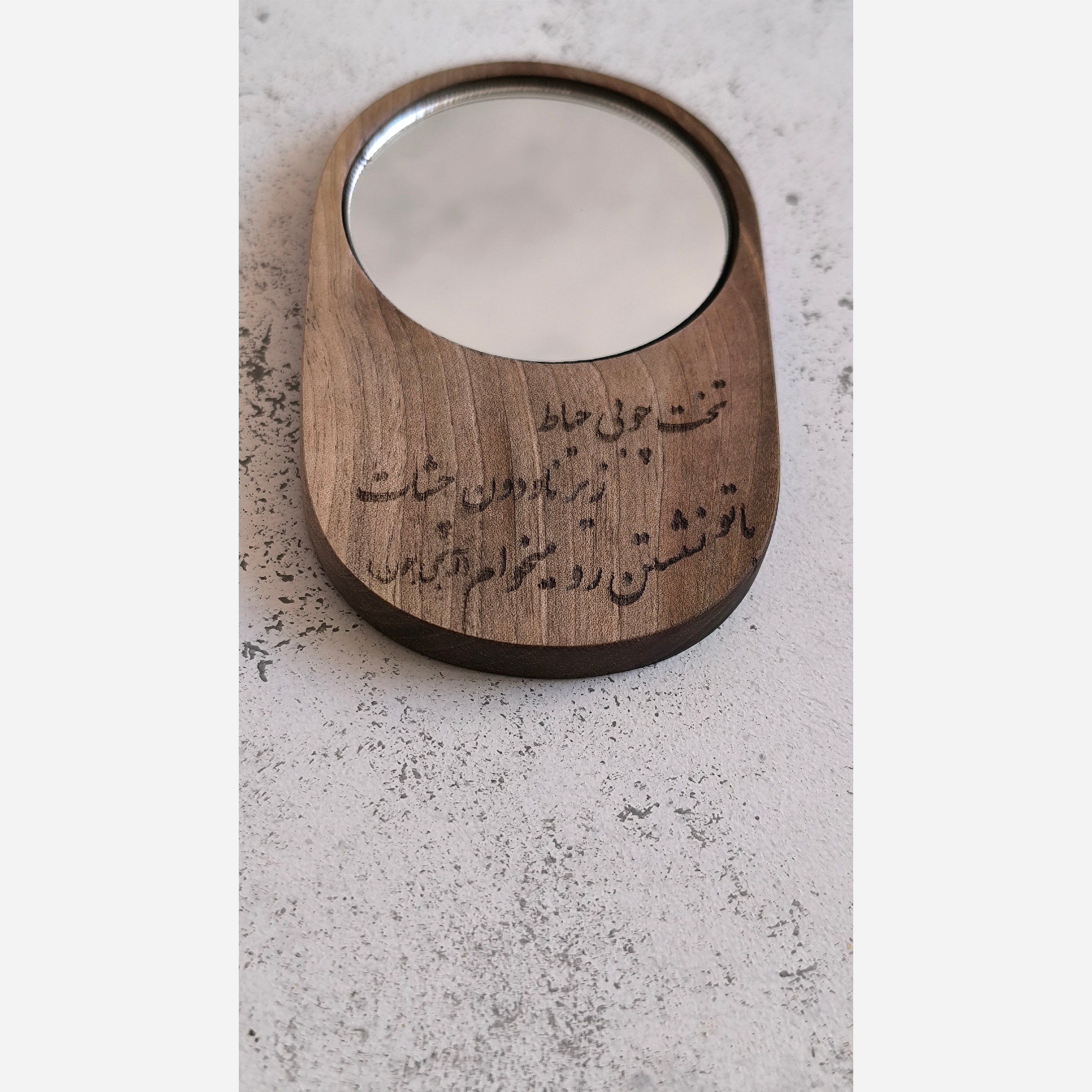 آینه چوبی جیبی ساخته شده از چوب گردو قابل ساخت در طرح ها و ابعاد مختلف میتونید طرح دلخواهتون رو برای حکاکی سفارش بدین